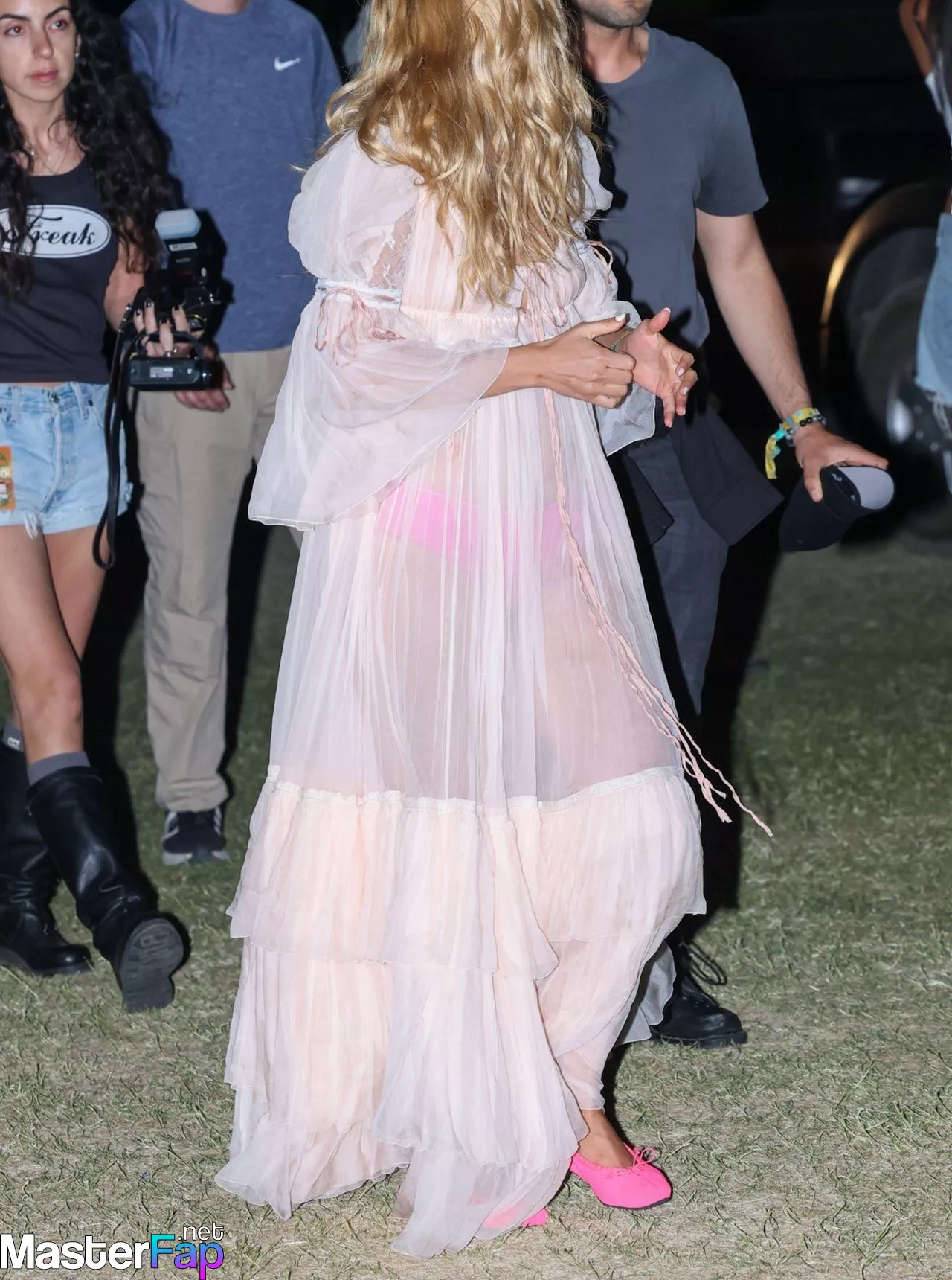 Addison Rae’s seen at Coachella Weekend 1’s final night, rockin’ a white sheer maxi baby doll dress that’s teasin’ glimpses of her loud hot pink undies. She’s slayin’ the flirty festival fit with matchin’ hot pink flats, droppin’ bold, head-spinnin’ glam.