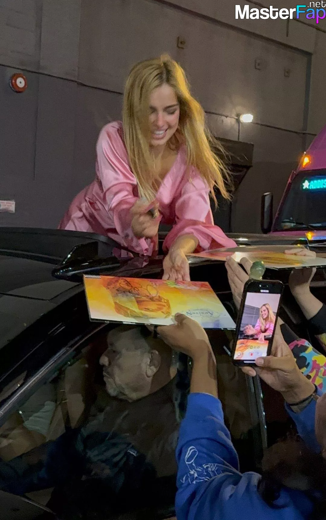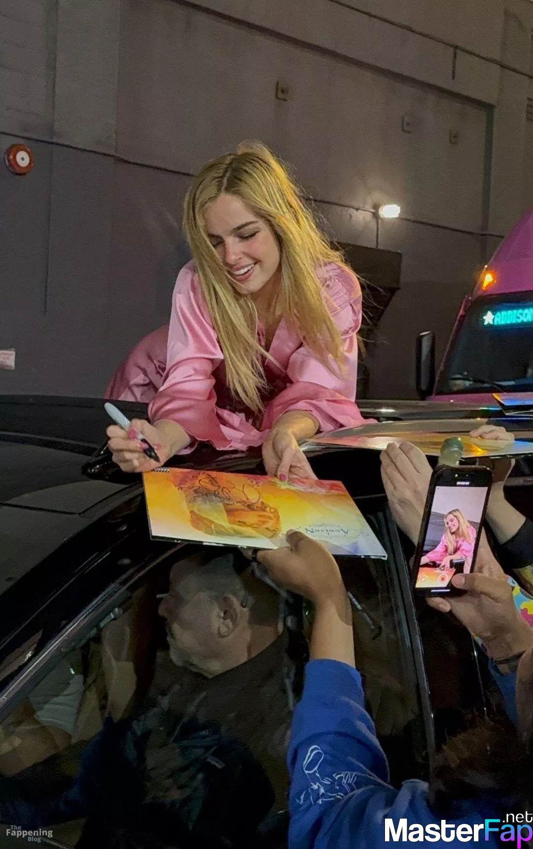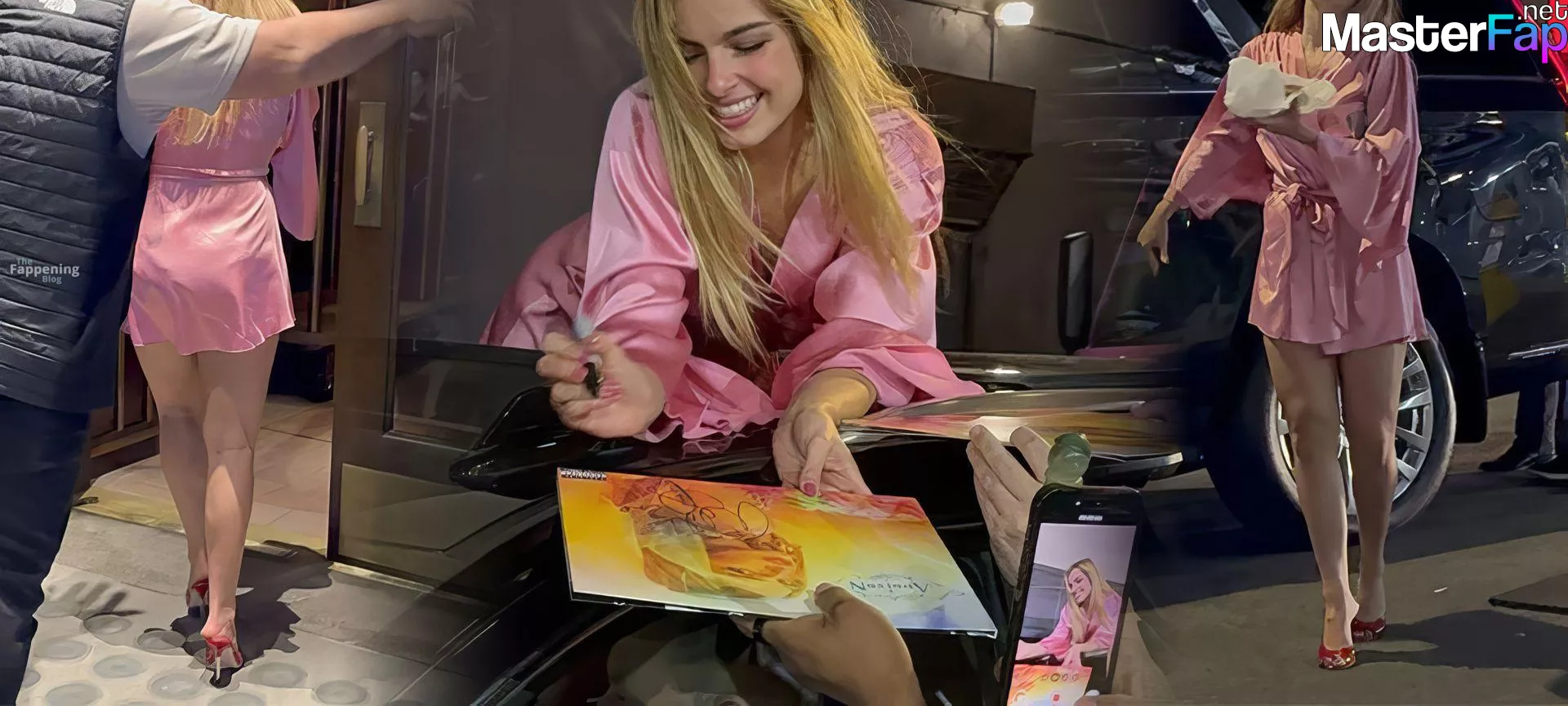 Addison Rae stunned fans in NYC in a silky pink satin mini dress. She was signin’ autographs and showin’ off her toned legs.