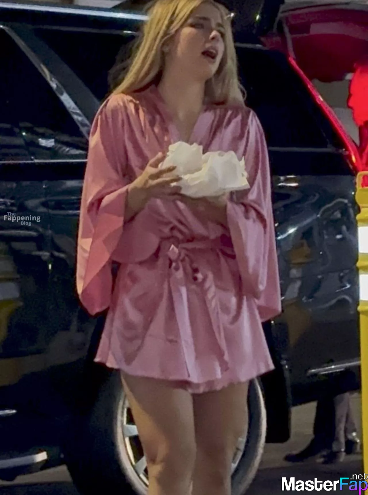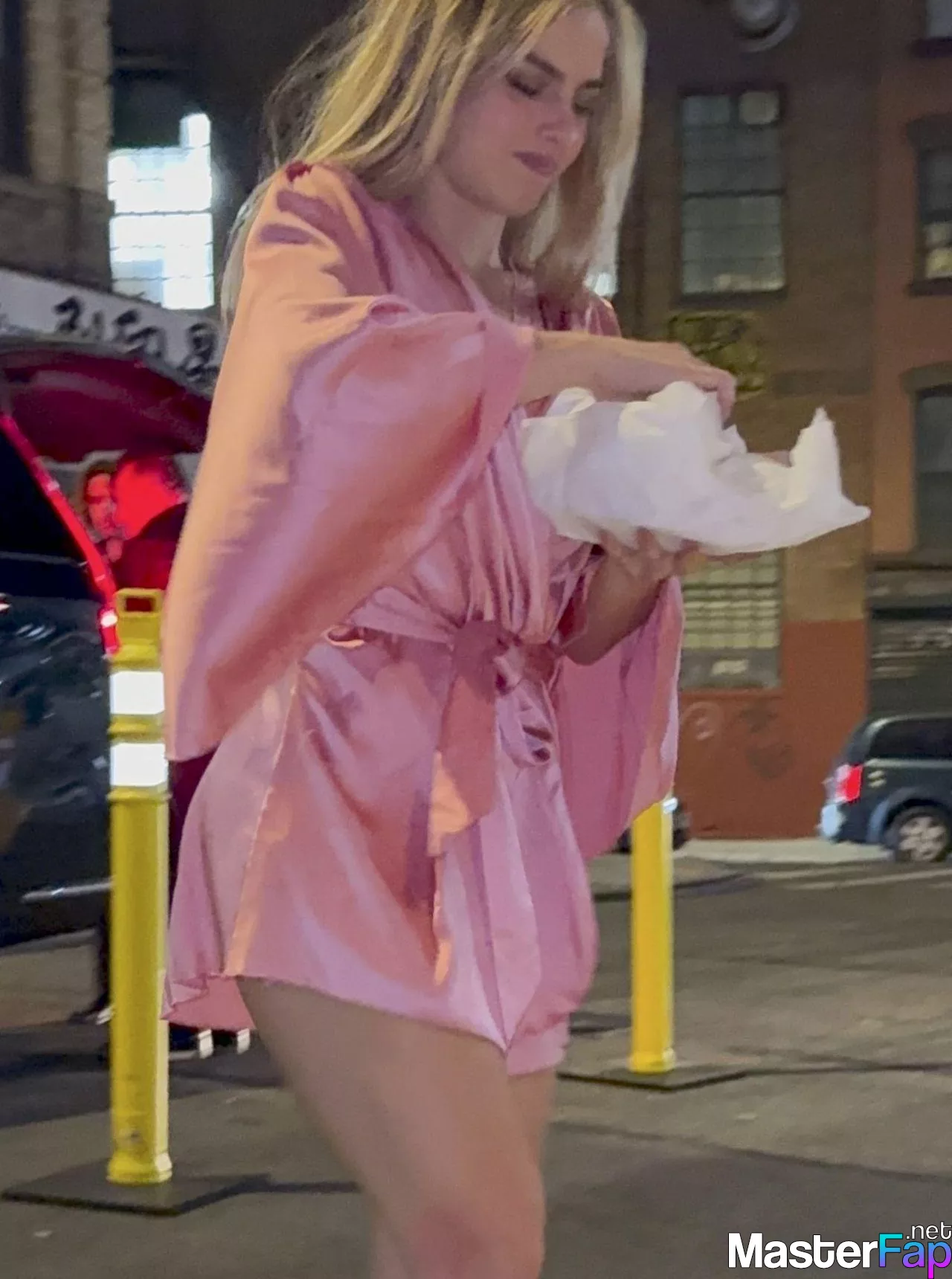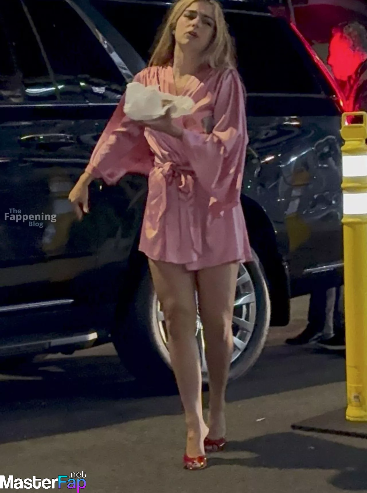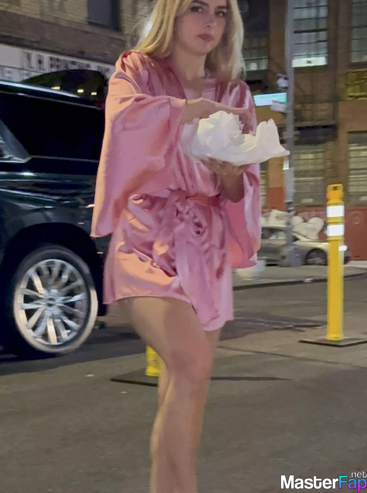 Addison Rae stunned fans in NYC in a silky pink satin mini dress. She was signin’ autographs and showin’ off her toned legs.