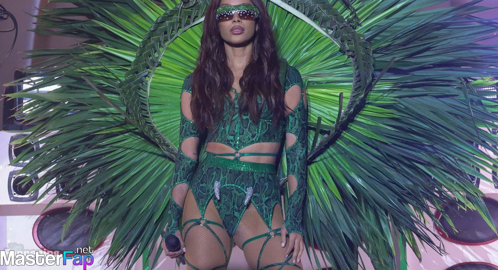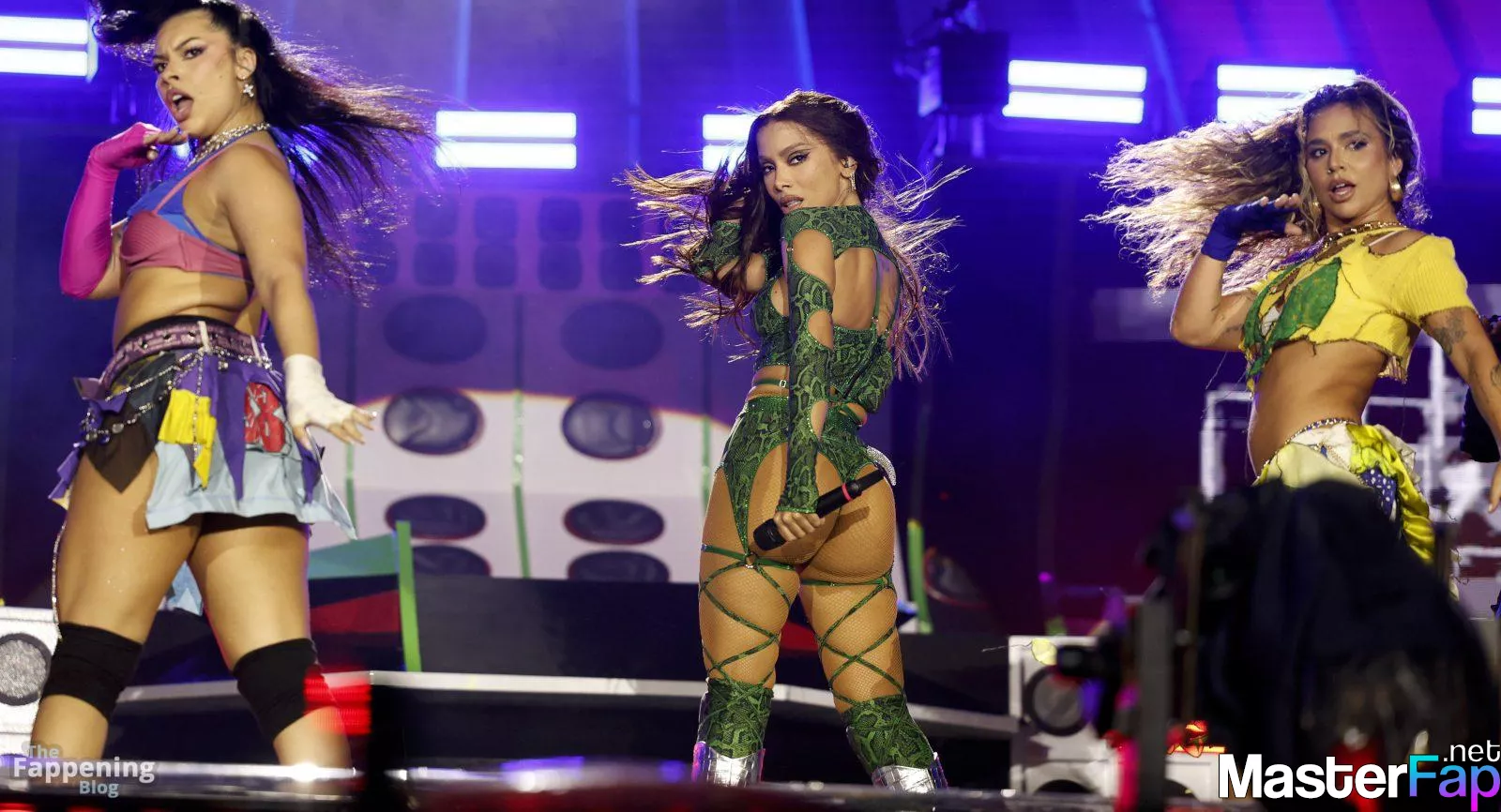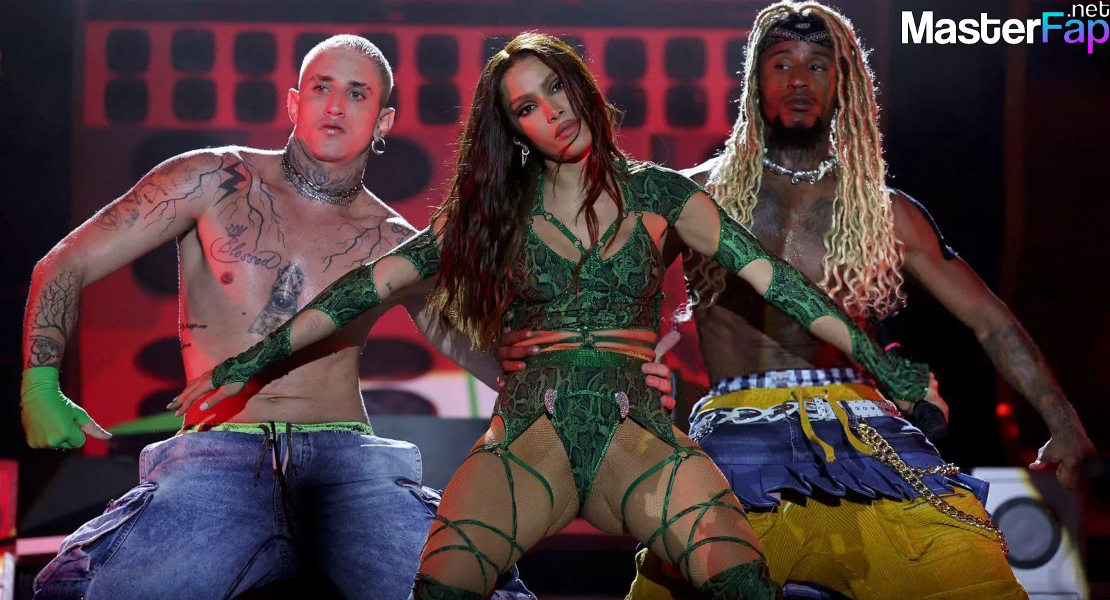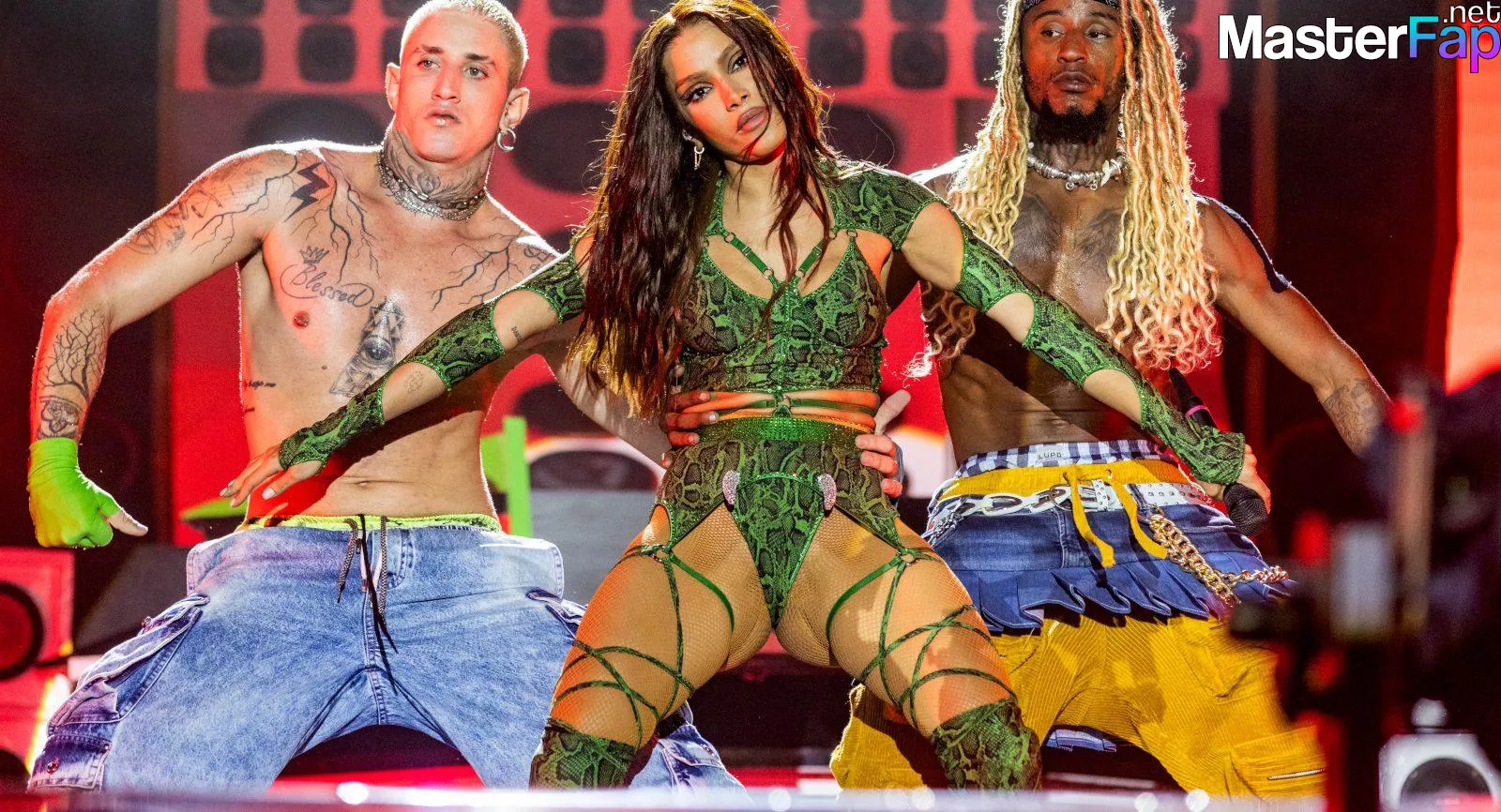 Anitta puts her ass on full display in a green snakeskin bodysuit at the Amazonia Festival.