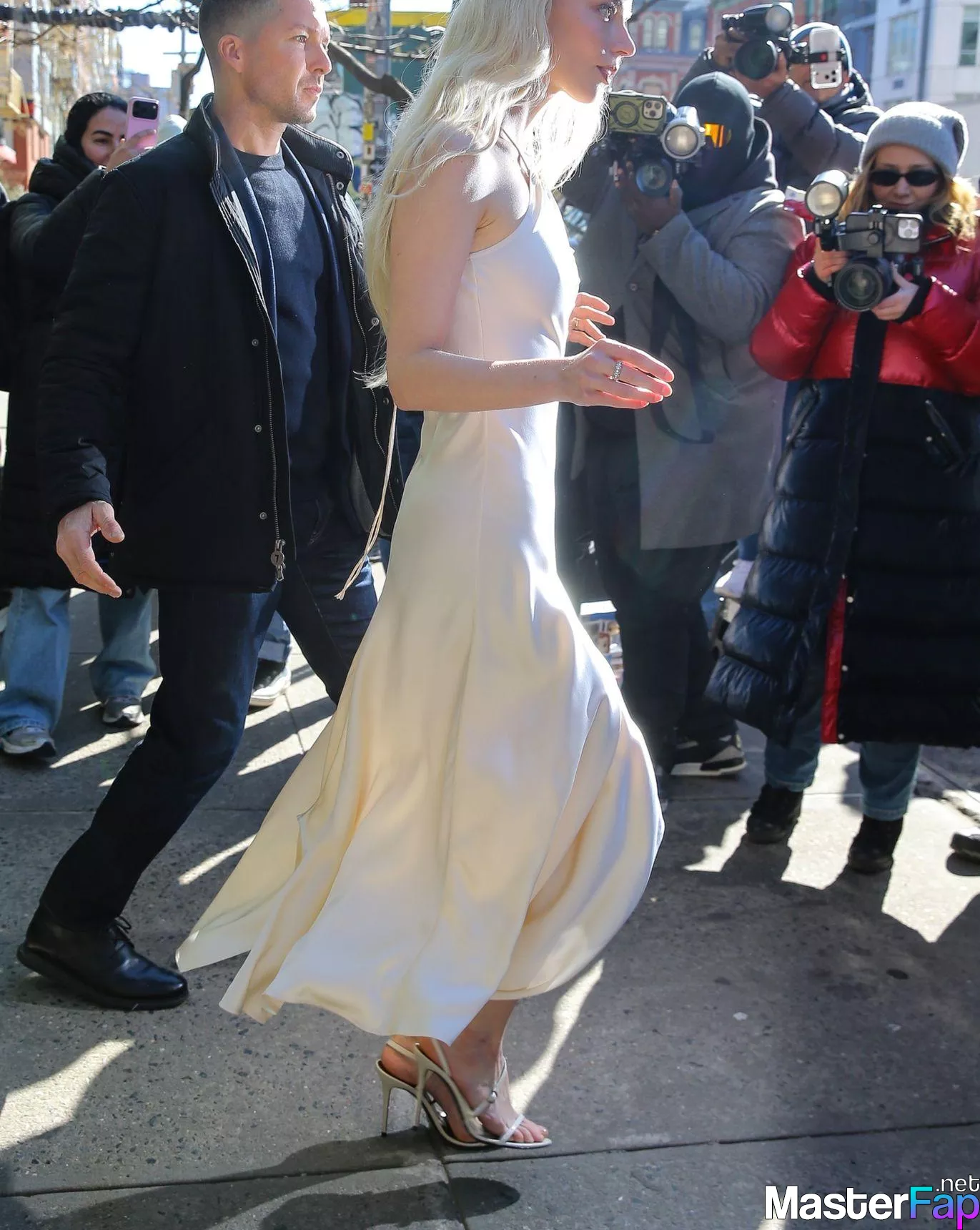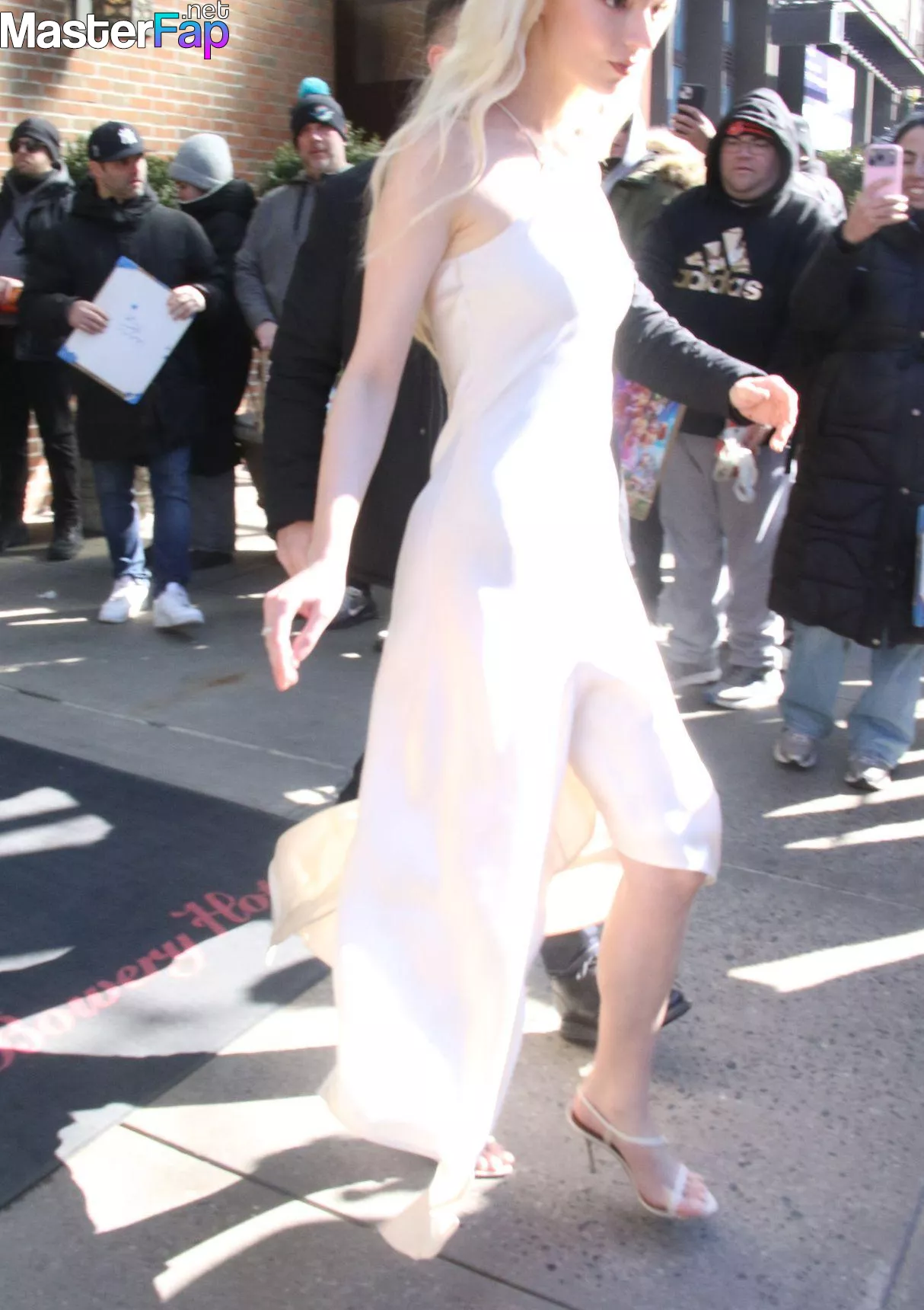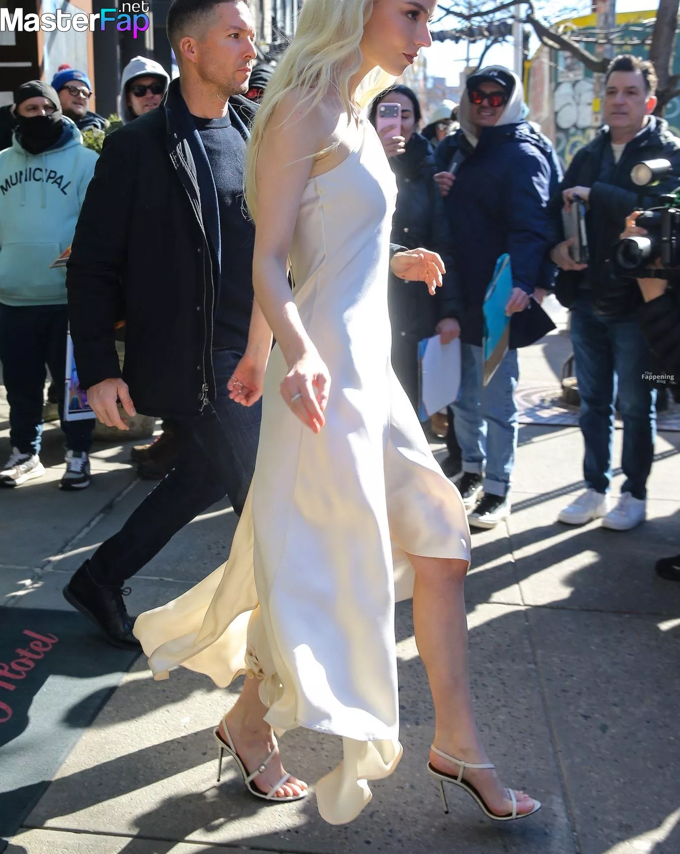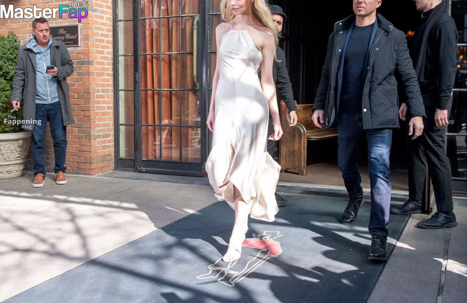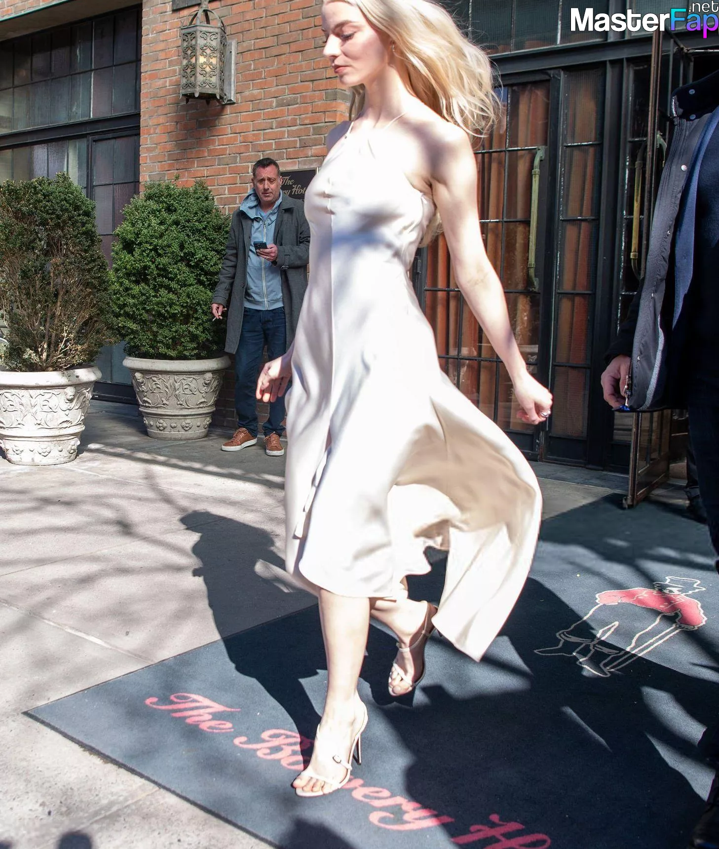 Braless Anya Taylor Joy looked gorgeous as she left The Bowery Hotel wearing a satin white Ralph Lauren dress paired with strappy heels.