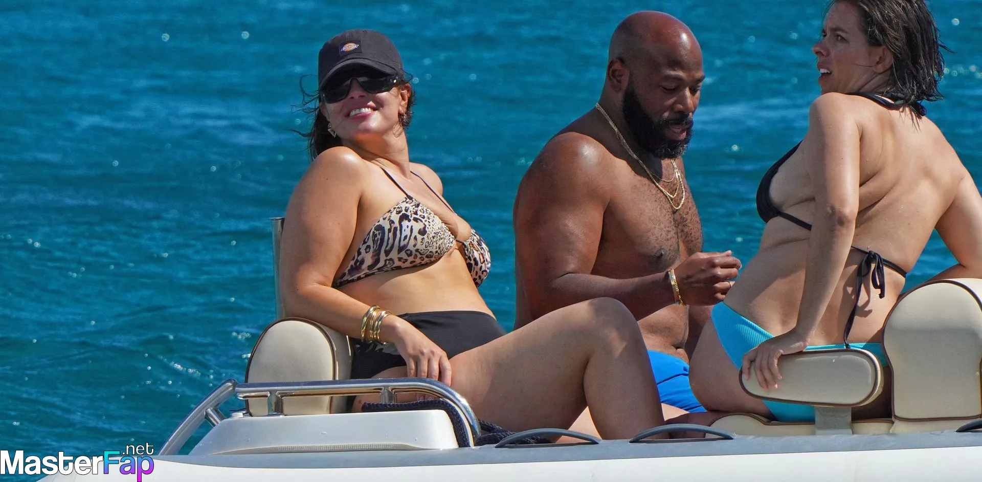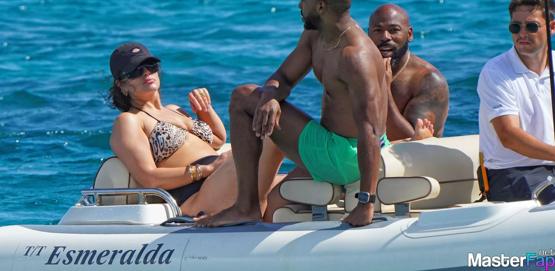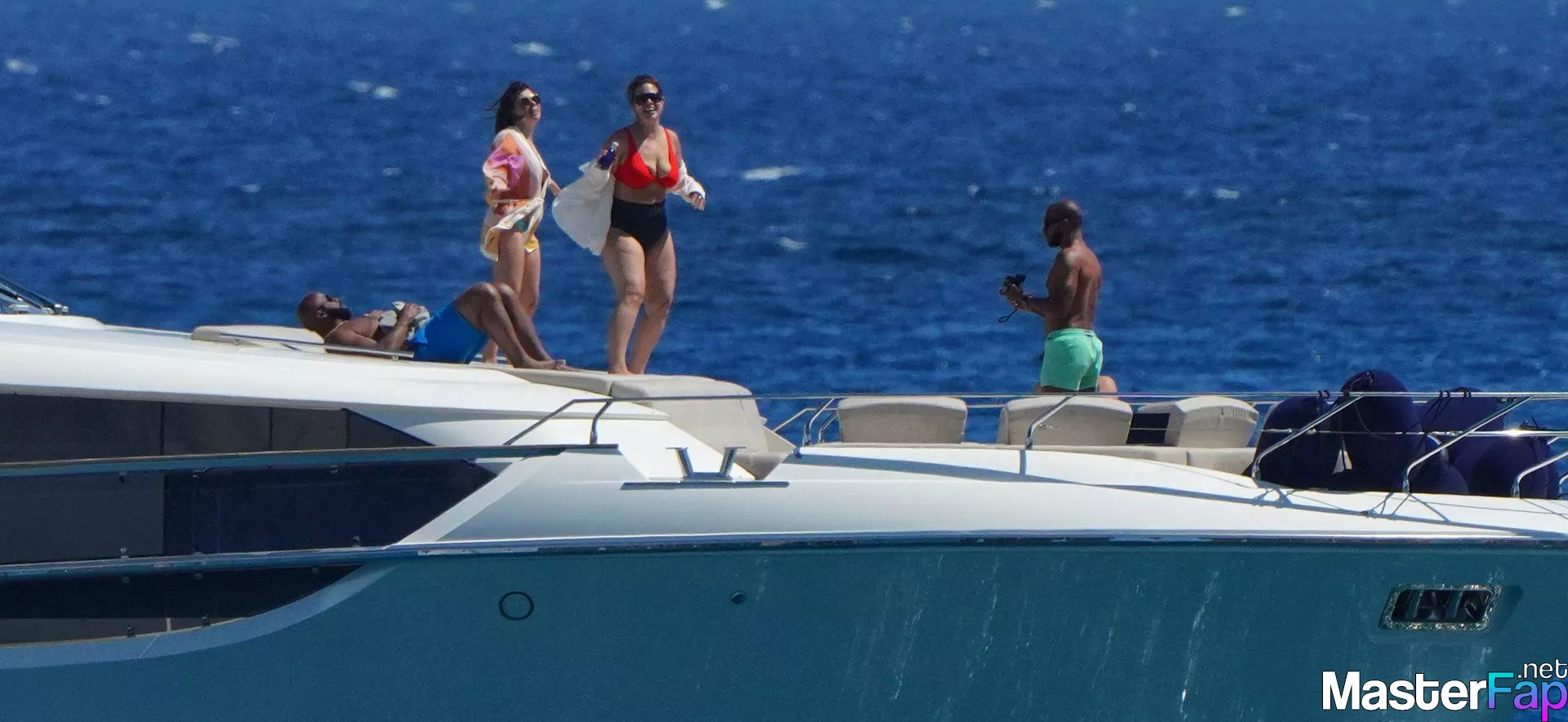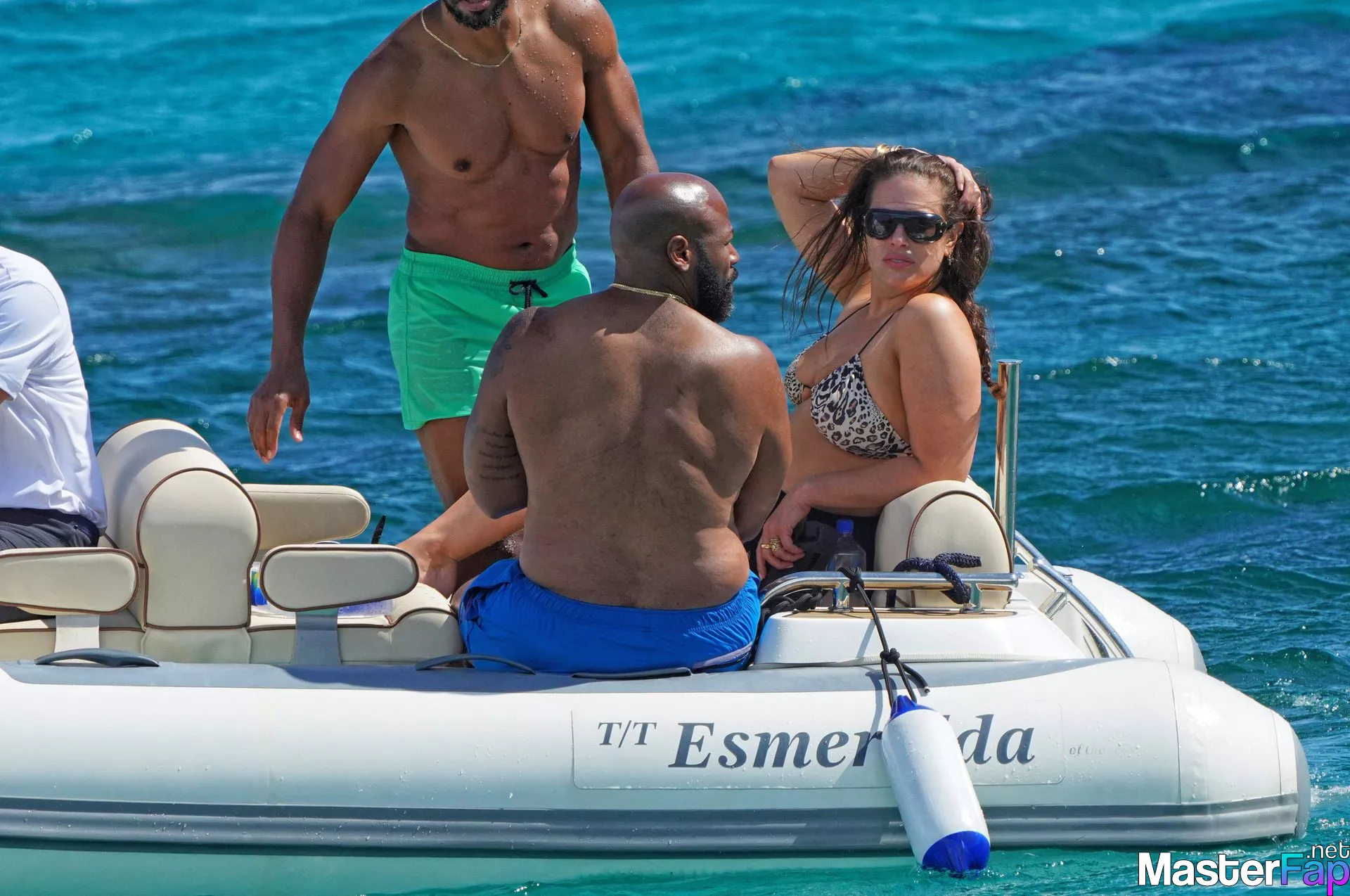 aboard June 10, 2023, a photo was taken of Ashley Graham, Justin Ervin, and the two of their pals enjoying a good time aboard a yacht in Saint Tropez.