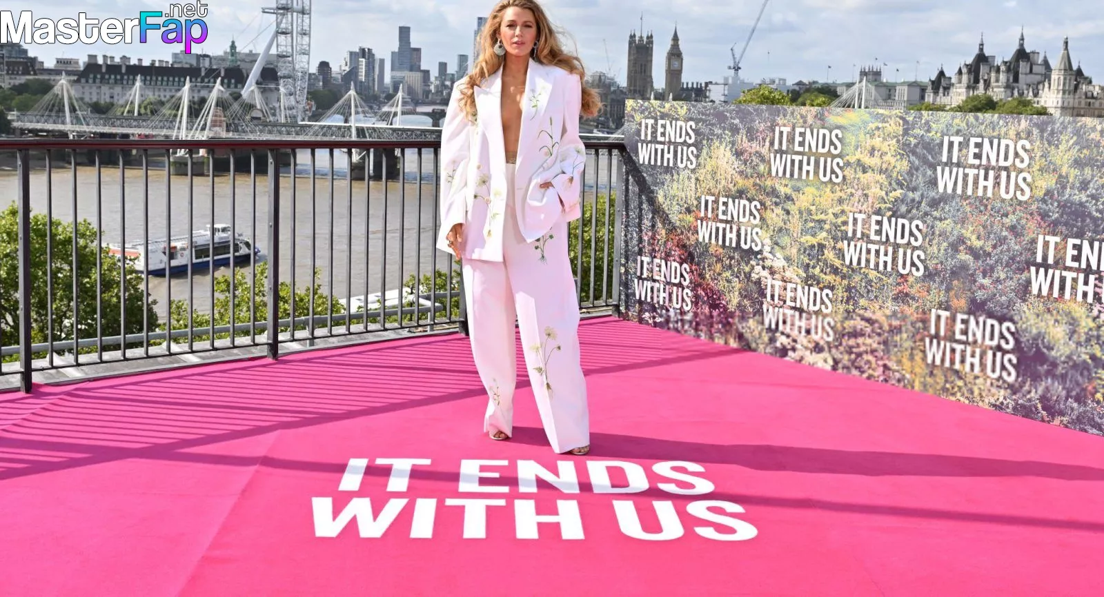 Blake Lively’s bust was the main attraction at the “It Ends With Us” photocall at the IET in Savoy Place in London.