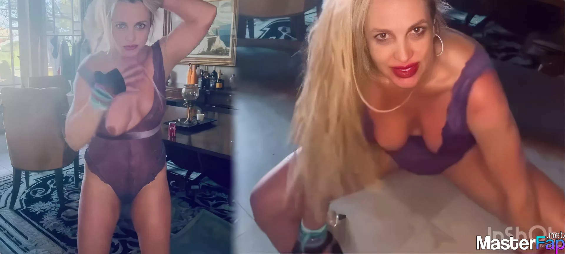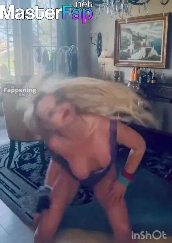Britney Spears shares a lively dance video from her mansion, featuring a purple lace bodysuit. The energetic performance highlights her crazy moves with some nudity – watch the slomo video below!