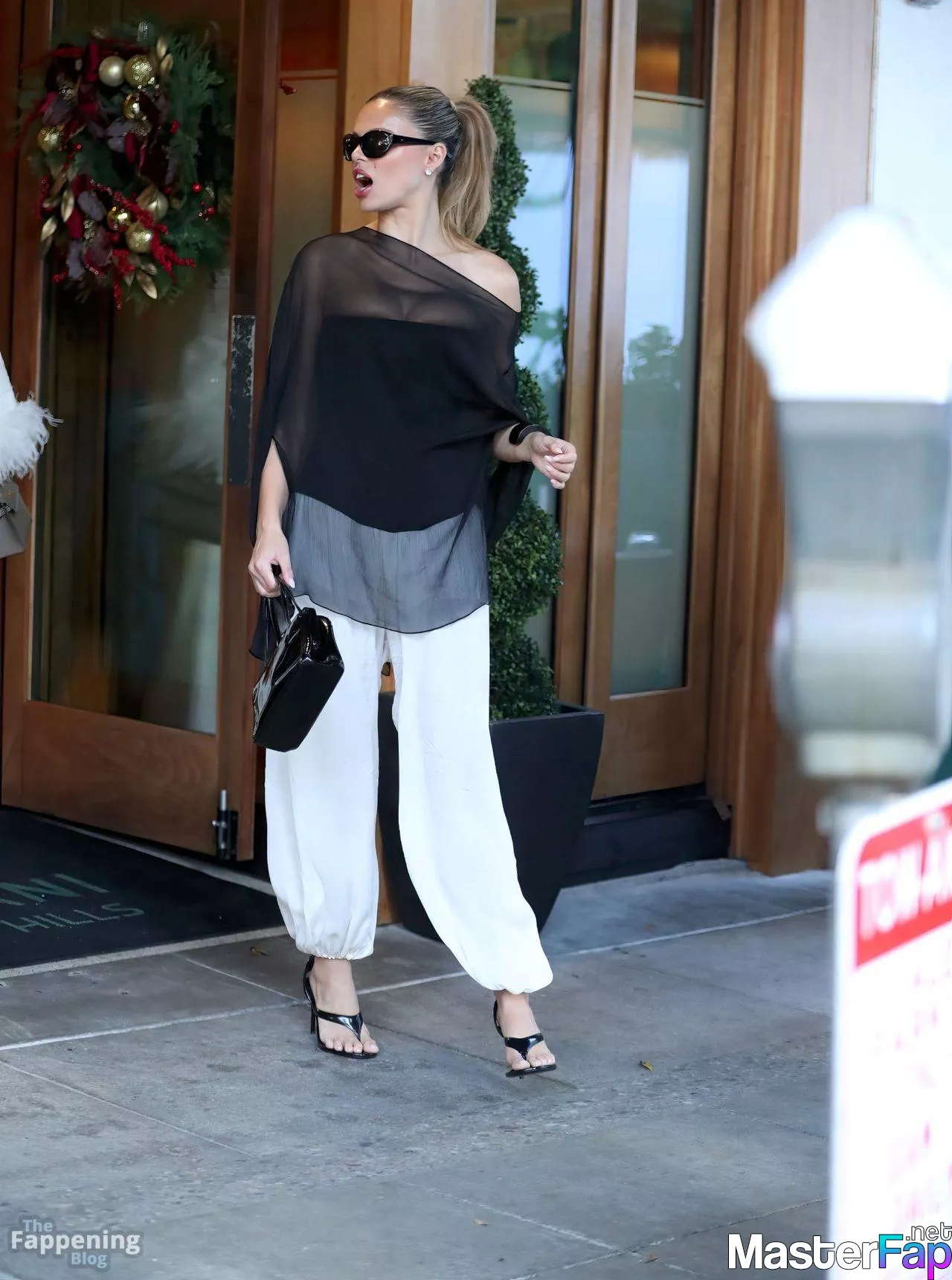 Brooks Nader is seen in a see-through black top at Cipriani, Beverly Hills, flashin’ her cleavage.