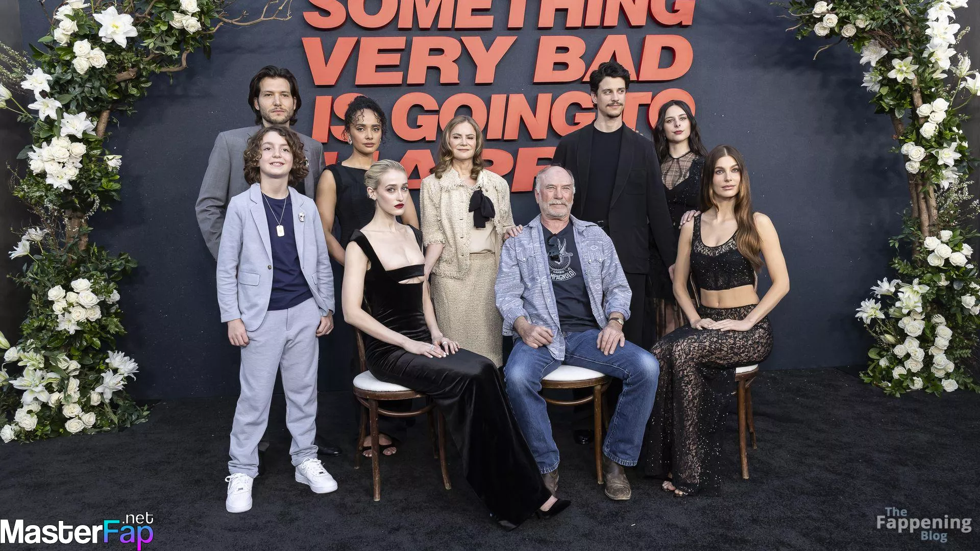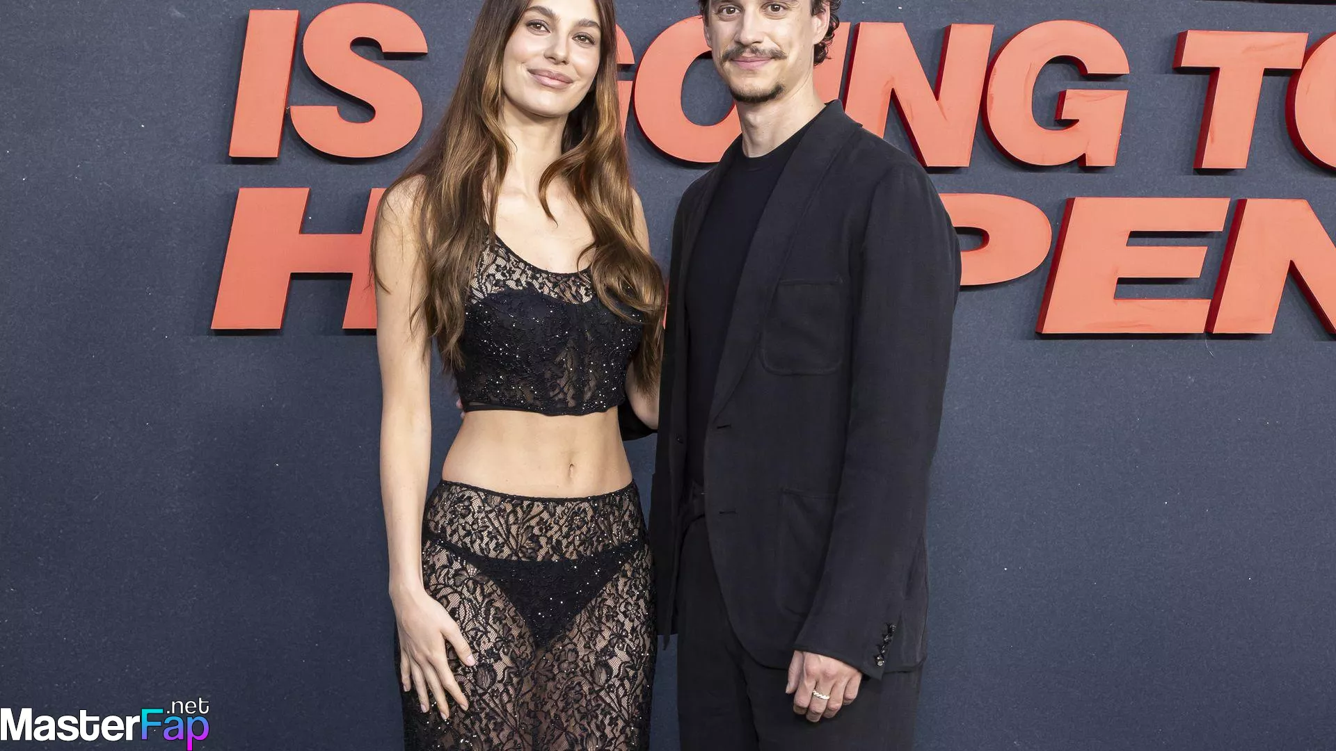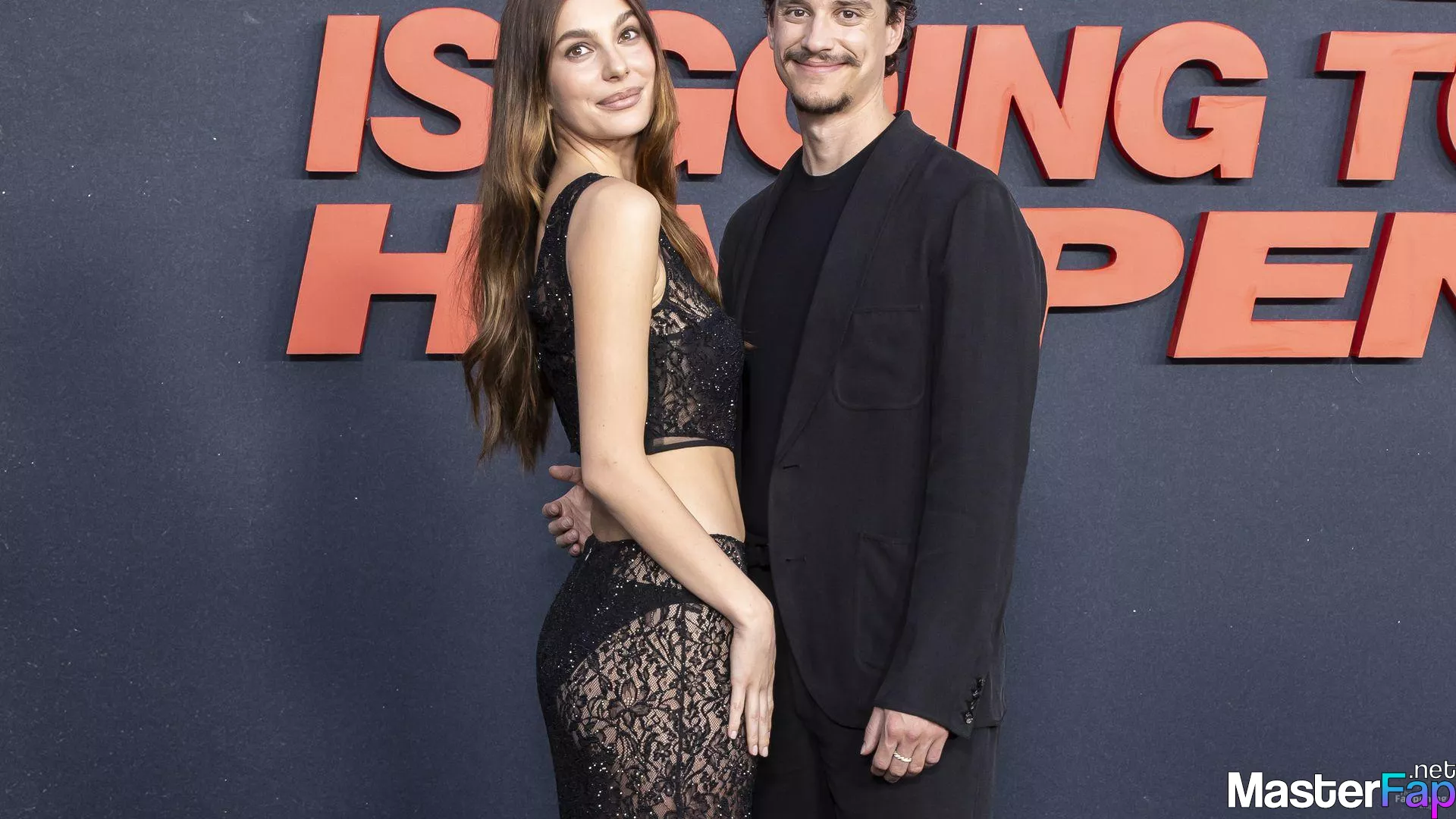 Camila Morrone poses in a black see-through ensemble on the red carpet of the “Something Very Bad Is Going to Happen” LA premiere.