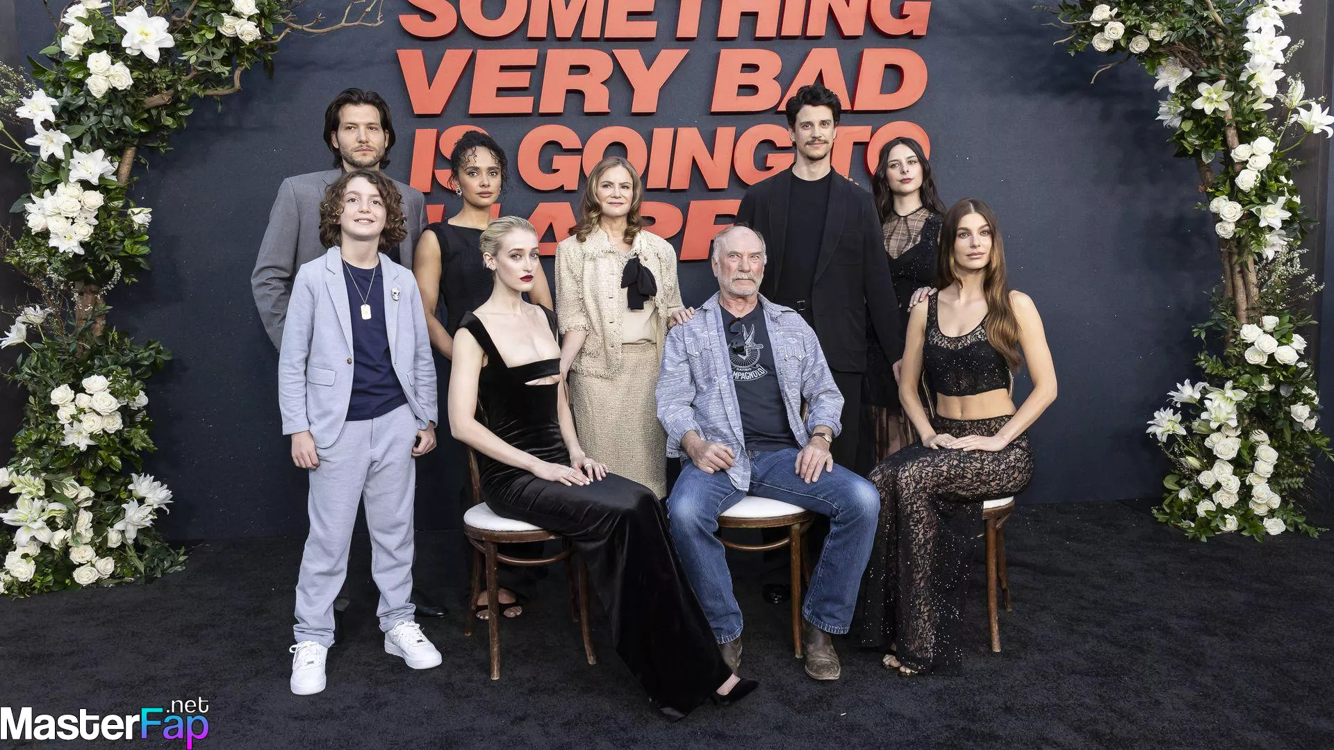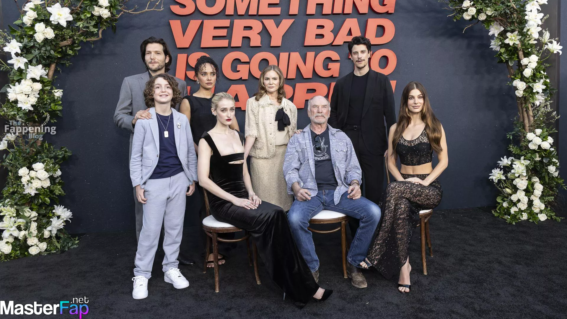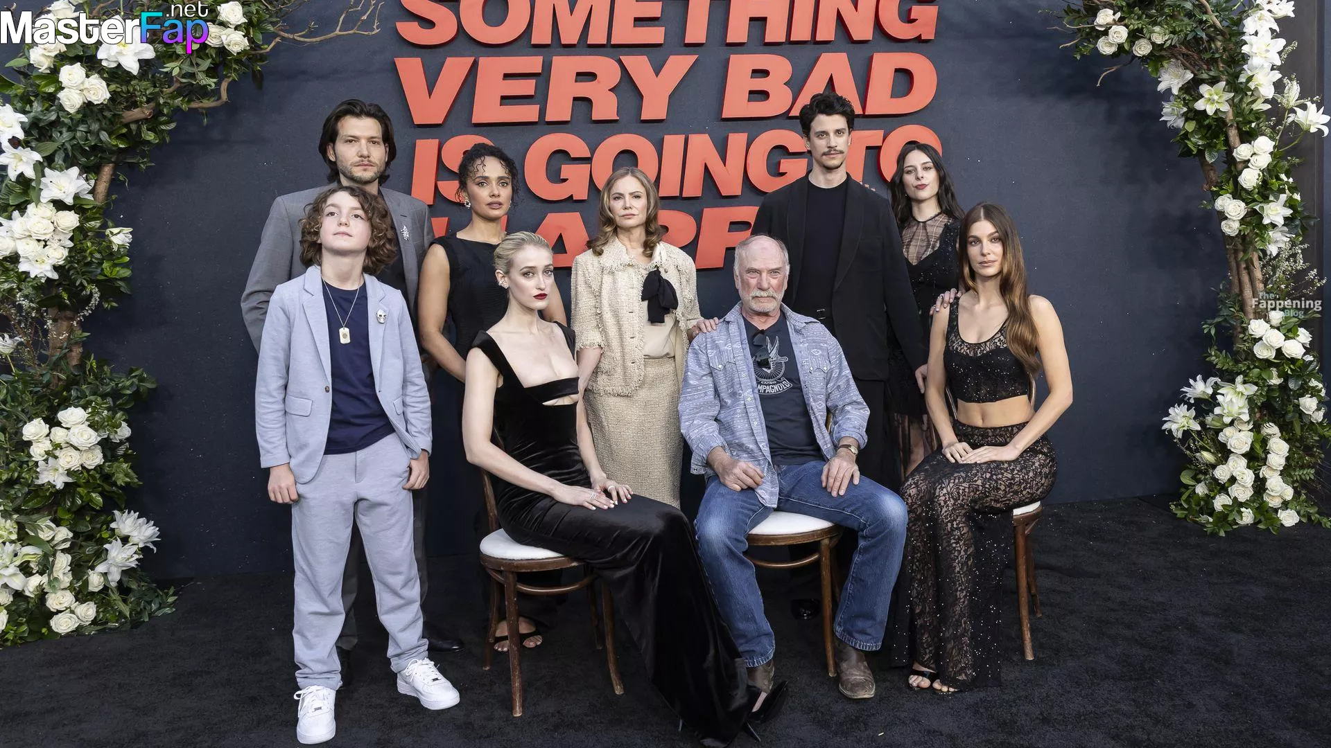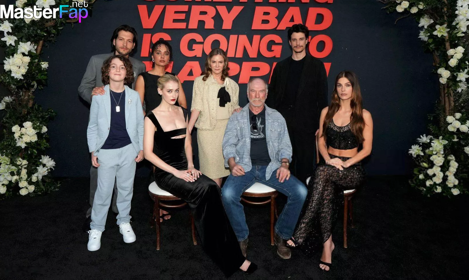 Camila Morrone poses in a black see-through ensemble on the red carpet of the “Something Very Bad Is Going to Happen” LA premiere.