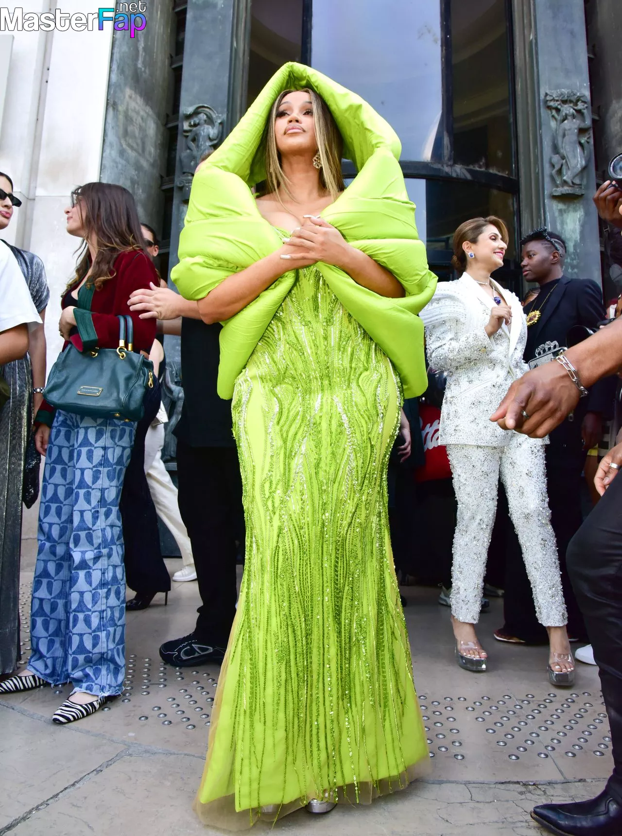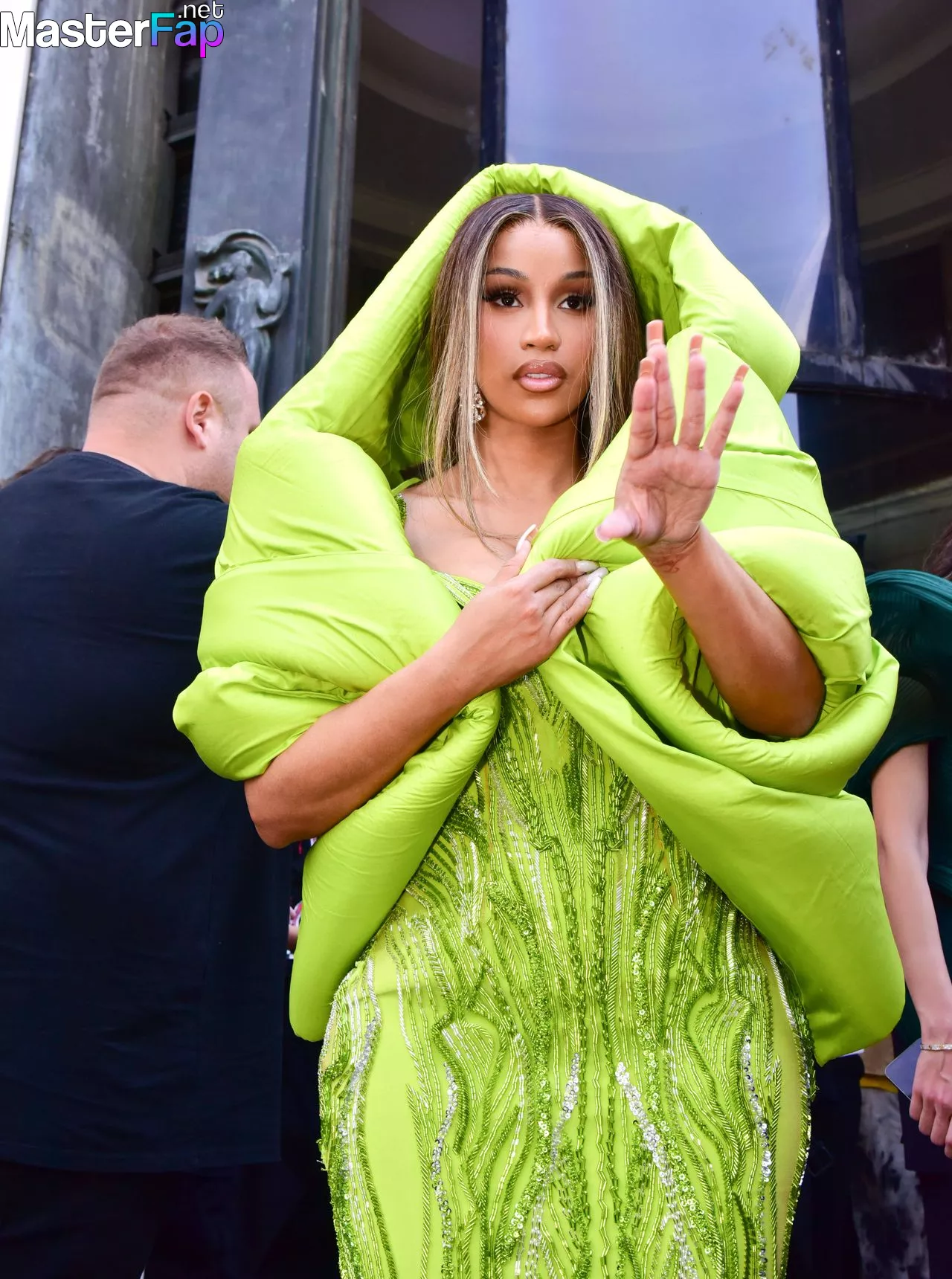 Look at this! The Star of the Fappening During Paris Fashion Week, Cardi B caused a stir by performing at the Gaurav Gupta Haute Couture show for the Fall/Winter 2023/2024 season. She is putting on a show of her strong fashion, and people are looking in her direction left and right.However, that's not the end of it! Cardi B is literally carried by her security as they are exiting the venue and making their way back to their hotel. They are not taking matters of safety and security lightly at all. This queen is well-versed in the art of making a dramatic departure that will have everyone talking. Cardi B's presence is larger than life, and her star power cannot be denied. Get ready to be blown away by her!