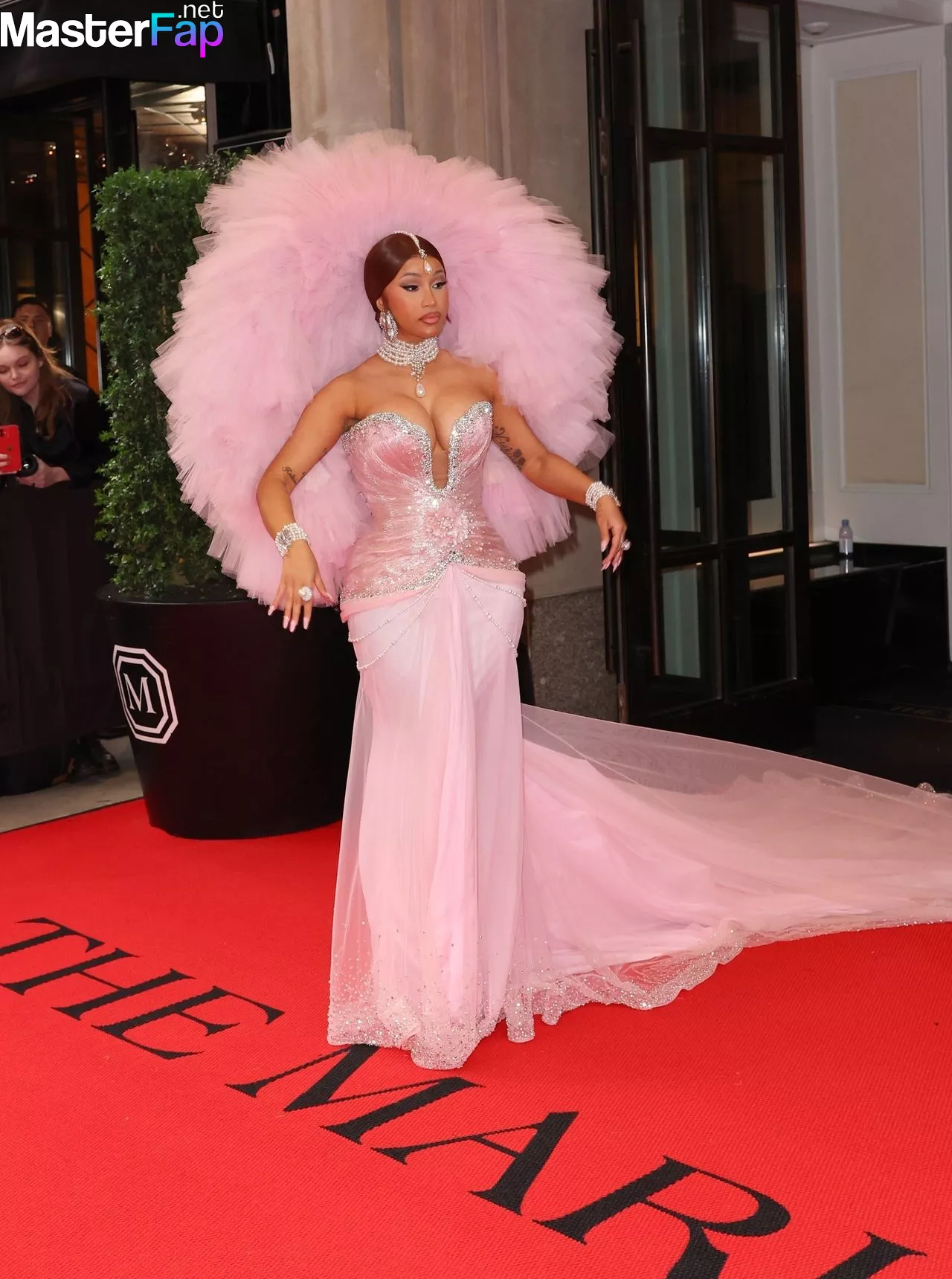 On May 1, 2023, a picture was taken of the singer Cardi B as she was leaving the Mark Hotel in New York City to attend the Met Gala at the Metropolitan Museum of Art.