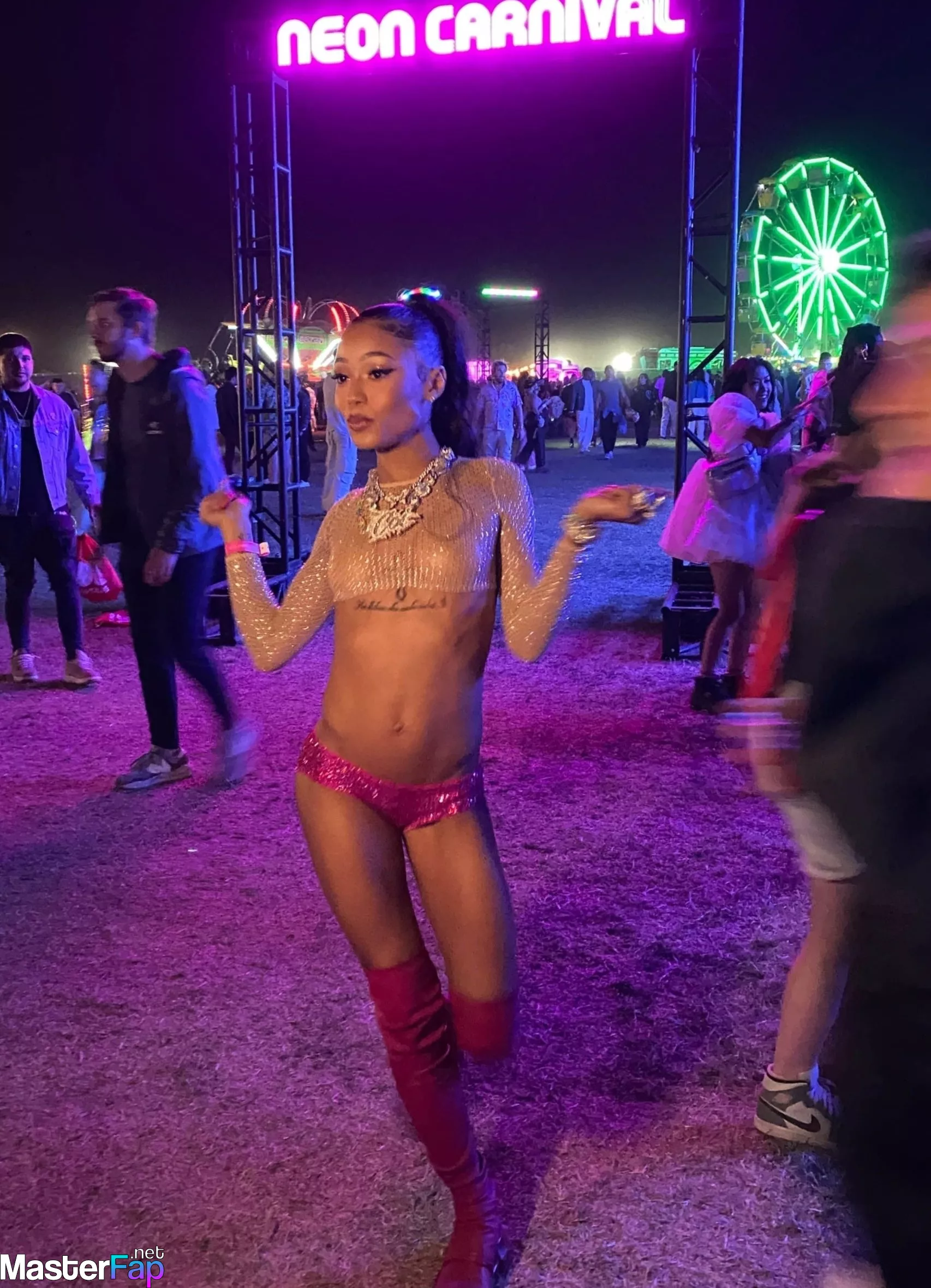On April 16, 2023, on day 2 of the Coachella 2023 Music Festival in Indio, California, Coi Leray enjoys the Neon Carnival Party and strikes a few poses while she is there.