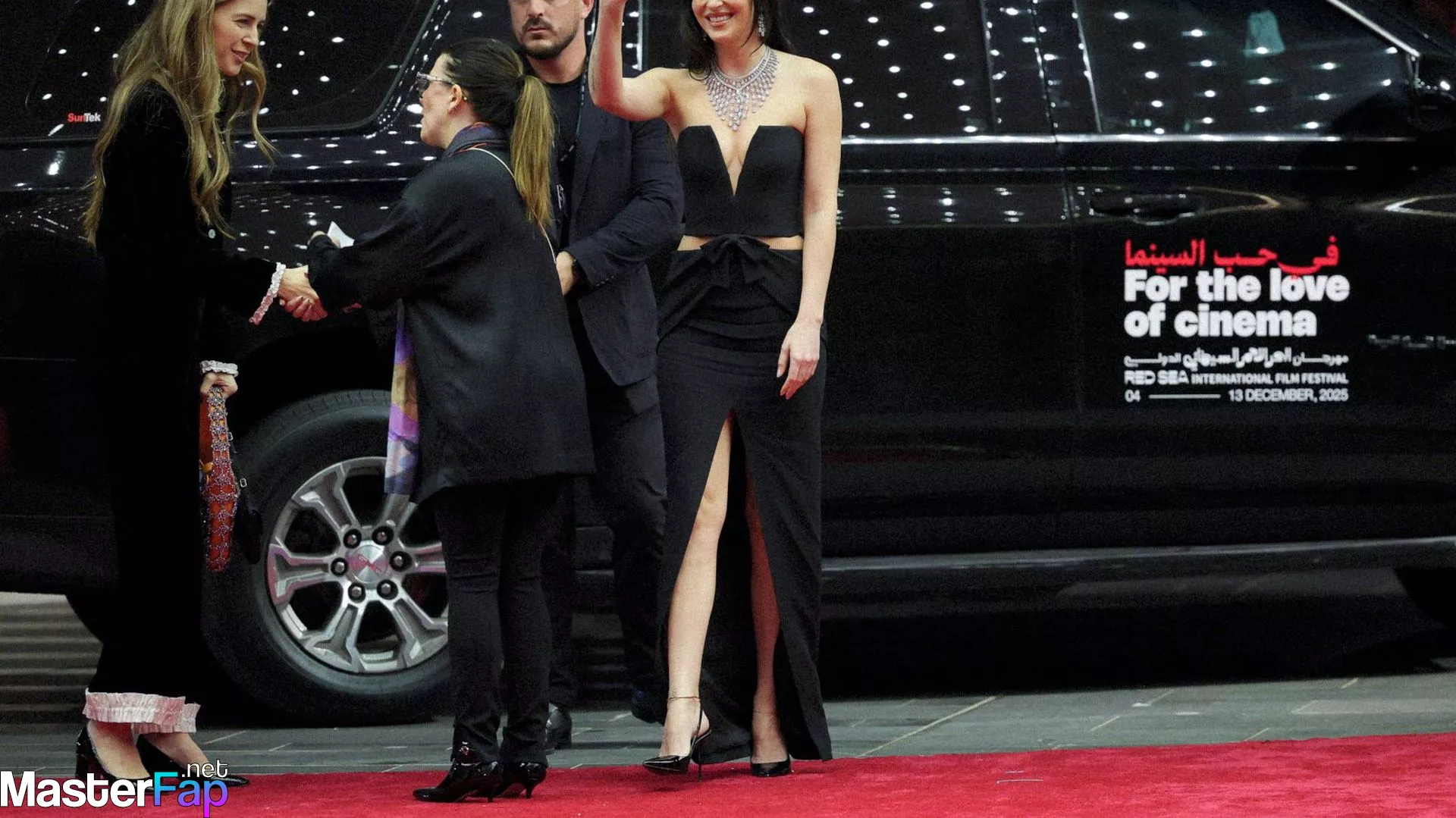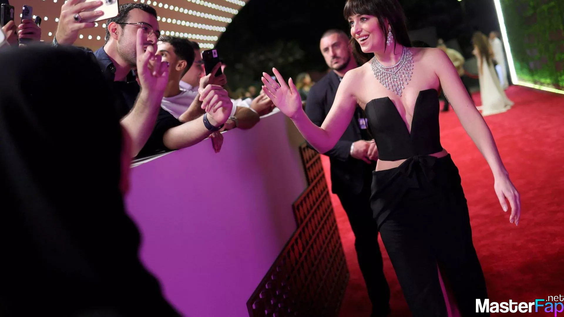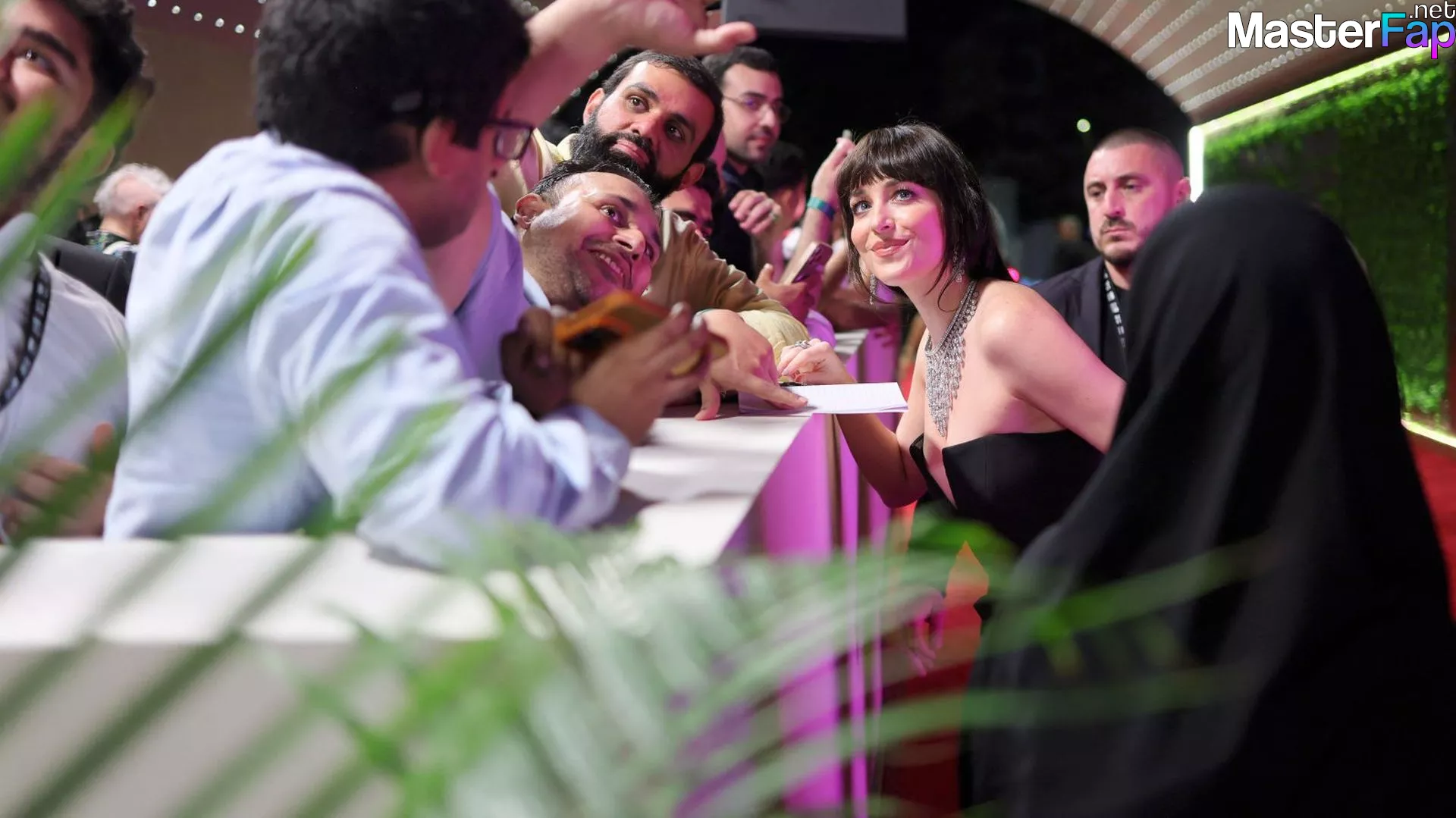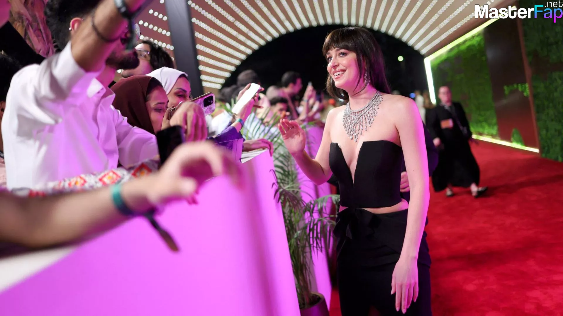Dakota Johnson shows off her sexy tits and legs in a revealing gown at the 2025 Red Sea Film Festival.