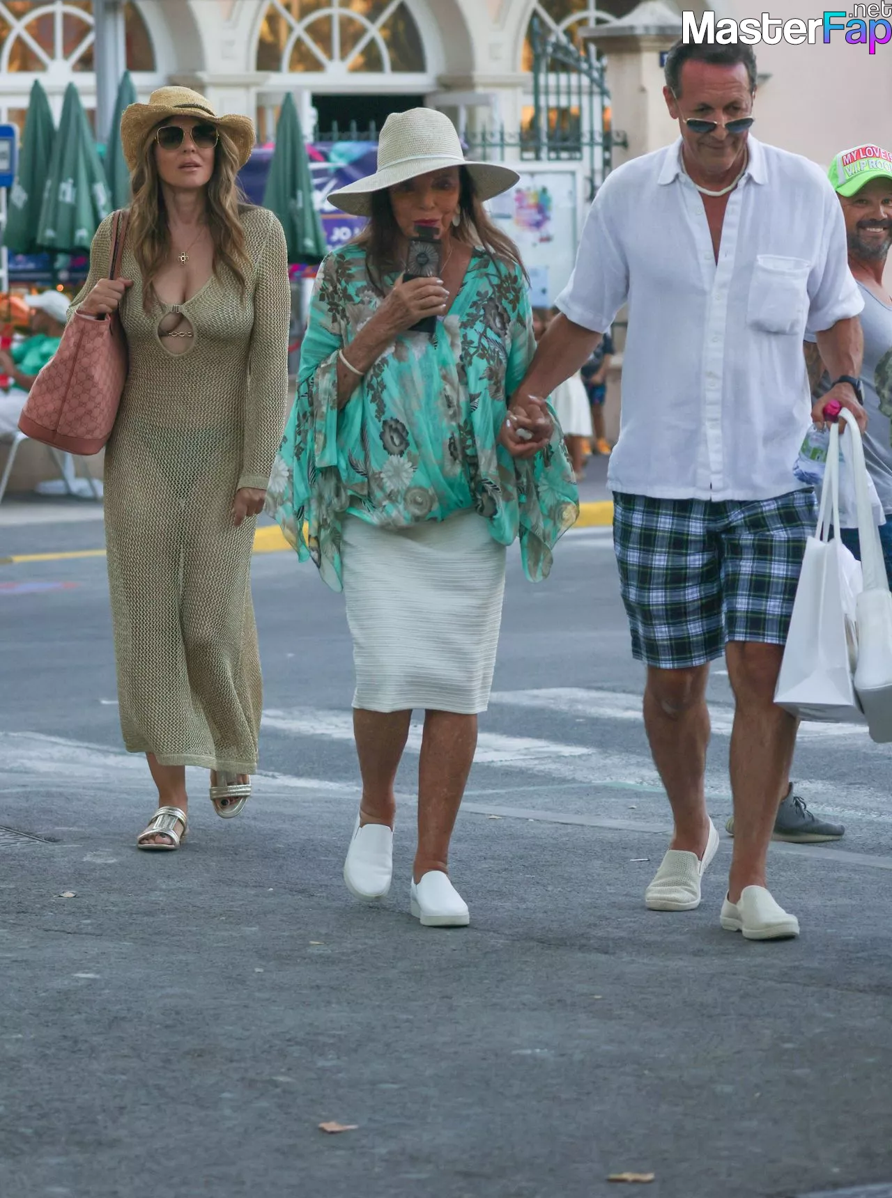 On December 8th, 2023, in Saint-Tropez, France, Elizabeth Hurley and Joan Collins are sighted while out shopping.