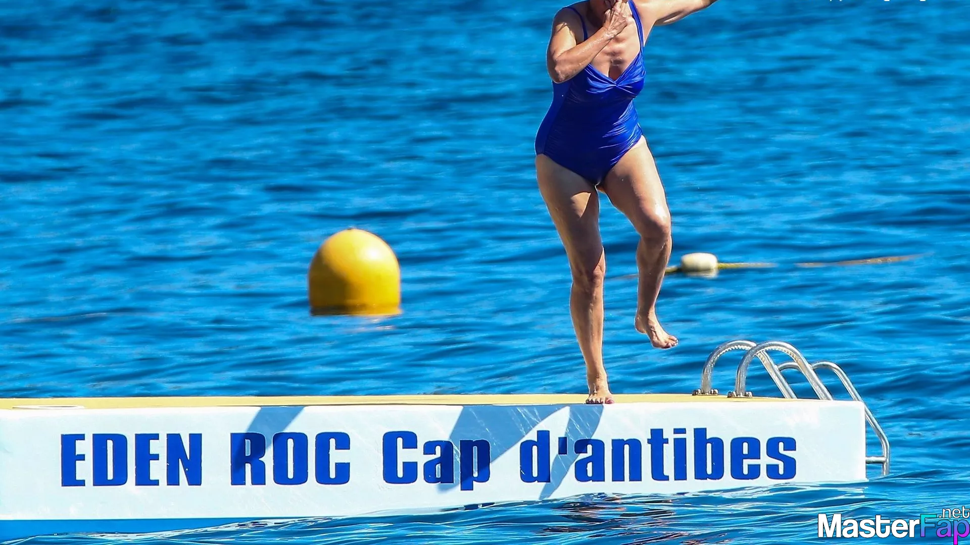 During the 70th annual Cannes Film Festival, on May 20, 2017, British actress Emma Thompson takes some time to unwind on the floating pontoon that is located in the sea pool area of the Eden Roc Hotel in Cap d'Antibes.