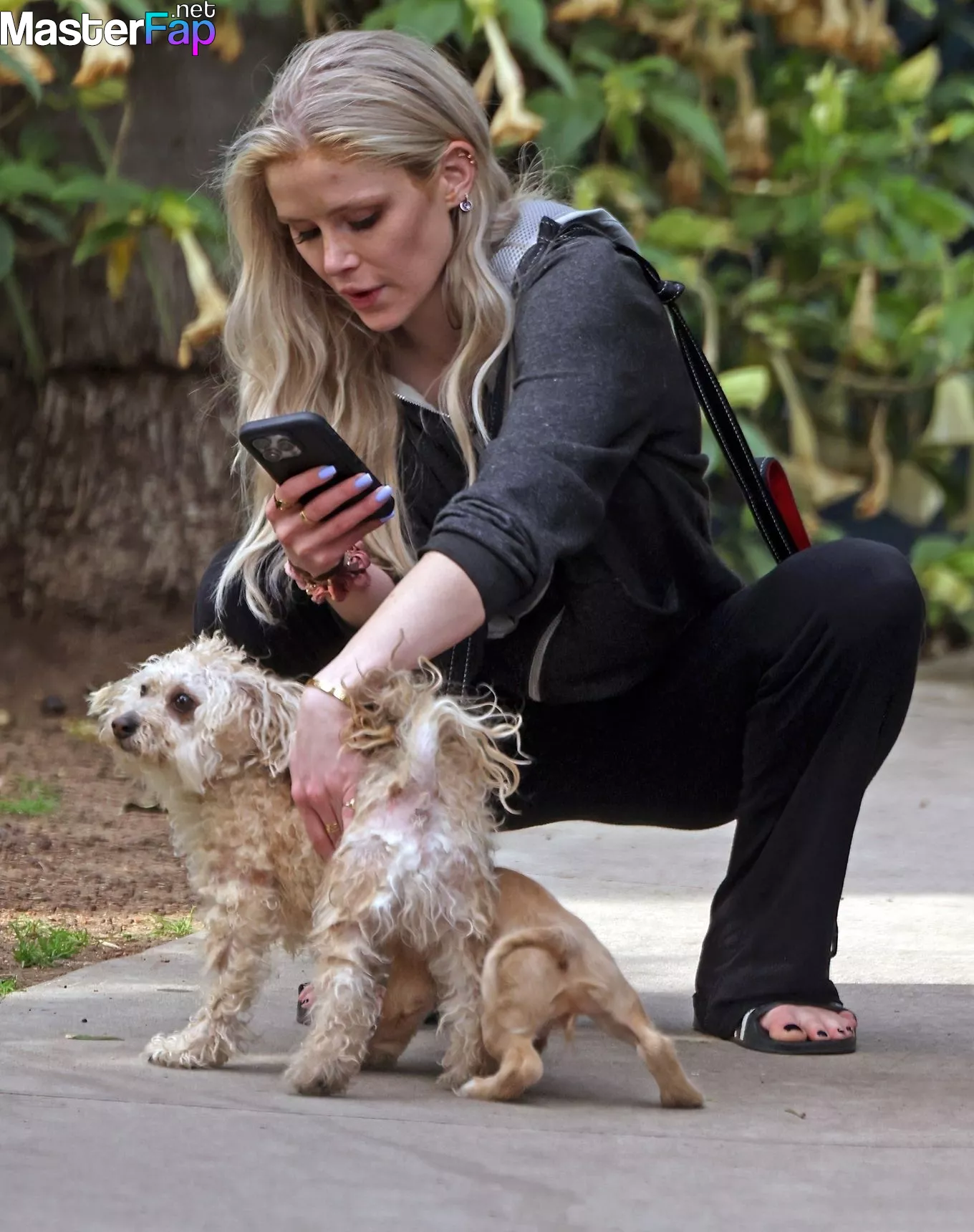 The make-up free ‘The Boys’ star, Erin Moriarty is glued to her phone as she steps out with her dogs amid Megyn Kelly’s jibes about her appearance. Forcing the young actress to quit her Instagram.
