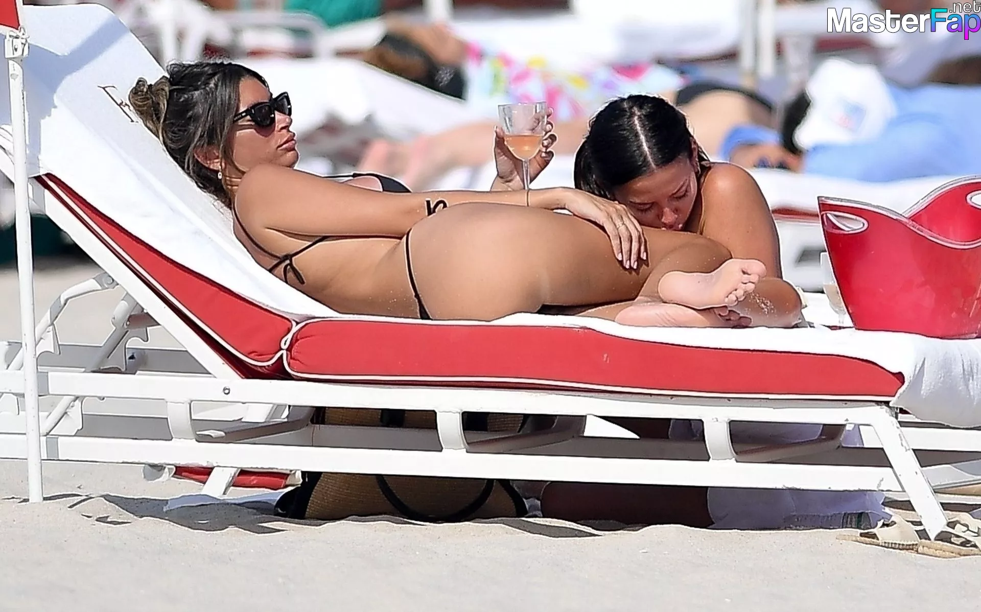 Argentine model and actress Karina Jelinek and girlfriend Florencia Parise share some PDA on Miami Beach. The loving couple drank two bottles of wine soaking up the sun!