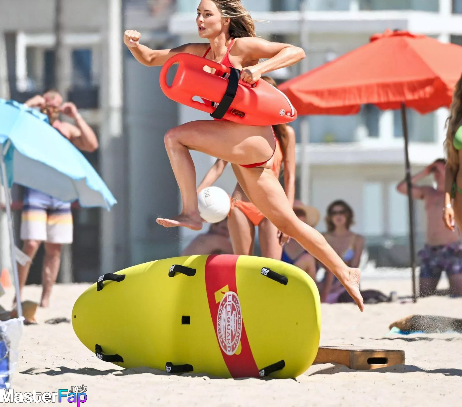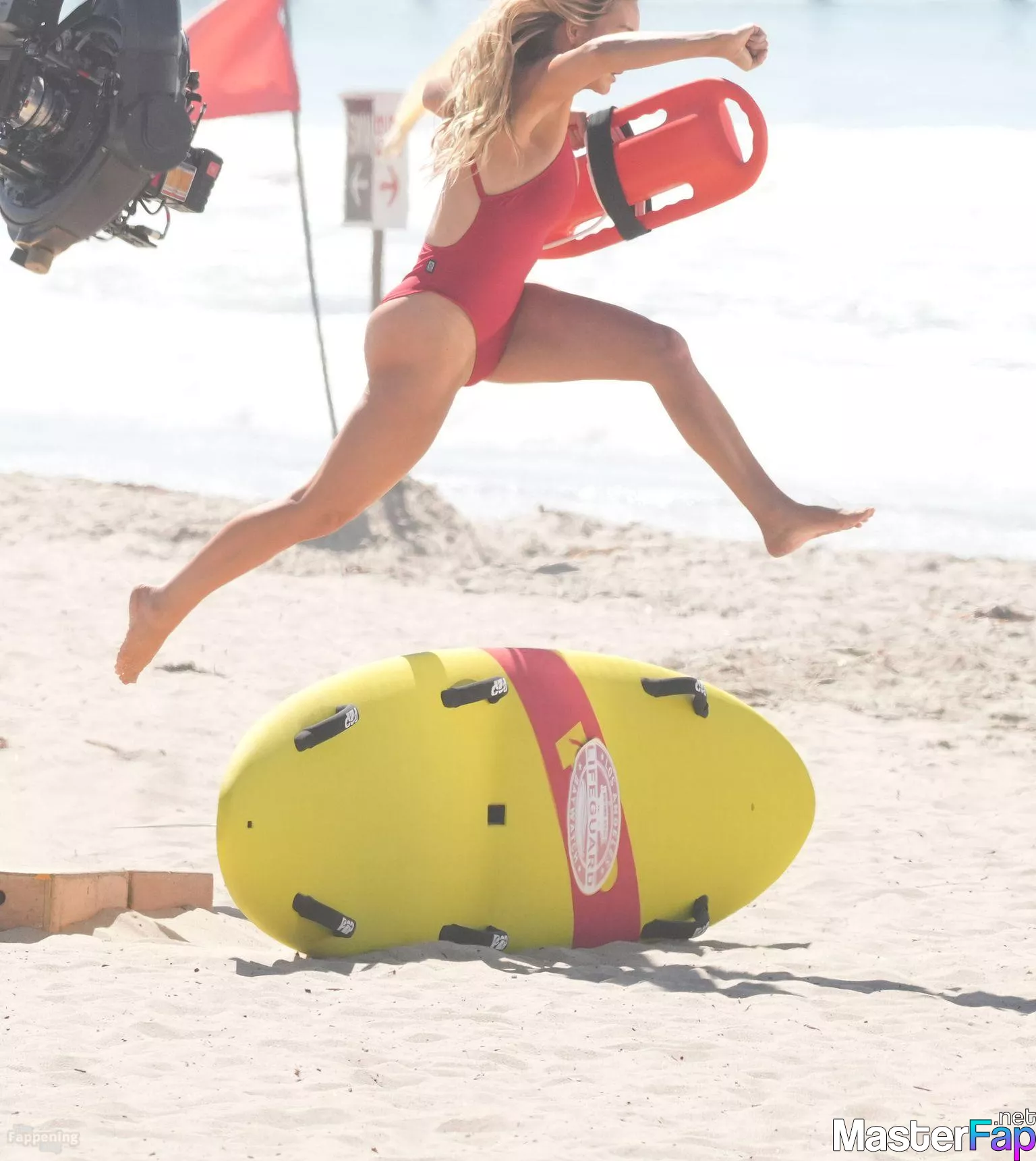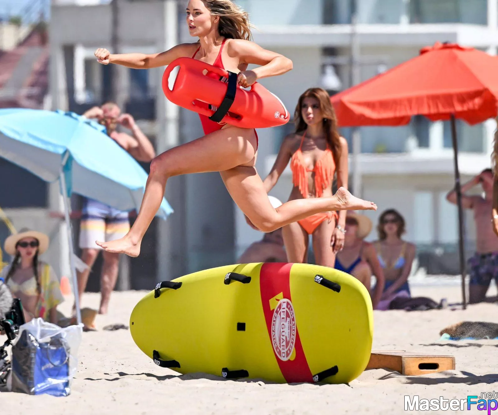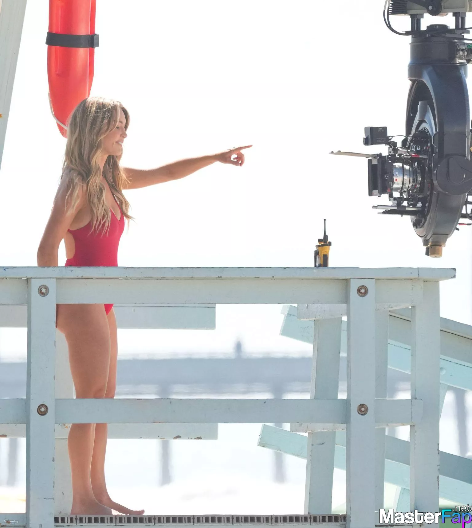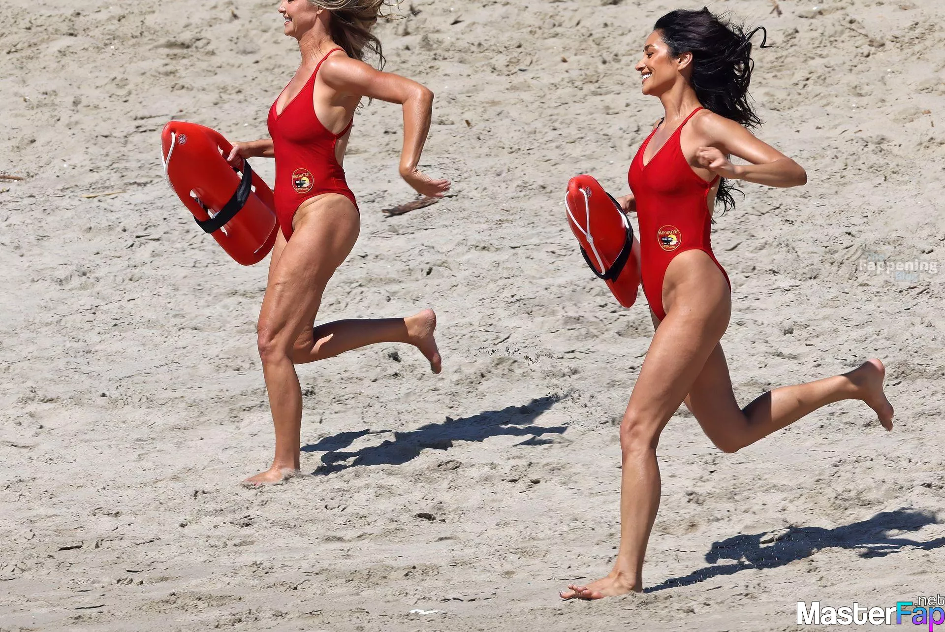 Shay Mitchell, Hassie Harrison, Stephen Amell and Noah Beck are pictured while filming the new Baywatch series in Venice Beach.