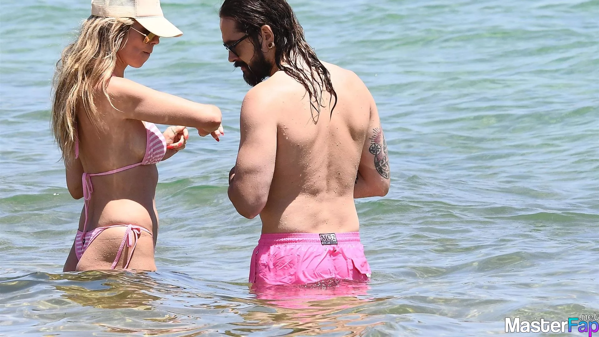Look at Heidi Klum, who is fifty years old, strutting her stuff in a skimpy pink bikini. She is getting quite close to her husband Tom Kaulitz, who is 33 years old, and the two of them are showing a lot of public display of affection while they are in Sardinia. These two aren't scared to demonstrate their affection for one another and had a hell of a good time doing it!