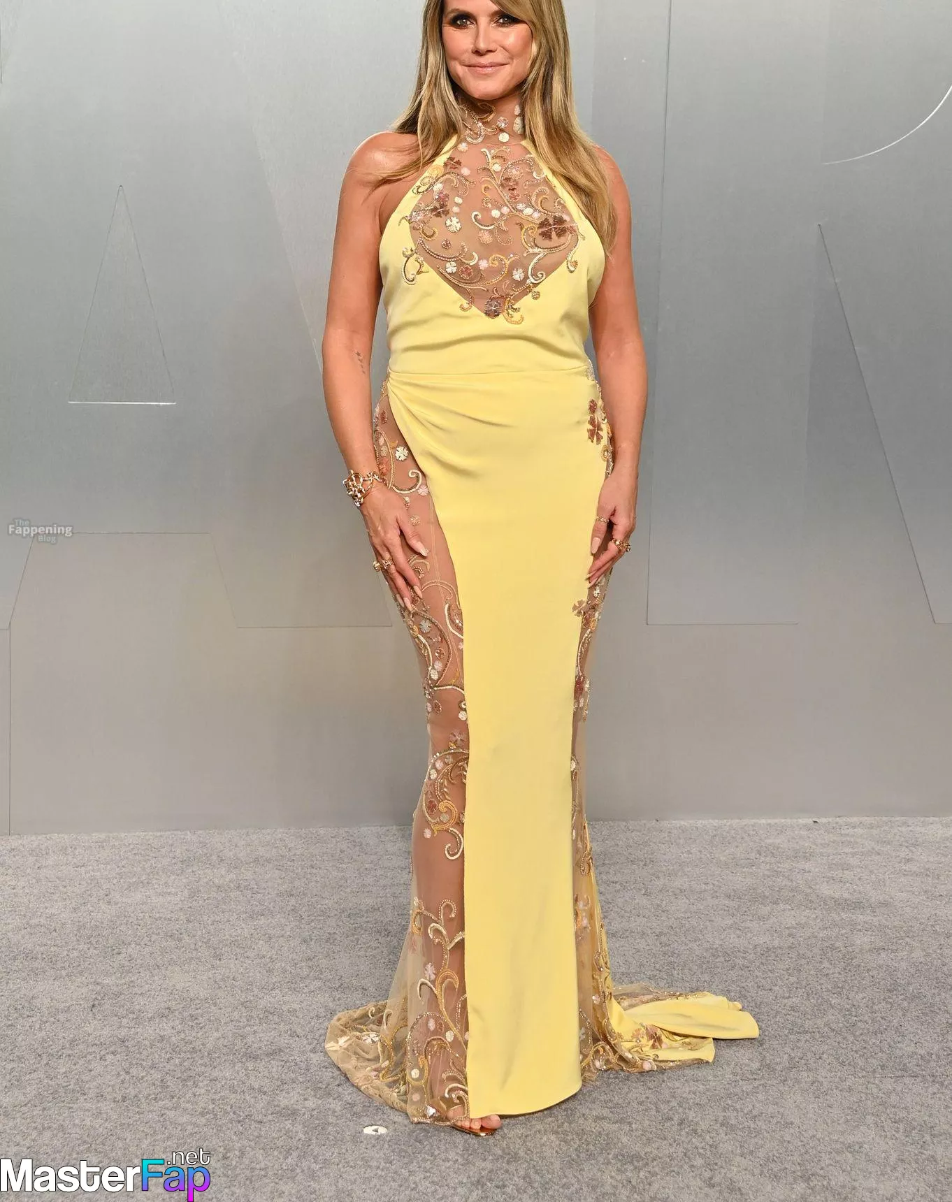 Heidi Klum looks sexy in a see-through yellow dress as she attends the 2026 Vanity Fair Oscar Party at Los Angeles County Museum of Art on March 15, 2026 in Los Angeles, California.