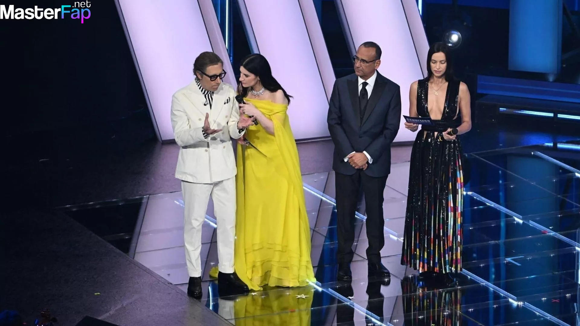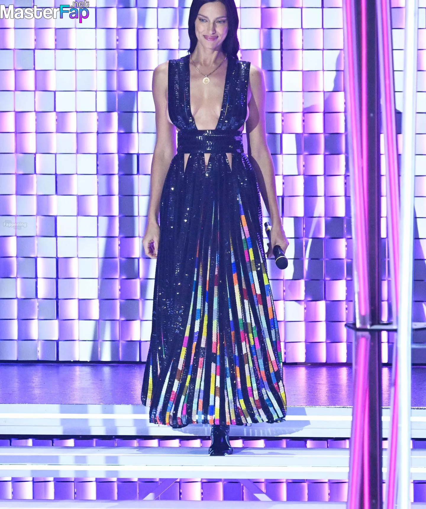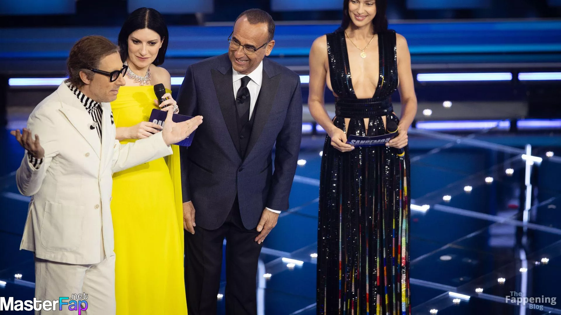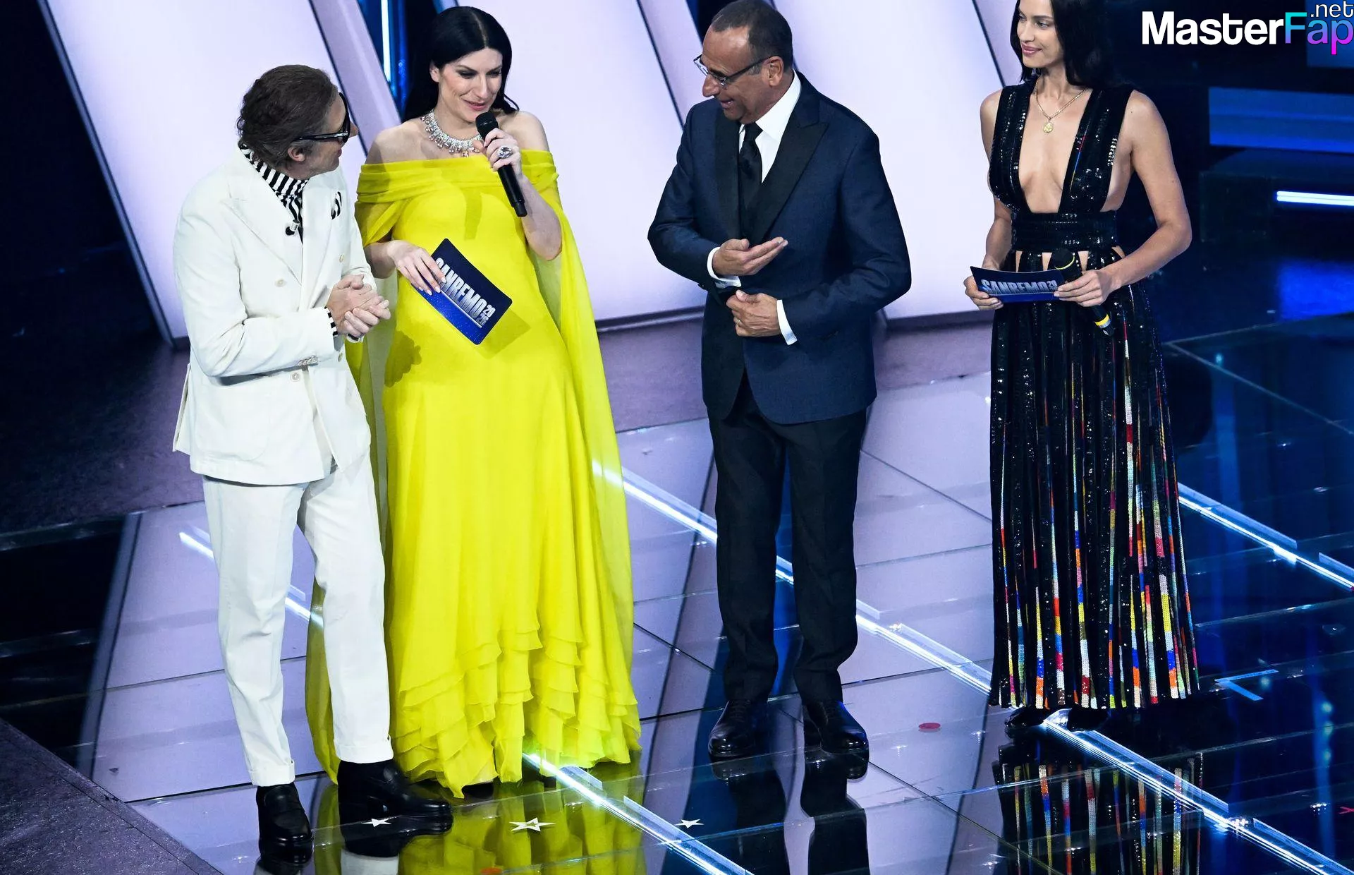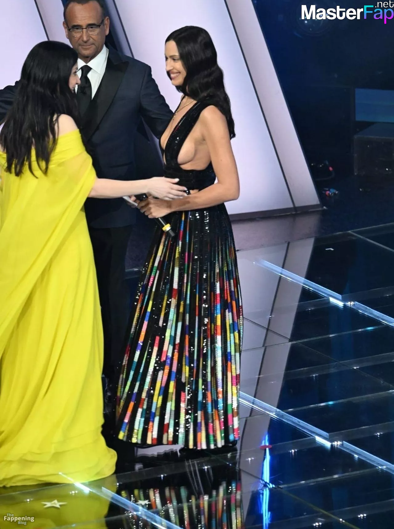 Irina Shayk is pictured showcasin’ a wardrobe change durin’ the Sanremo Music Festival at the Ariston Theatre.