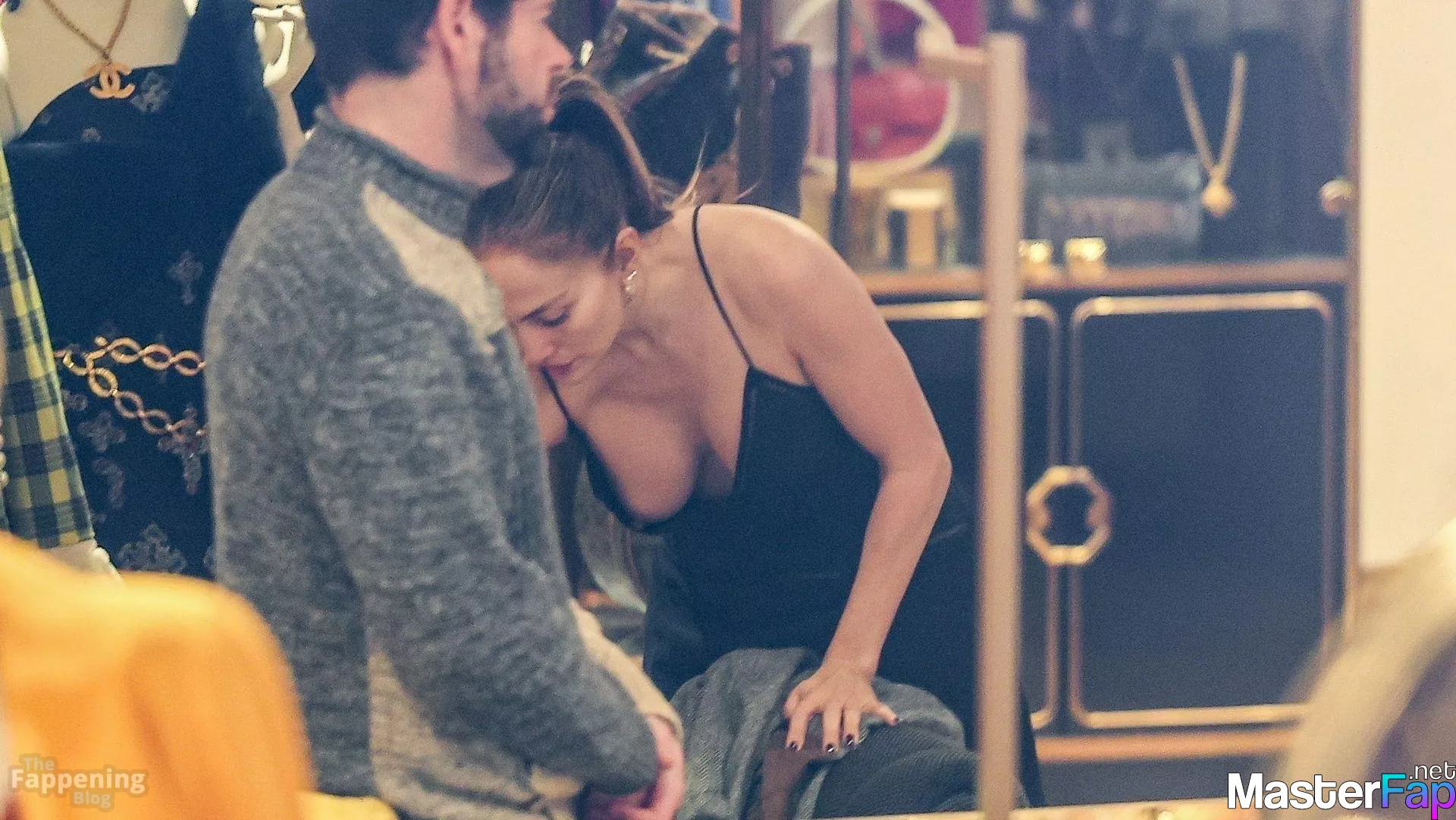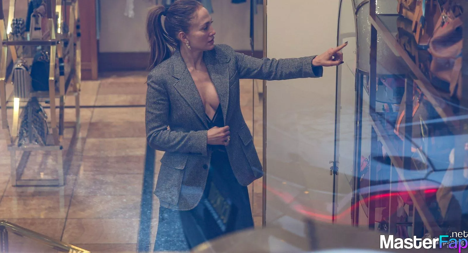 Jennifer Lopez was spotted in Beverly Hills shopping at What Goes Around Comes Around, browsing the luxury vintage store’s designer collection. The singer flashed her nude tit here!