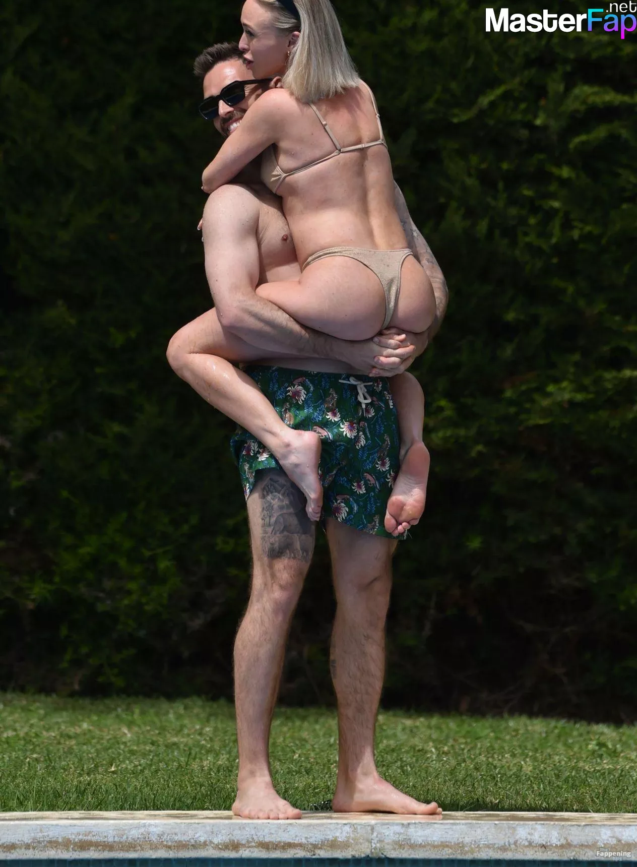 “Hollyoaks” actress Jorgie Porter packs on the PDA with her fiancé Oliver Piotrowski while enjoying a break away in Spain. Jorgie showed off her incredible bikini body just 4 months after giving birth to her daughter.