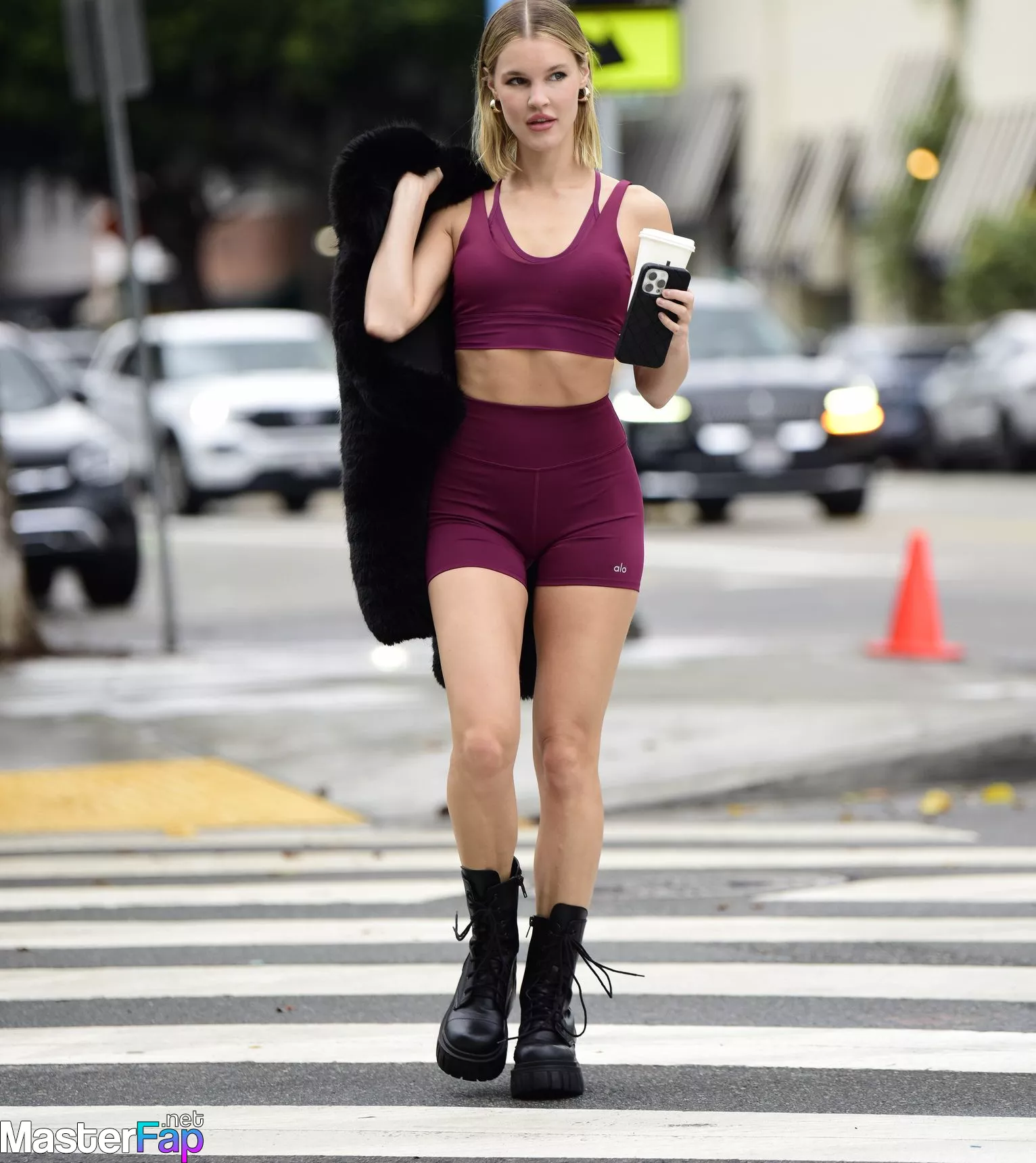 As Joy Corrigan is spotted leaving the Alo Yoga Headquarters in Beverly Hills on December 23, 2023, she manages to get in a workout before the holiday season. The cranberry sports bra and shorts were worn by the American model, who was 35 years old. She teamed them with black boots.