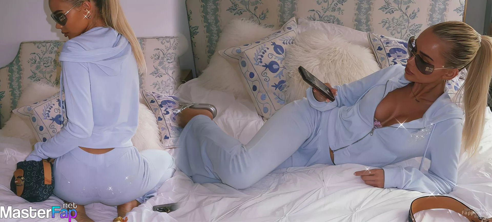 Julia Cavanagh poses in a new bedroom shoot. Unzipped hoodie reveals her pink bra and sexy tits. Check out her social media pics below!