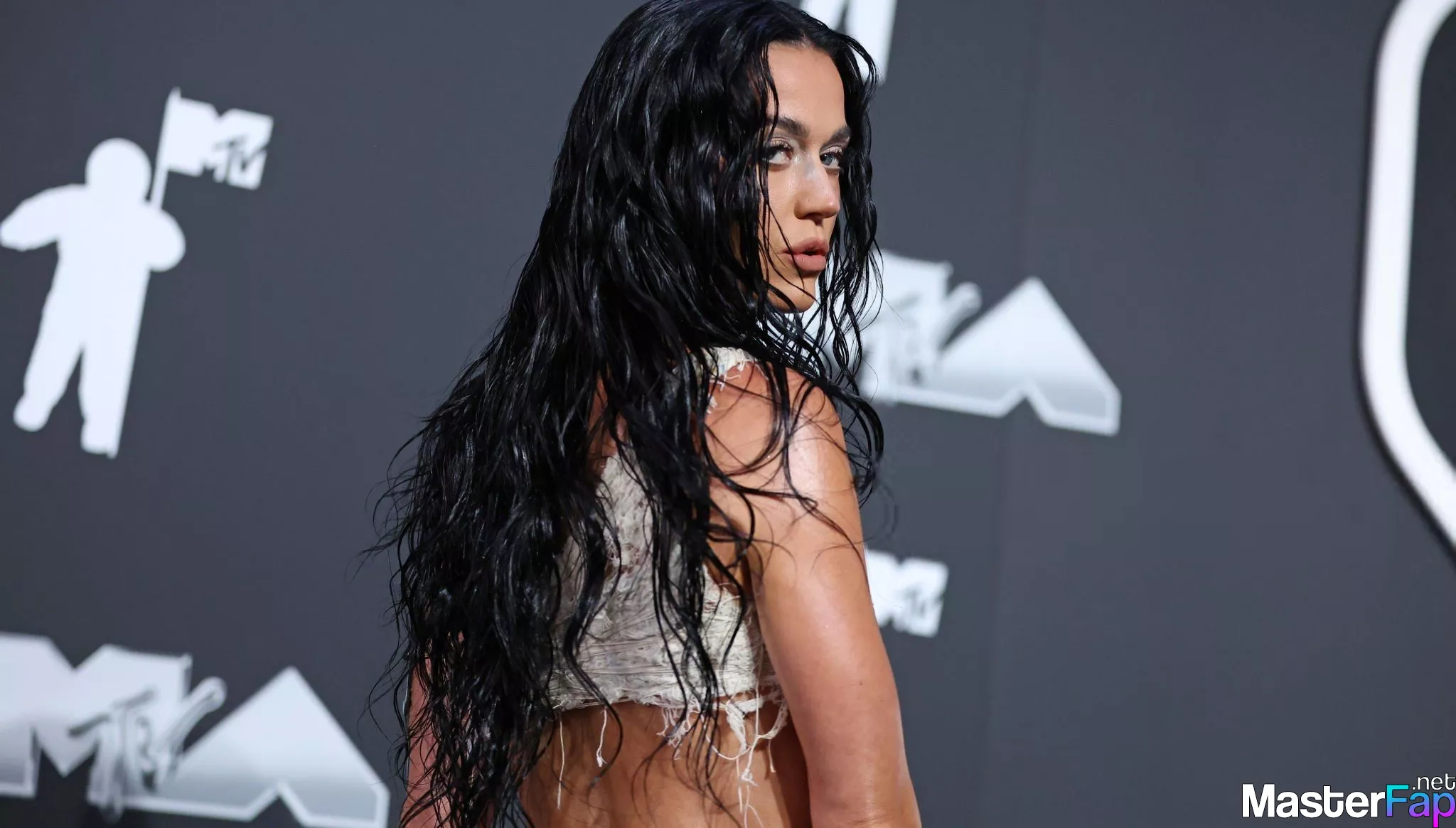 Katy Perry is seen braless in a super skimpy outfit at the MTV VMAs. The singer picked a red carpet vibe that was totally on point for the occasion: a ripped white bralette paired with a matching low-rise skirt.