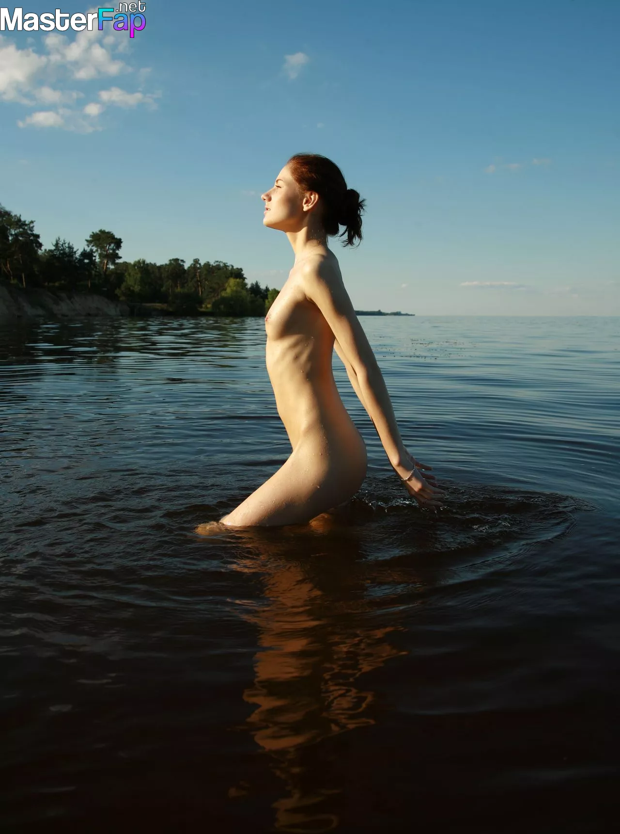 Model Katya AB is gettin’ nude on the riverbank, showin’ off her skinny frame in nature.This young red-haired girl, Katya AB, is once again hypin’ up her fappers with some NSFW pics. This time, the shoot went down on the riverbank and took all day. Some snaps were taken at dawn, others during the day, and the rest at sunset. This slender model looks hella sexy and natural, comin’ outta the water butt naked in front of the camera.