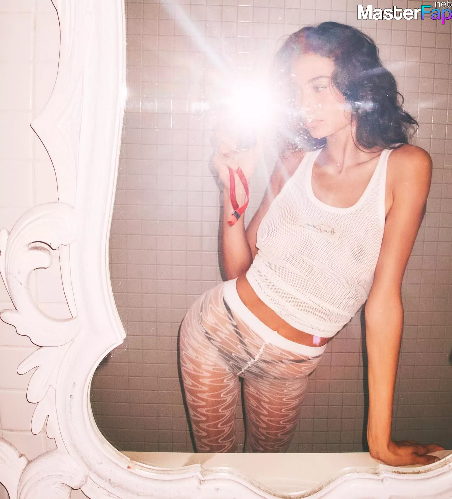 During her most recent social media shoot, Kelly Gale has released several pictures in which she is wearing no bra at all.
