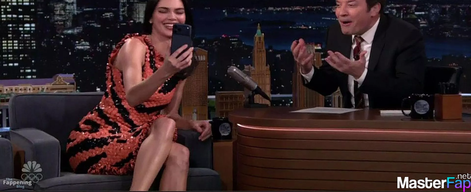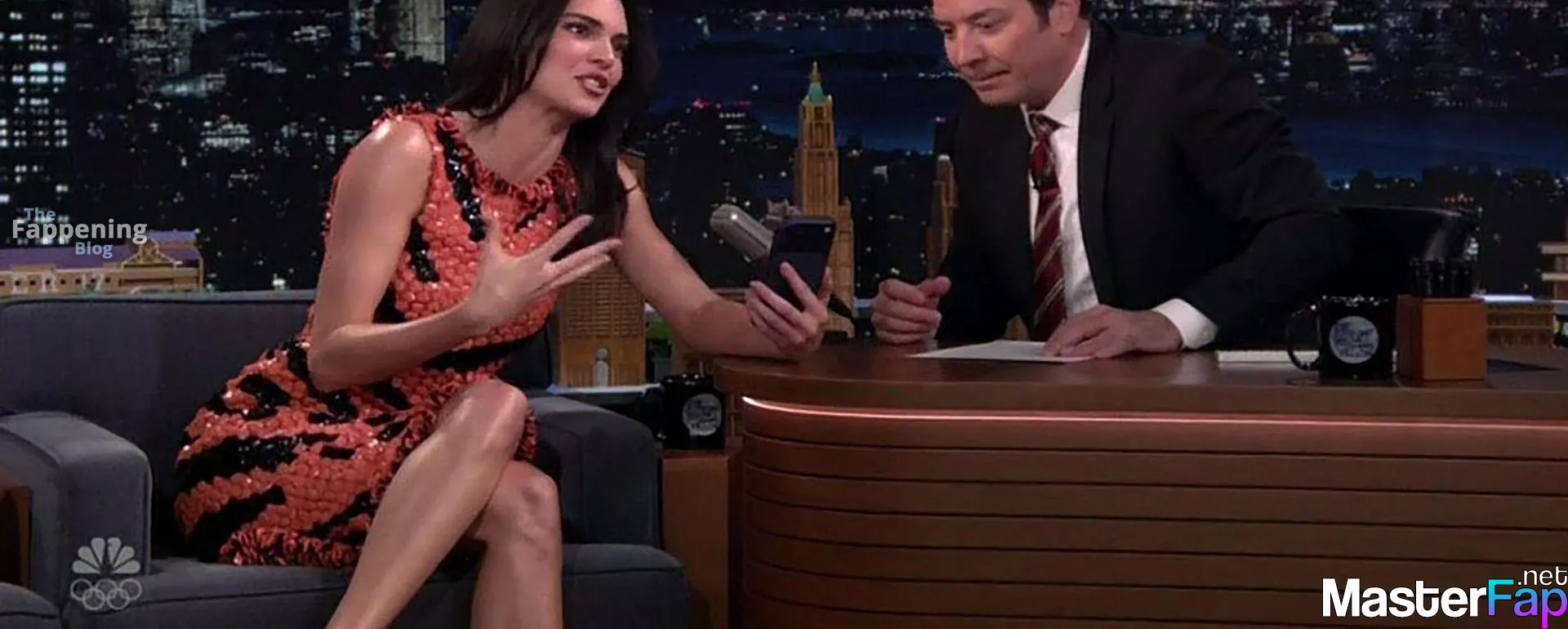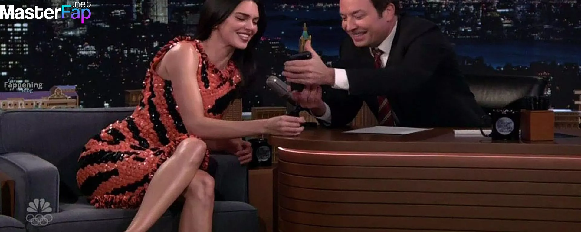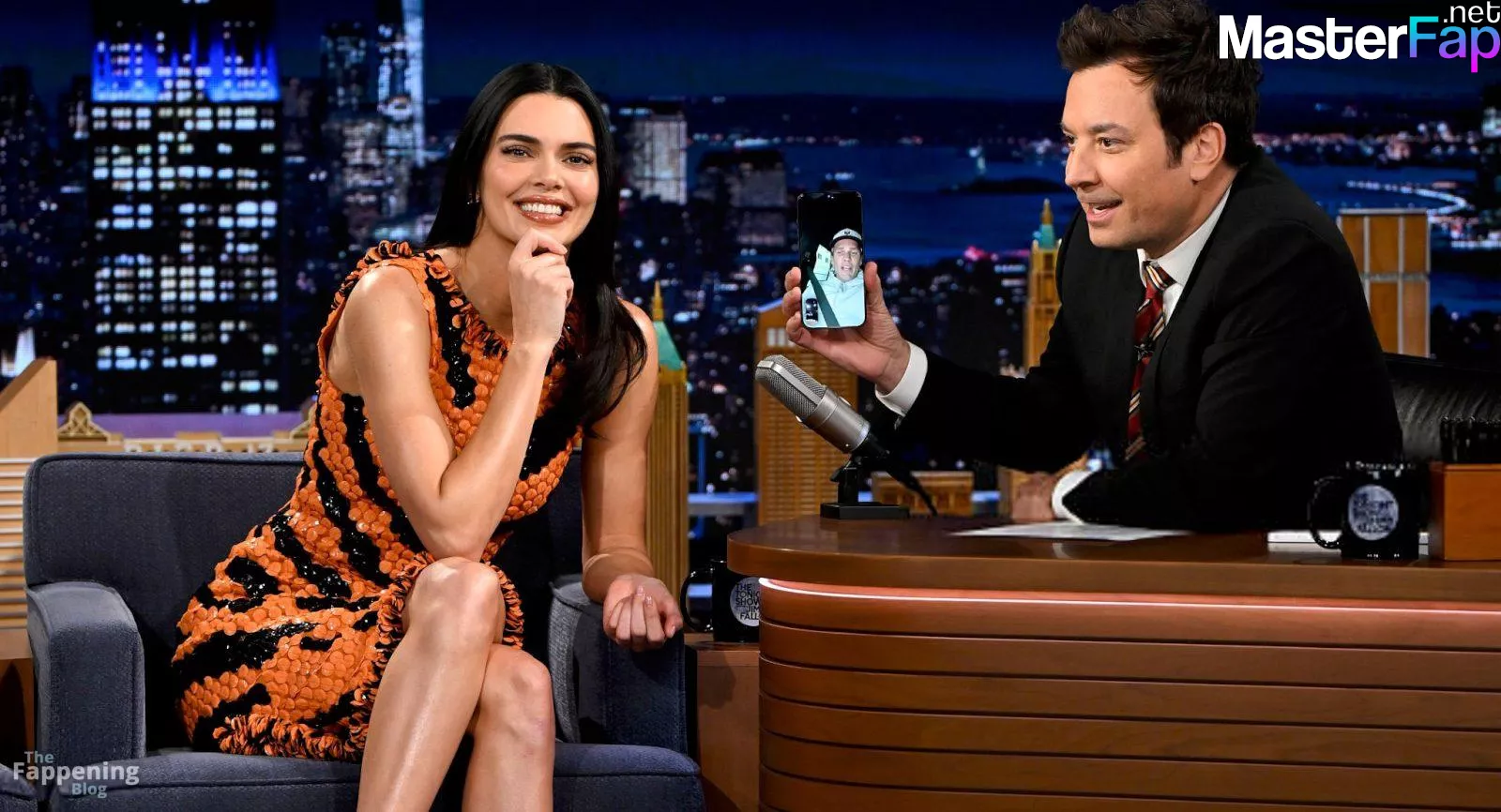 Kendall Jenner is seen in Midtownin New York City. Check out her skin-tight tiger-stripe Chanel dress on Fallon.