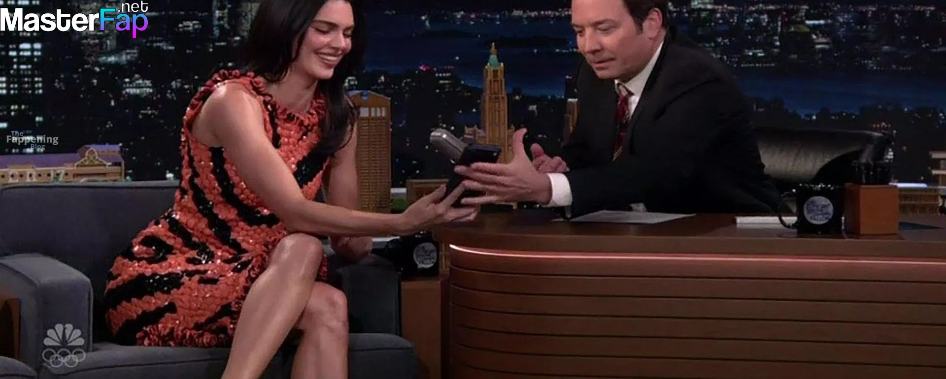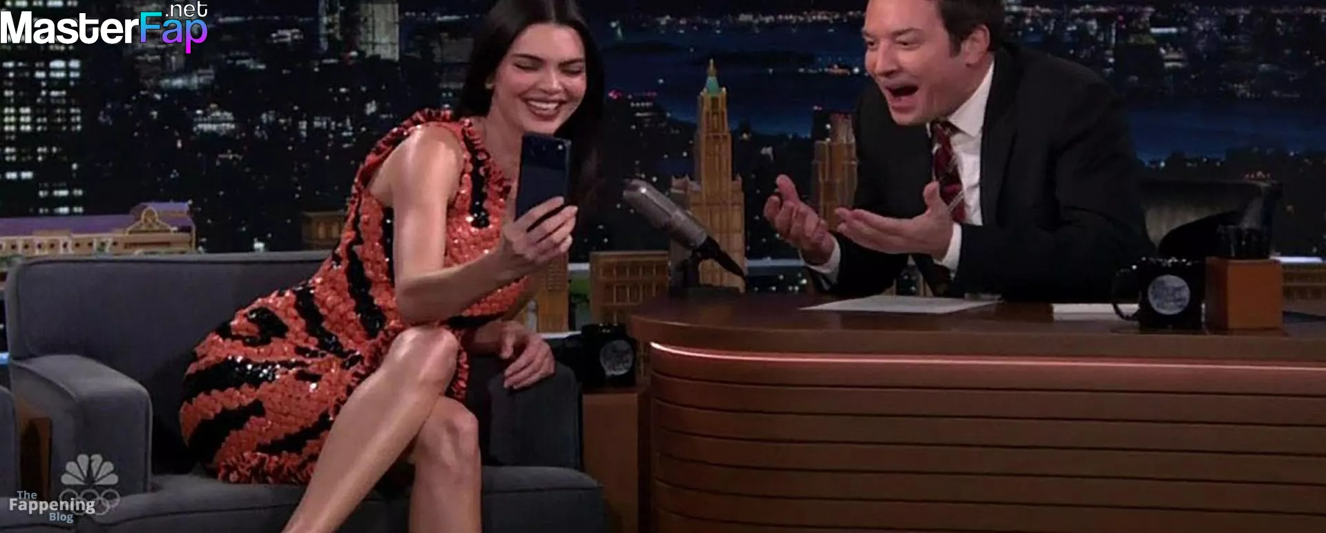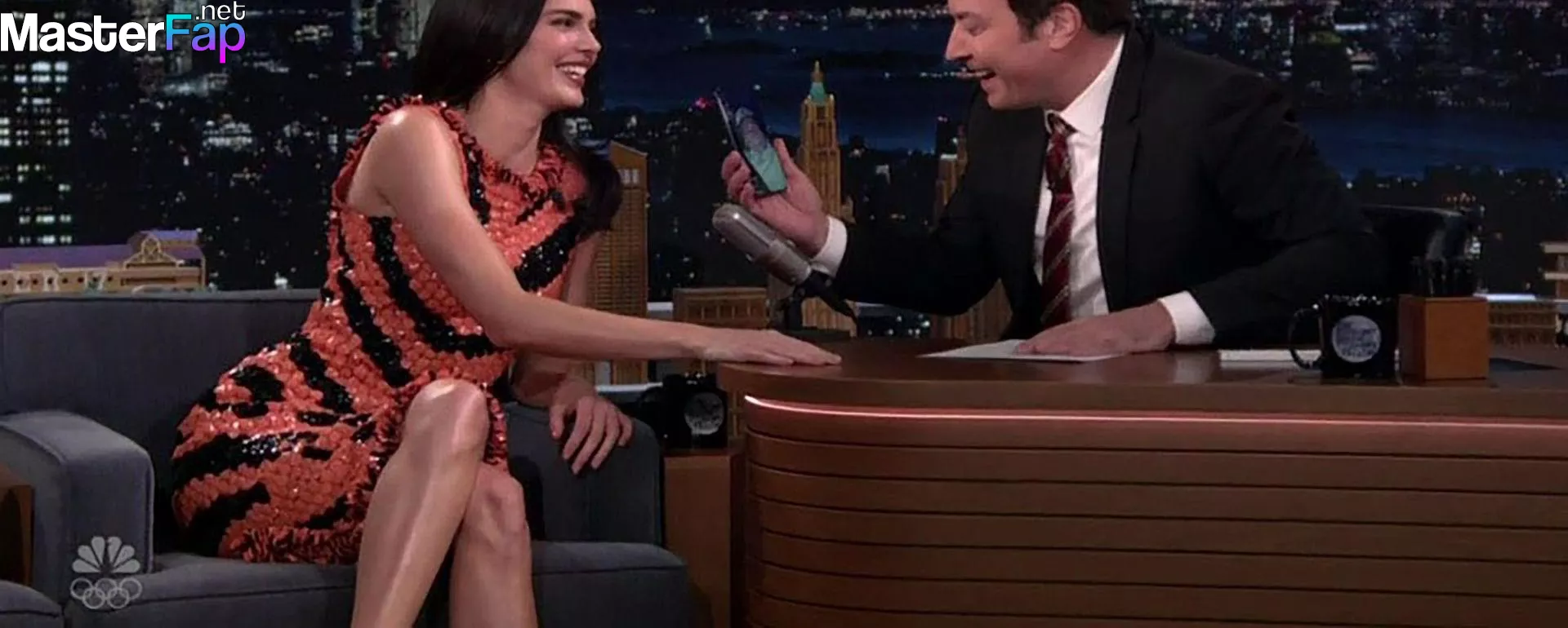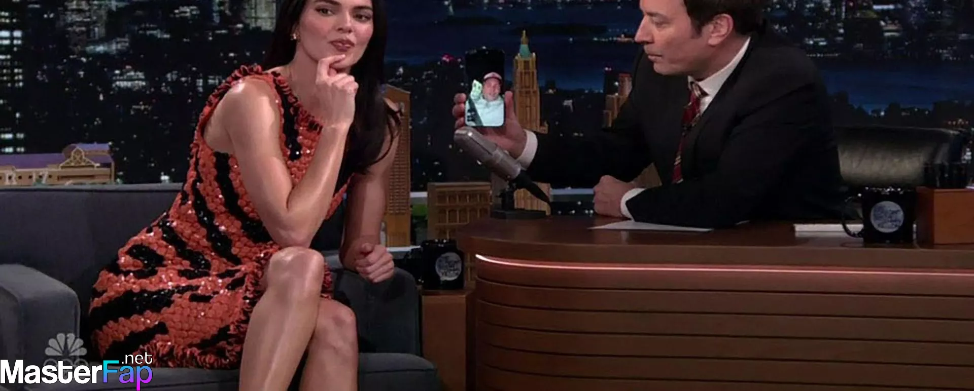 Kendall Jenner is seen in Midtownin New York City. Check out her skin-tight tiger-stripe Chanel dress on Fallon.