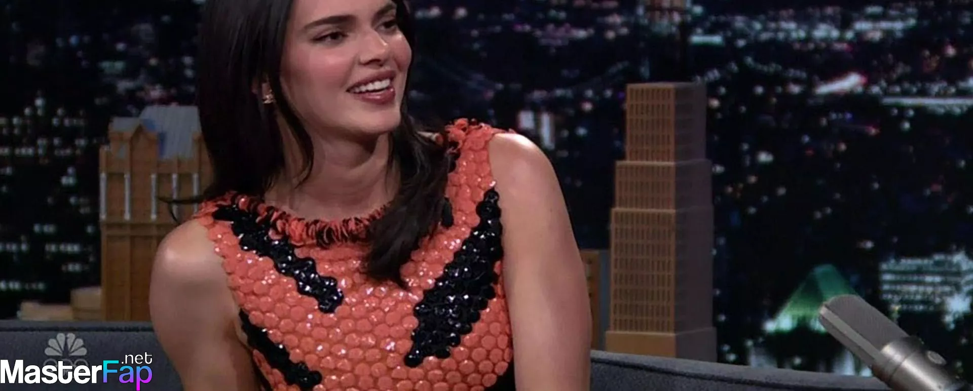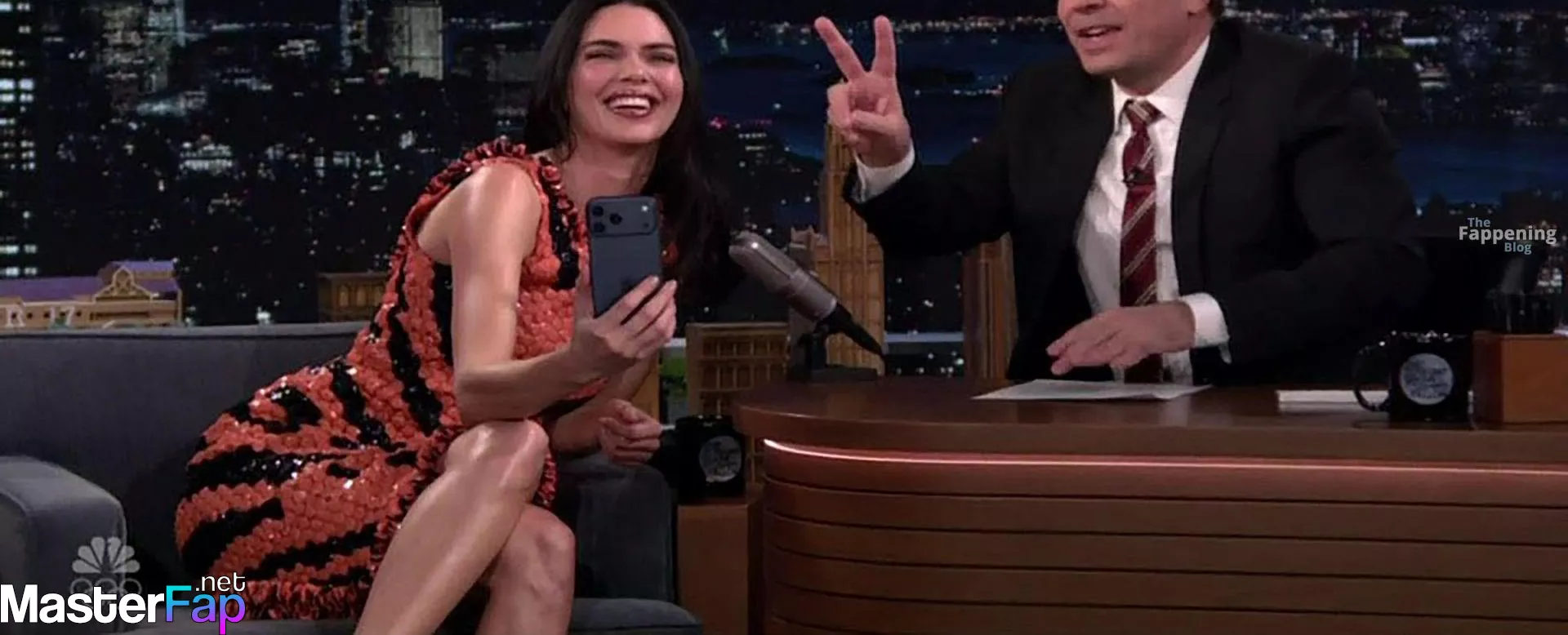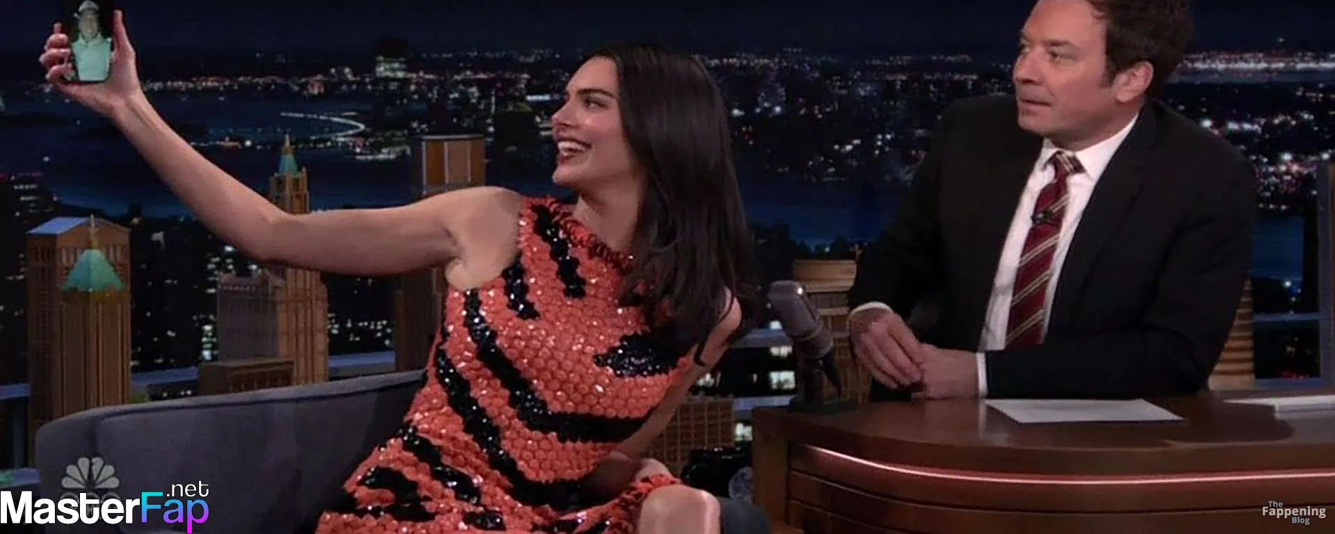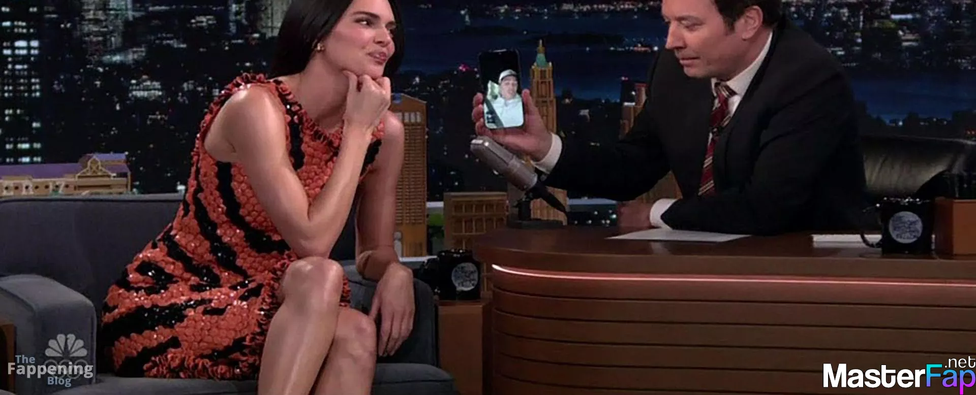 Kendall Jenner is seen in Midtownin New York City. Check out her skin-tight tiger-stripe Chanel dress on Fallon.