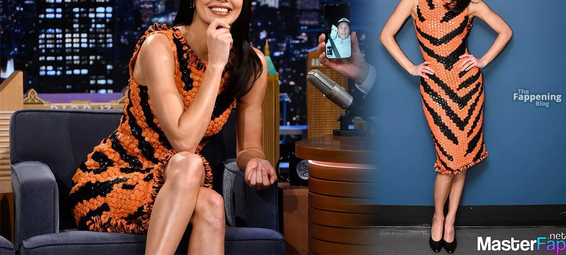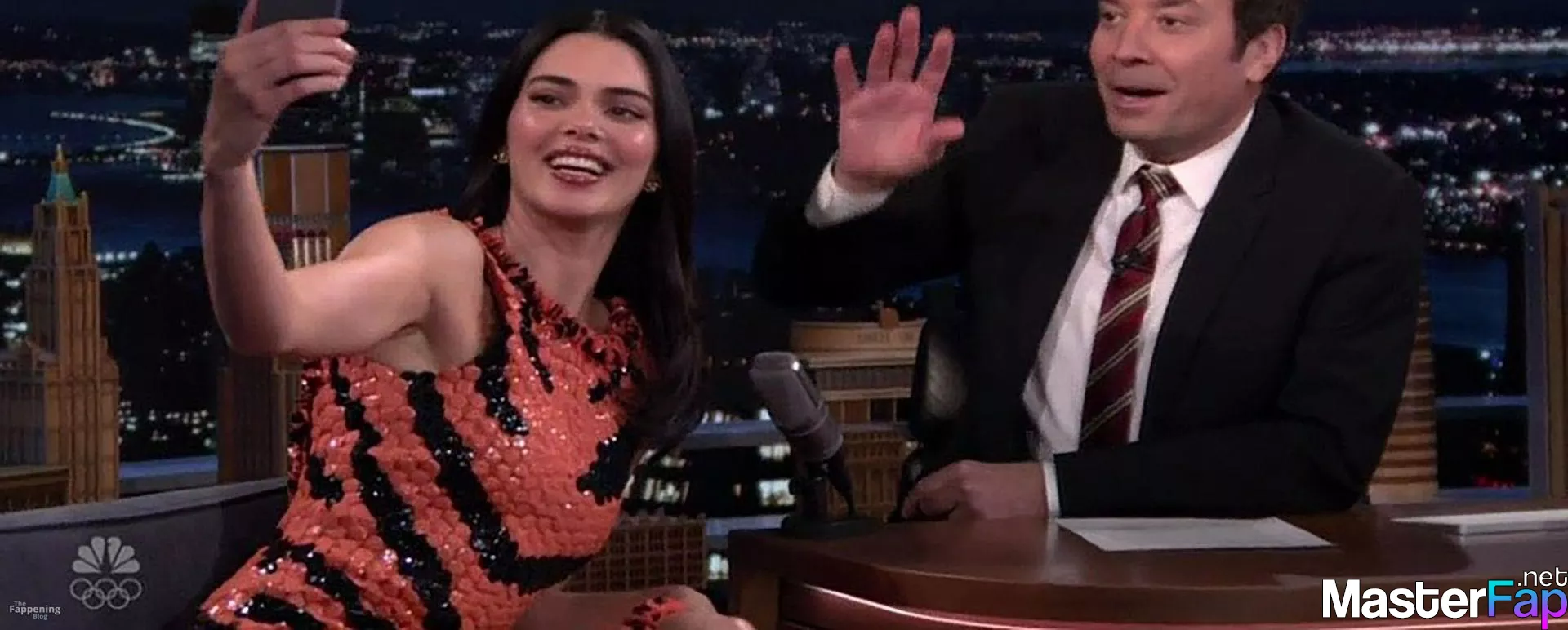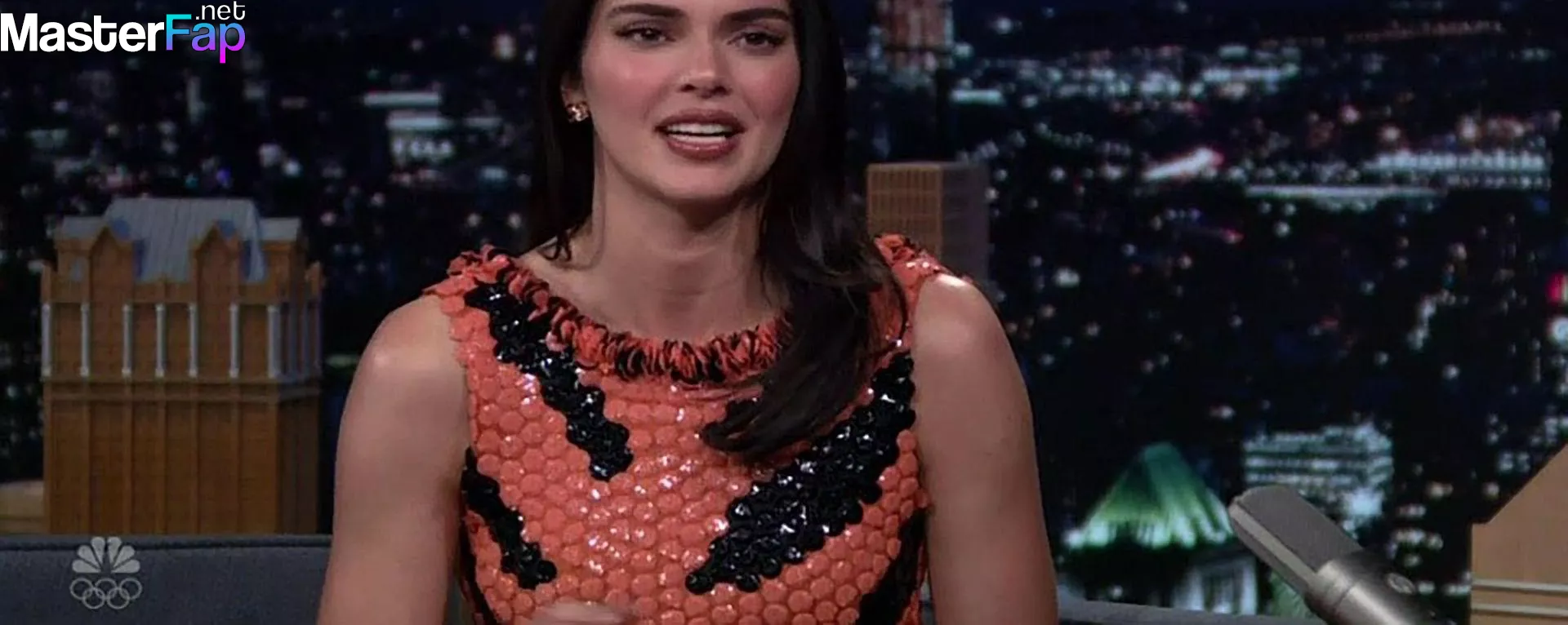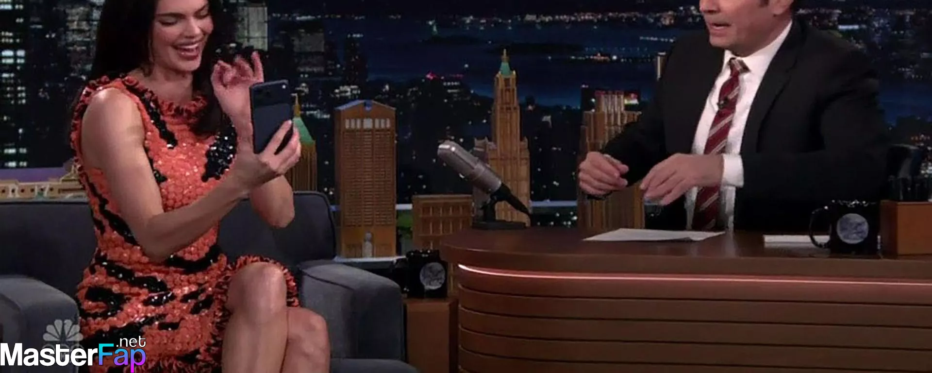 Kendall Jenner is seen in Midtownin New York City. Check out her skin-tight tiger-stripe Chanel dress on Fallon.
