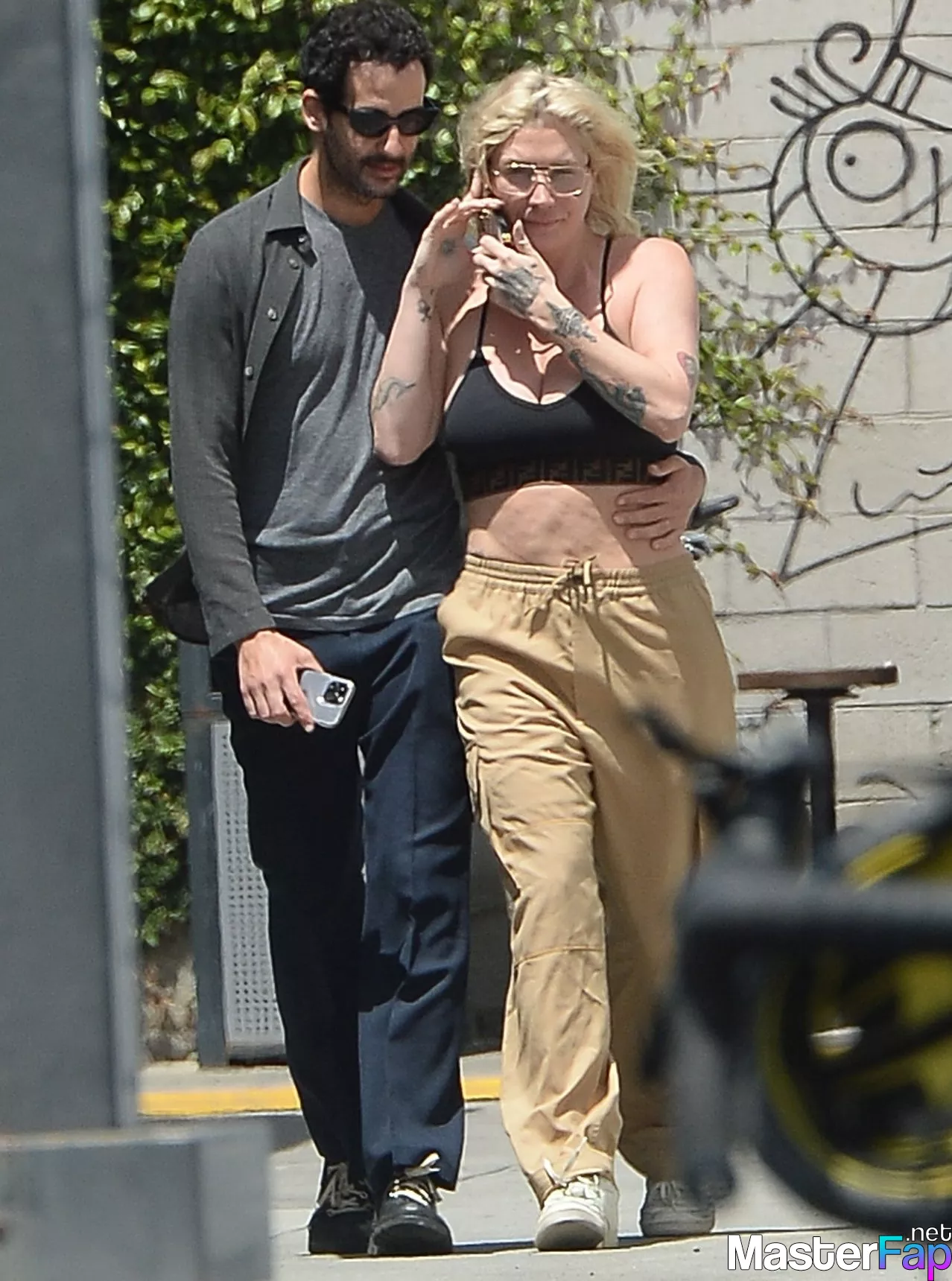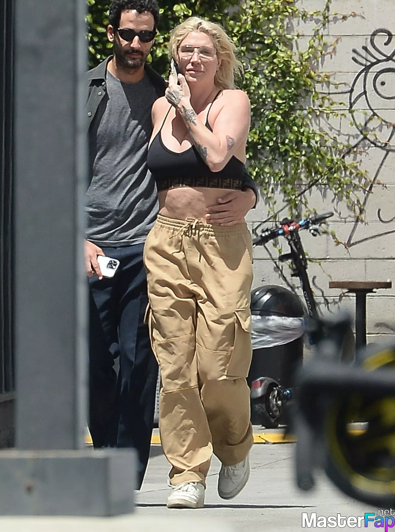 In Los Angeles on May 8, 2023, Kesha and Riccardo Maddalosso lean in for a passionate kiss. Before going to Erewhon Market to grab a smoothie, the American singer and songwriter, who is 36 years old and was wearing a black crop top and tan pants, took a break from a phone conversation to get close to her lover. She was dressed in a tan crop top and black trousers.