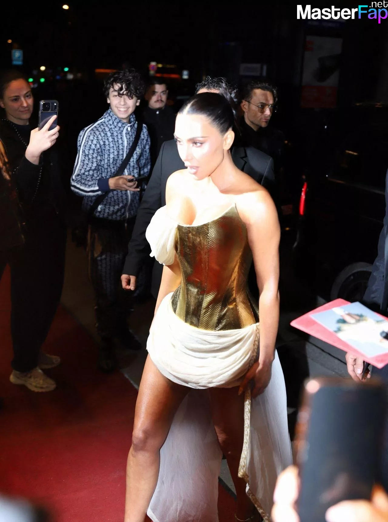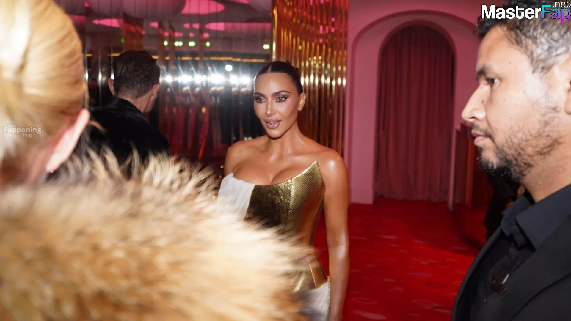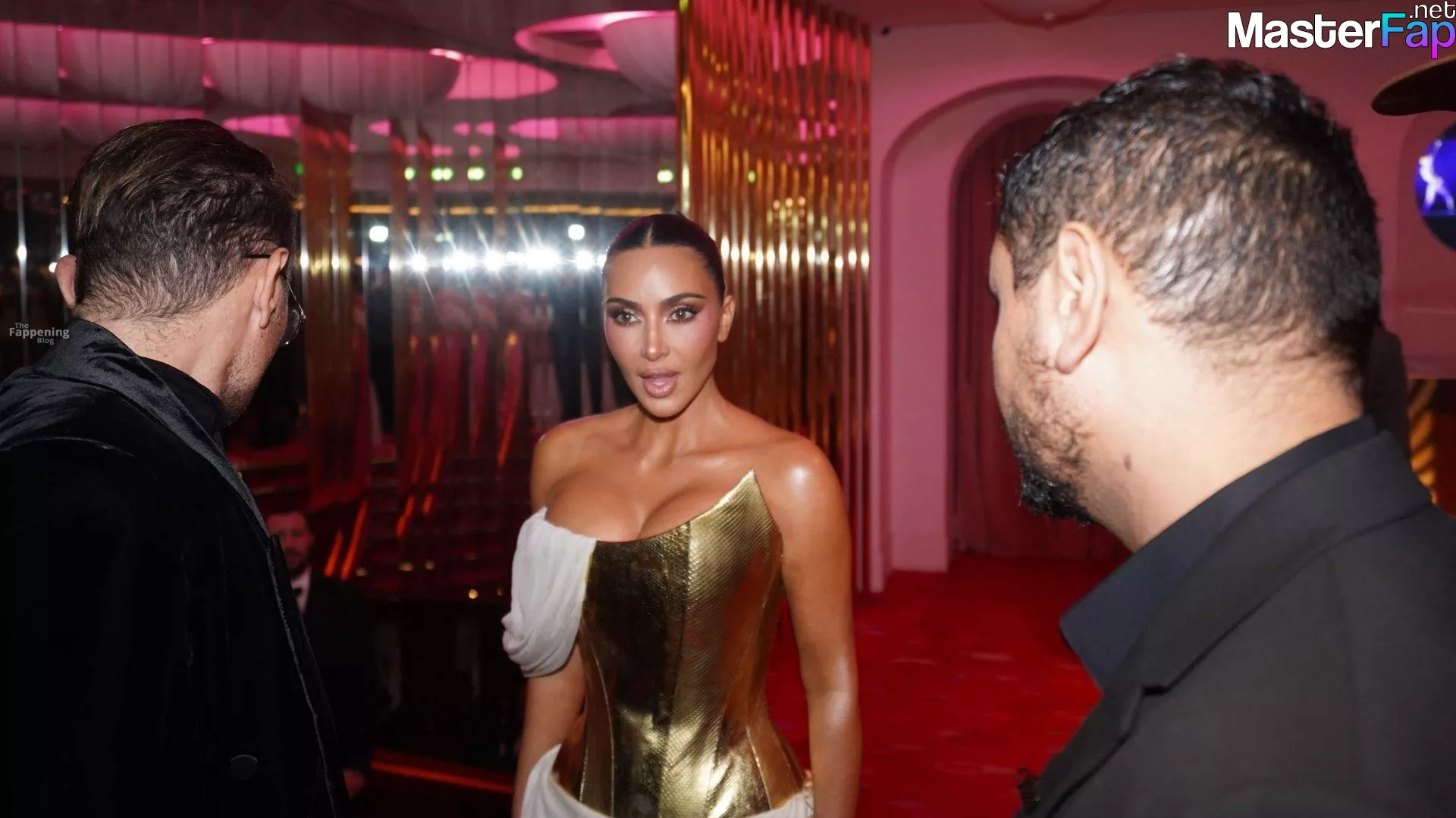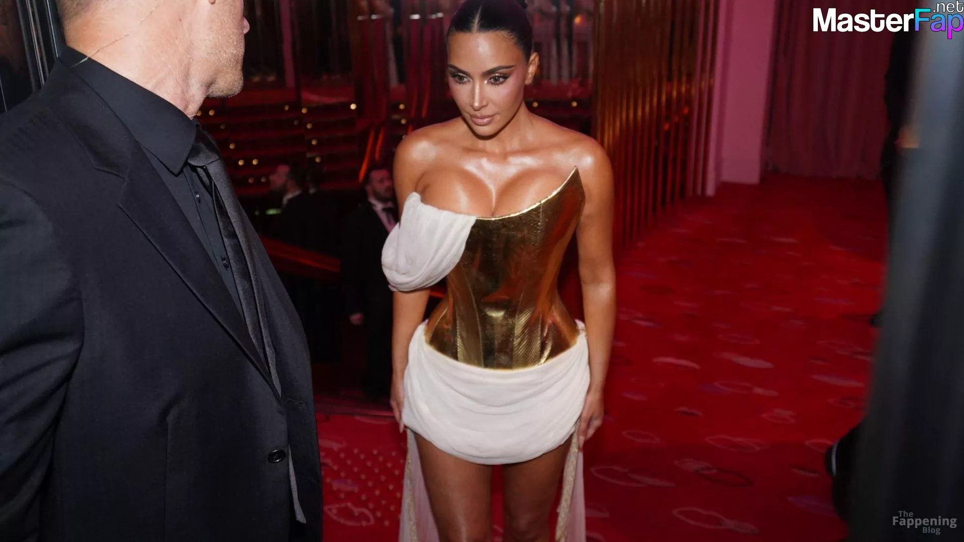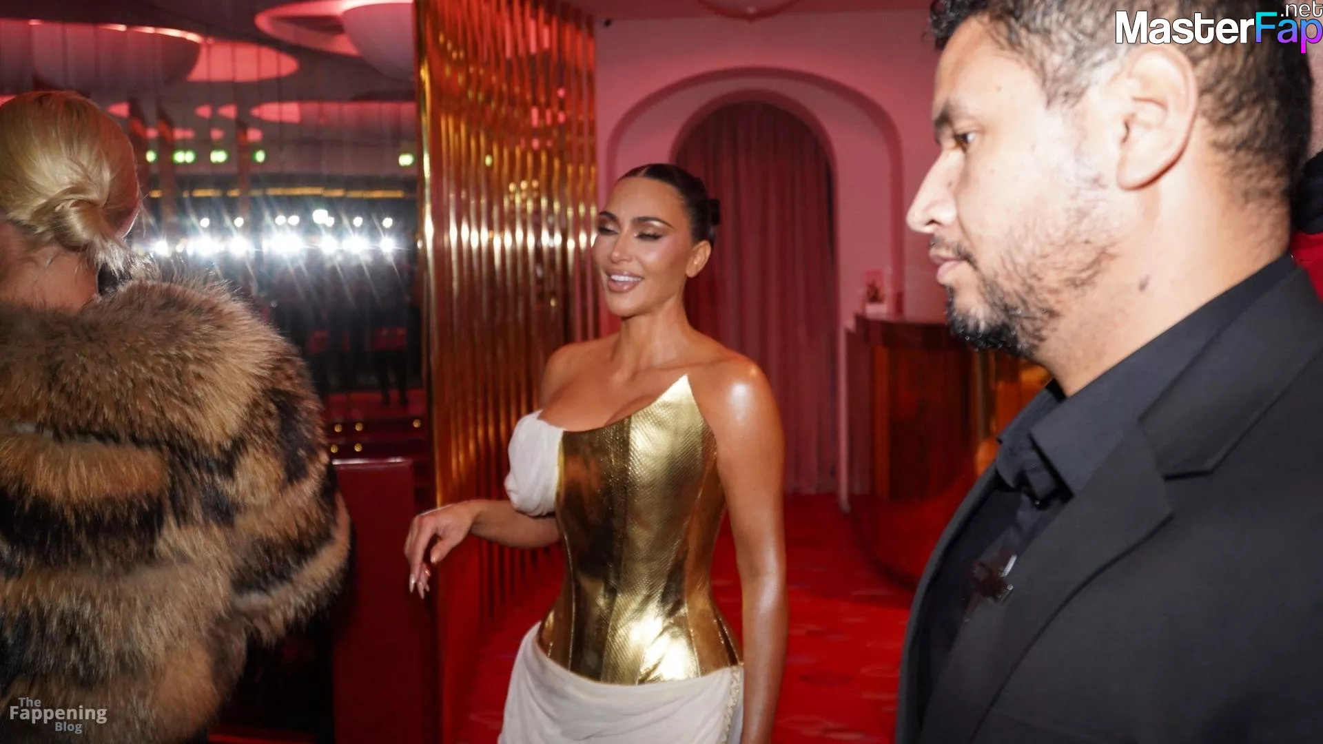 Kim Kardashian rocked up to Crazy Horse in Paris for her 45th birthday bash after the premiere of her Disney+ series All’s Fair. She slipped into a gold corset dress that had her massive boobs spillin’ out with insane cleavage, paired with a high-slit skirt that flashed her body and legs.