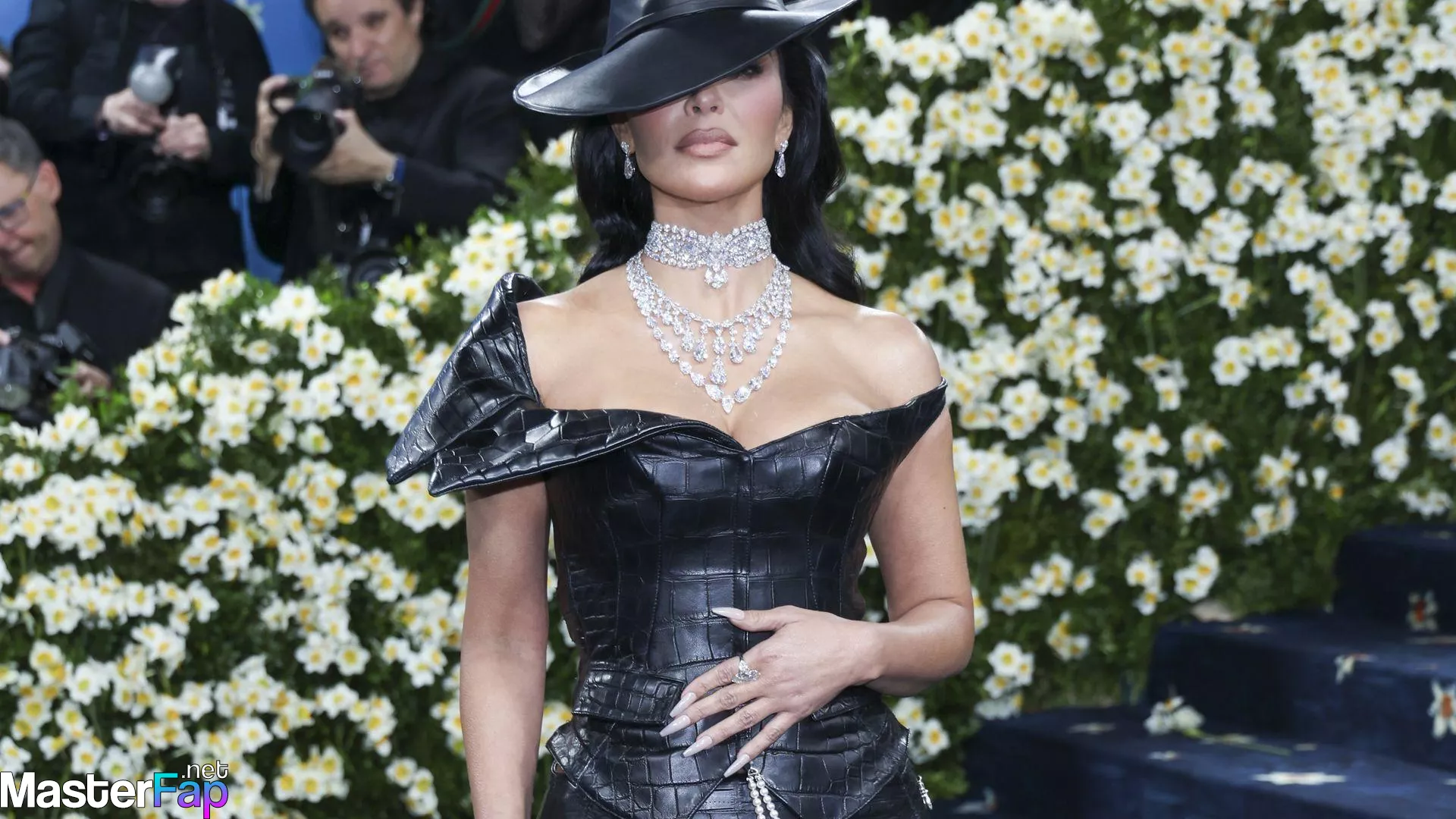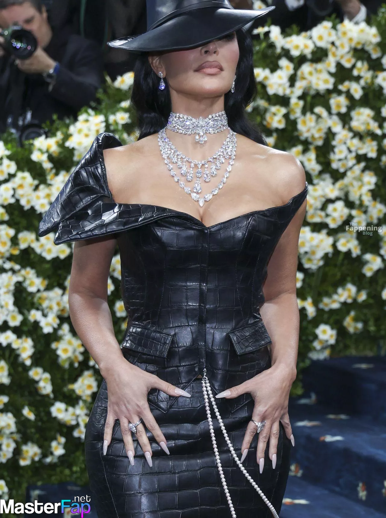 Kim Kardashian was at the 2025 Met Gala, rockin’ a skintight black leather gown that showed off her deep cleavage and juicy ass.