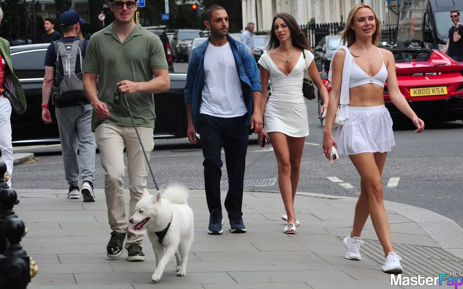 Designer Kimberley Garner is seen, rockin’ a sick summery white fit while chillin’ with her squad in Belgravia, Chelsea.