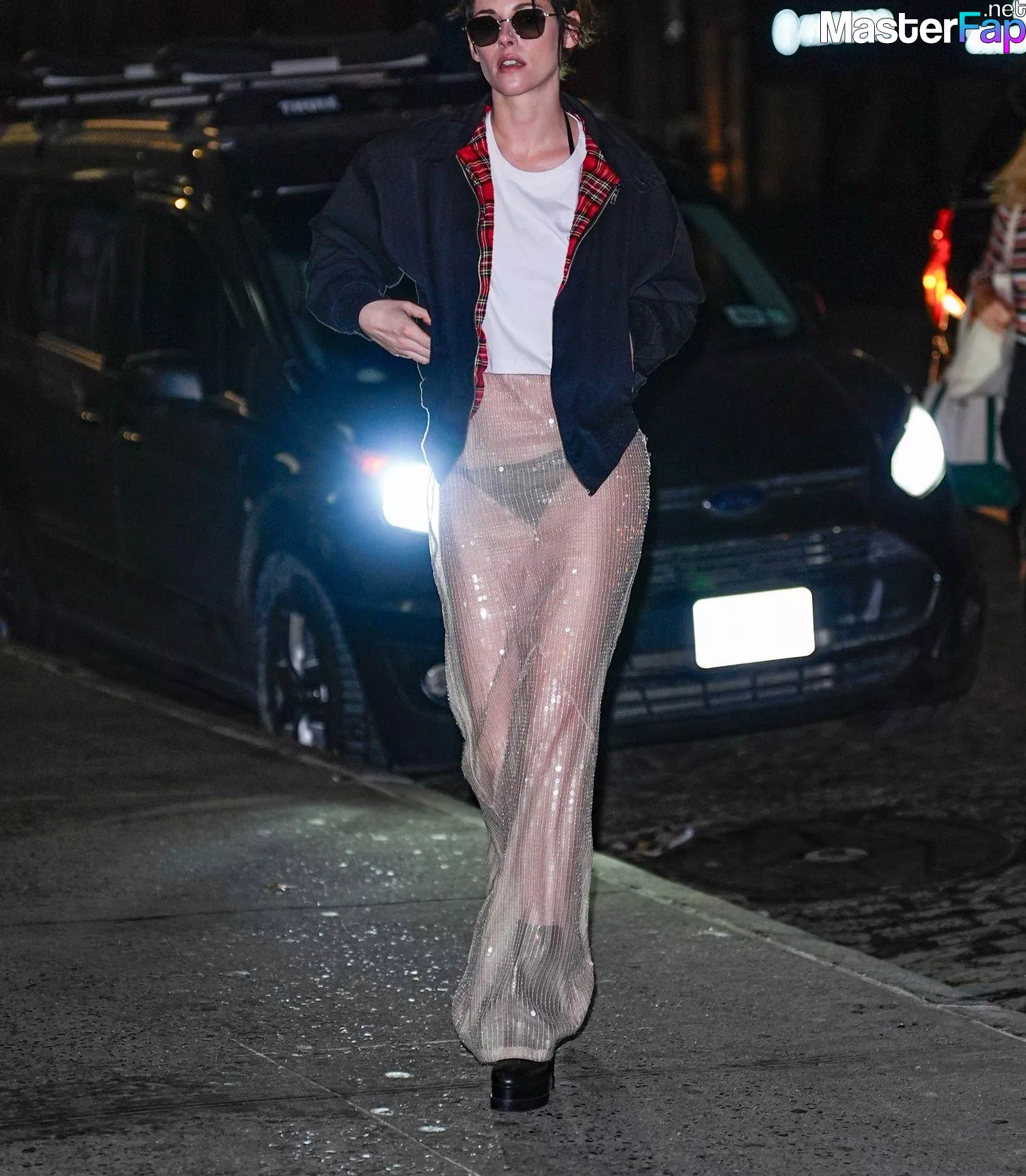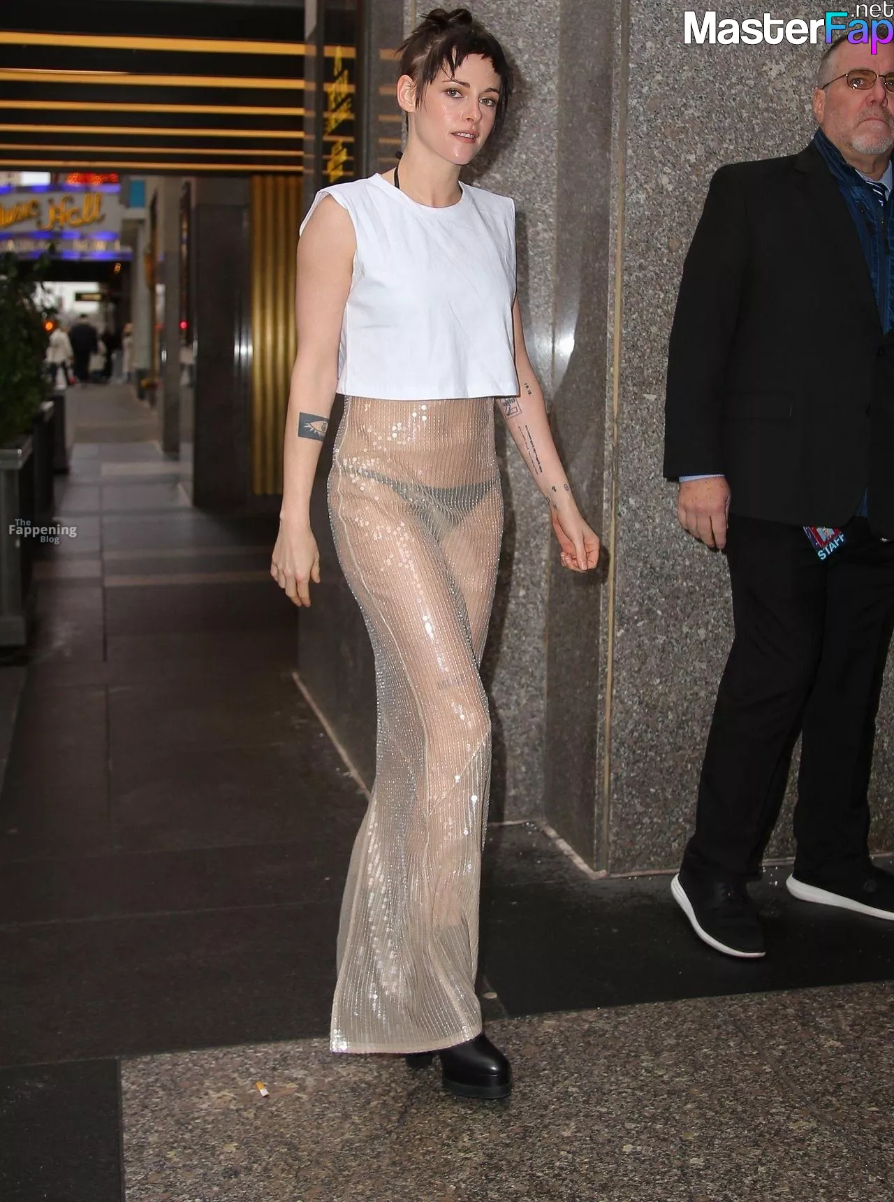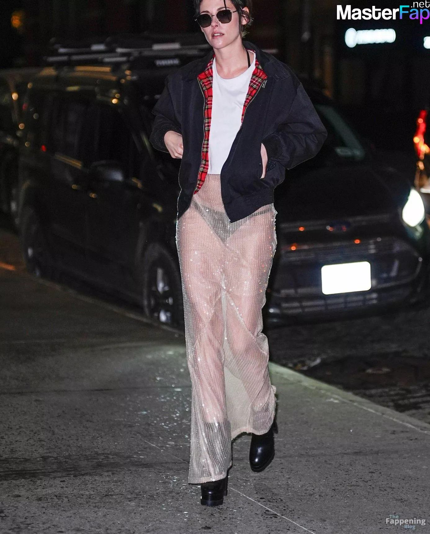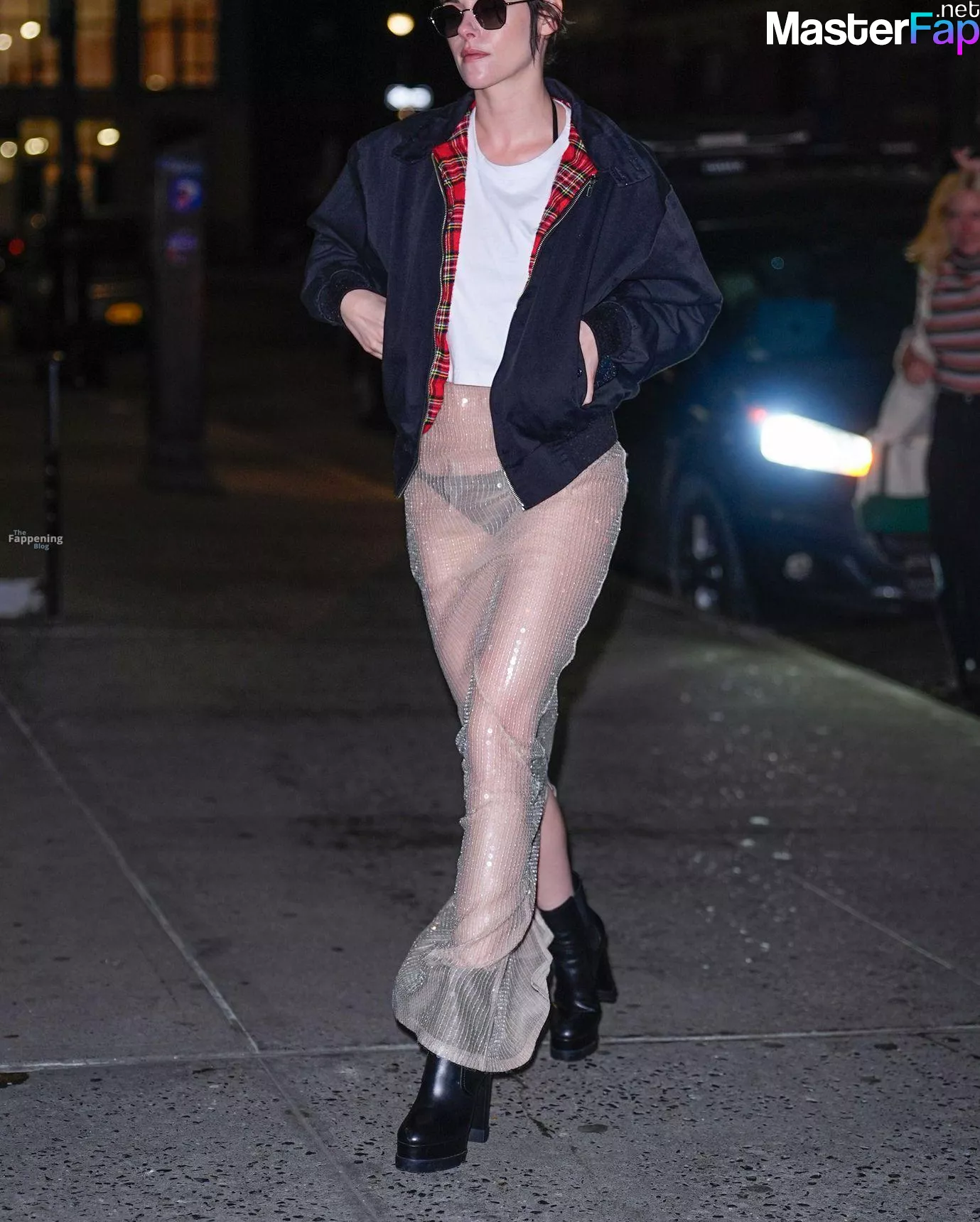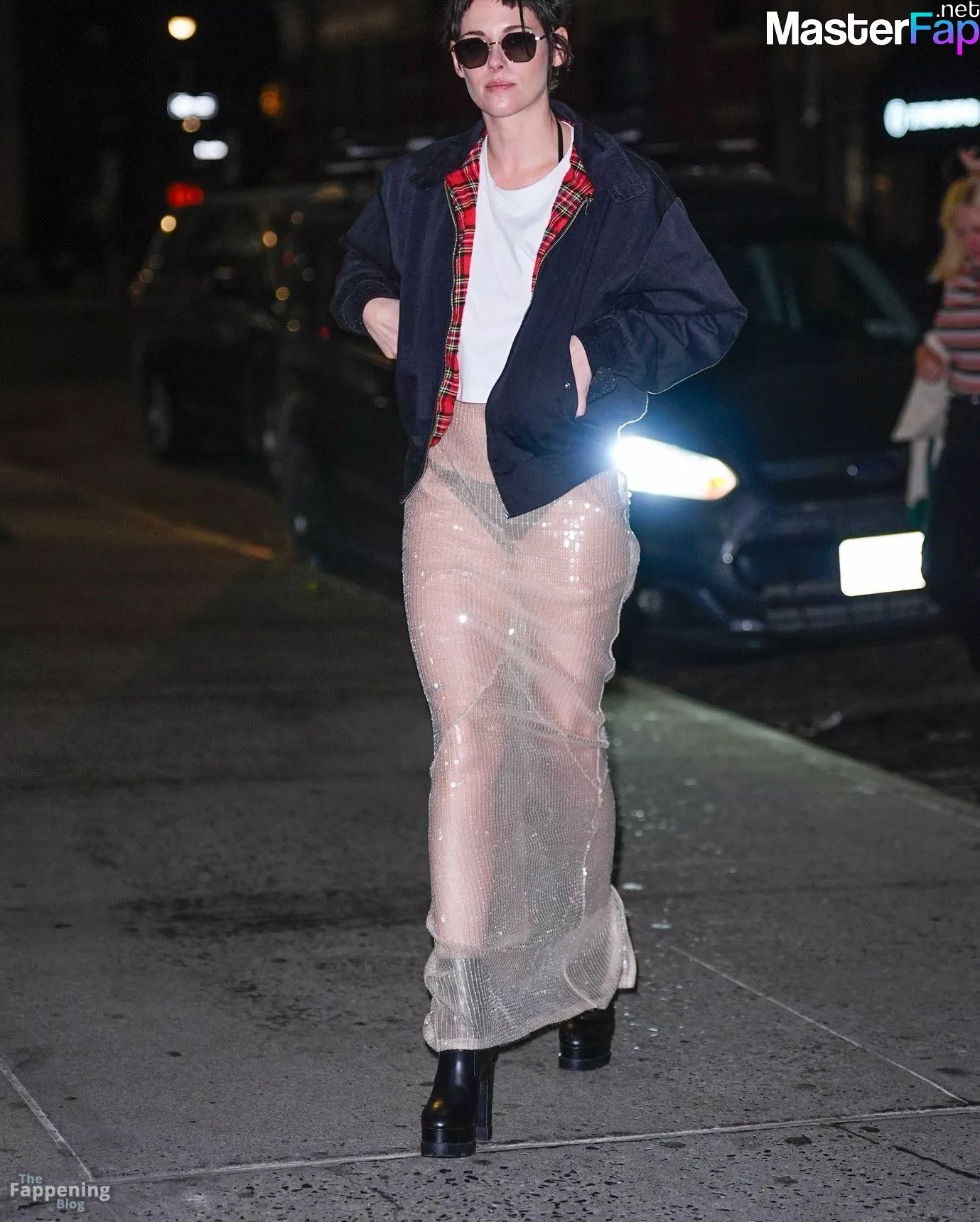 The Fappening Star Kristen Stewart steps out in a revealing outfit in New York City. The American actress wore a black jacket, white crop top, sheer skirt, and black platform heels.