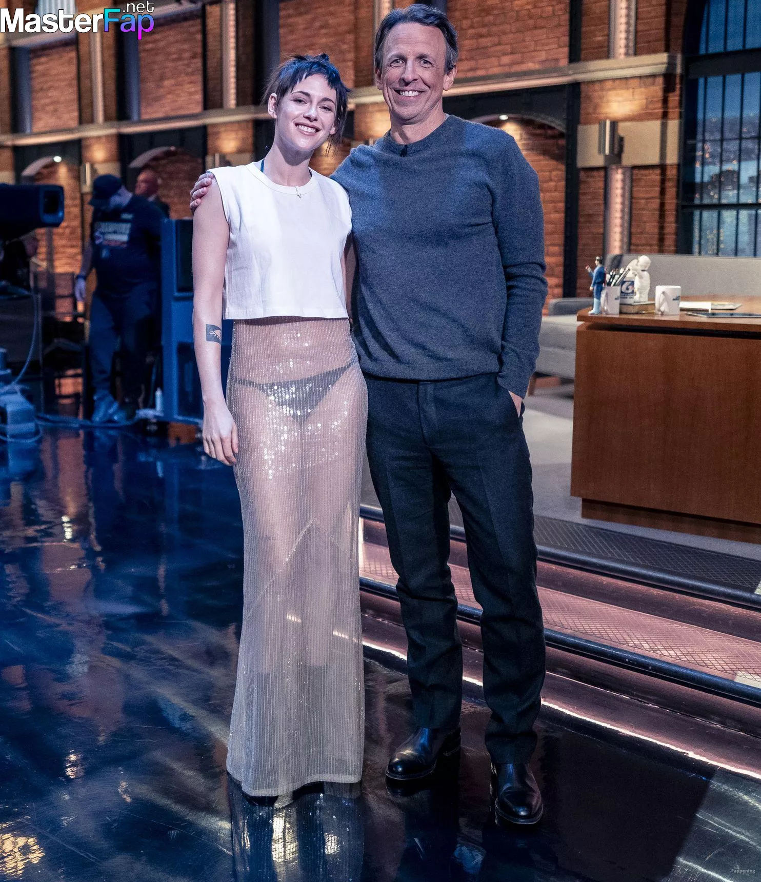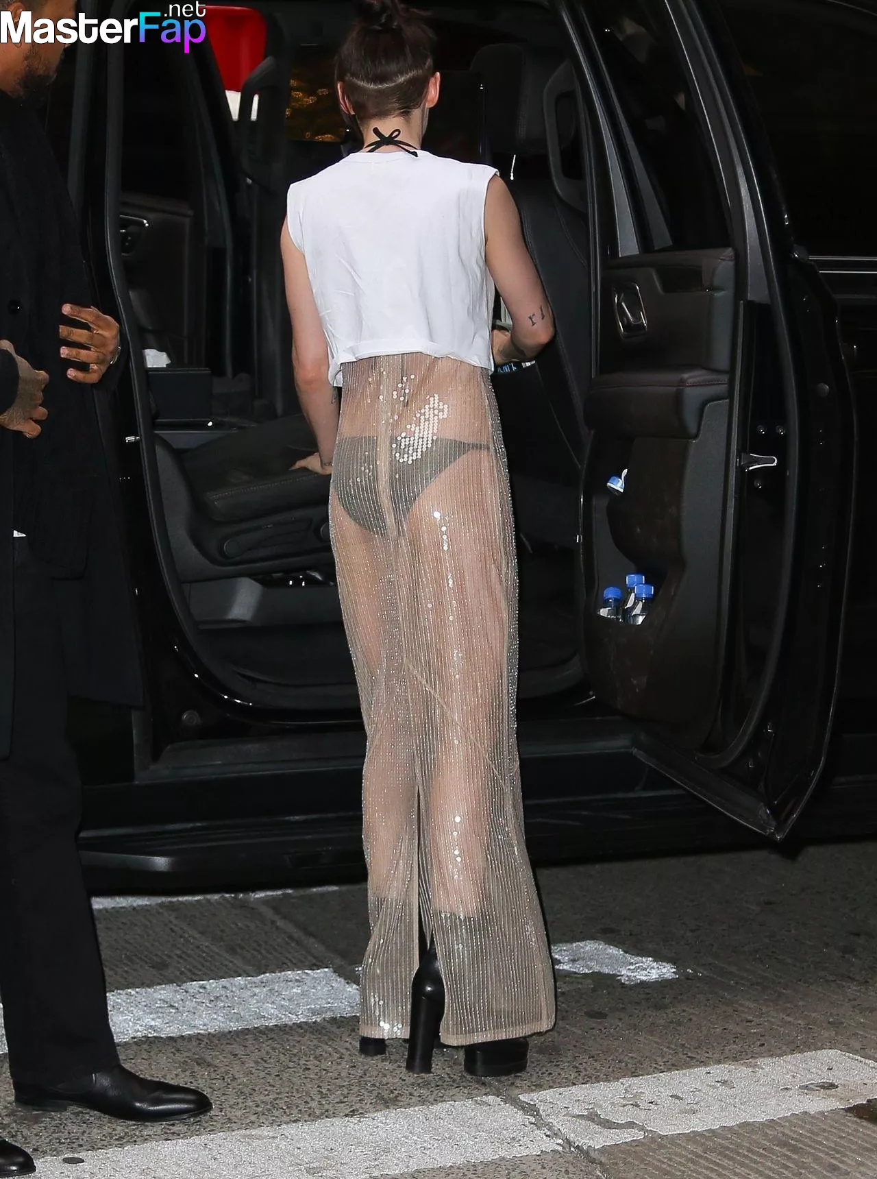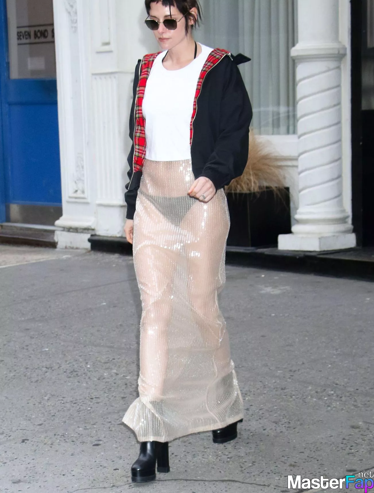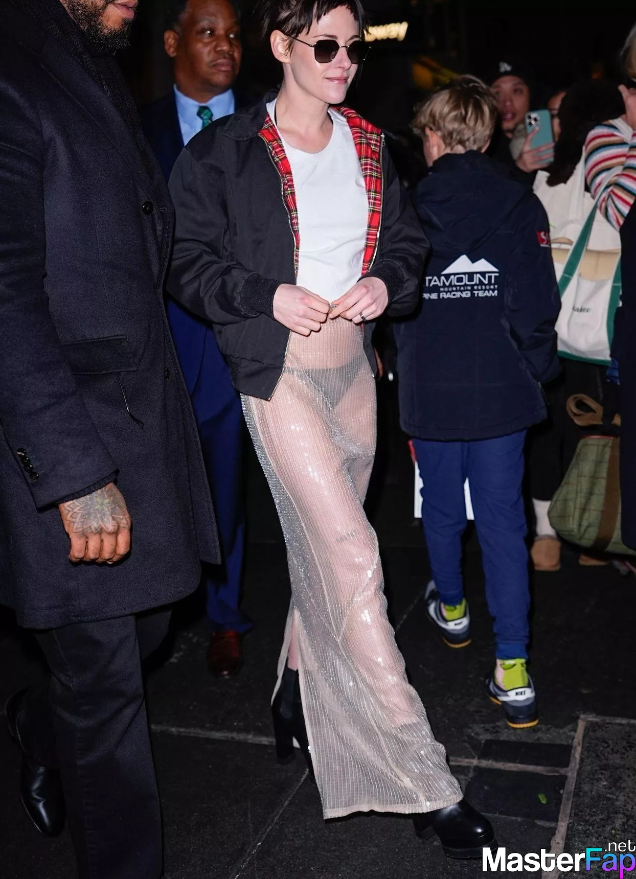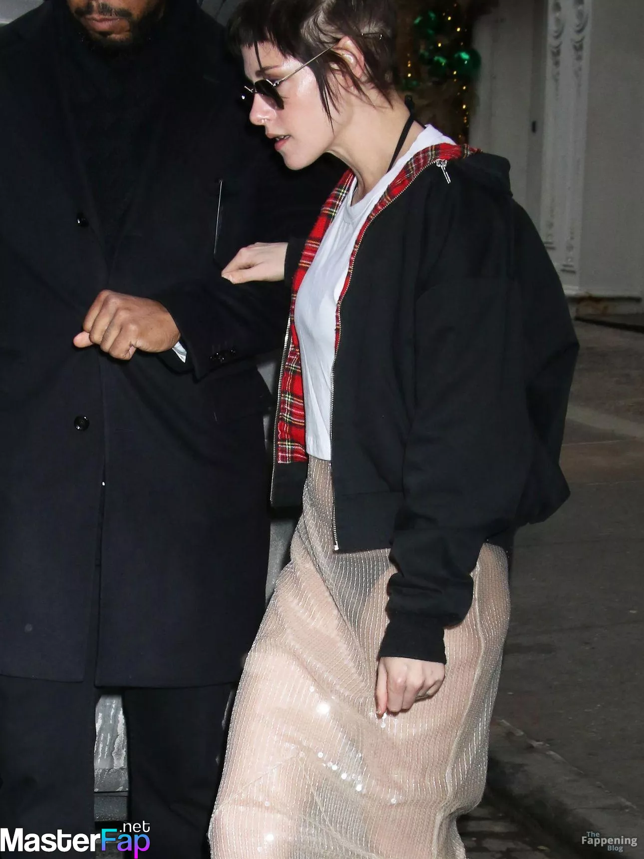 The Fappening Star Kristen Stewart steps out in a revealing outfit in New York City. The American actress wore a black jacket, white crop top, sheer skirt, and black platform heels.