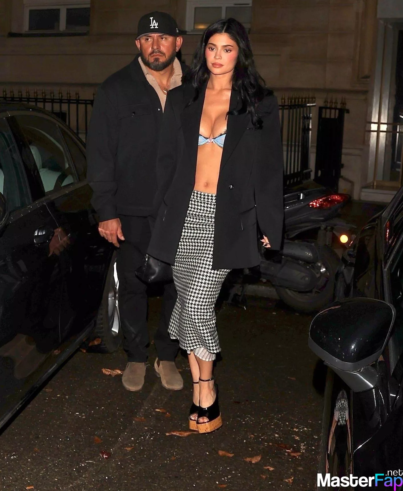 Kylie Jenner rocked a blue lace bra under a blazer in Paris, flashin’ major cleavage as she left Le Bristol Hotel in a bold outfit.
