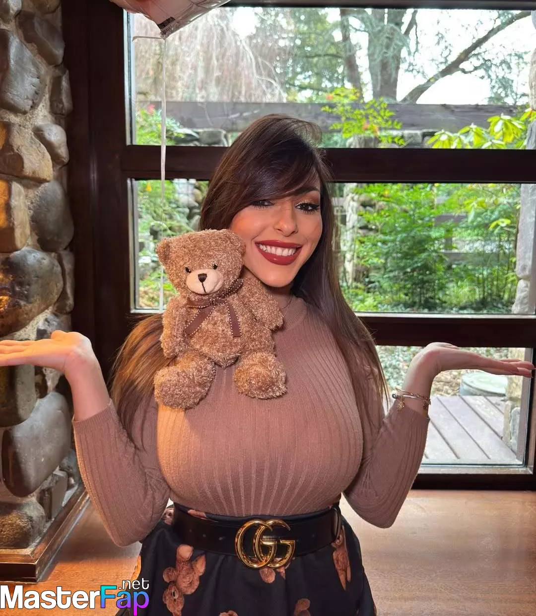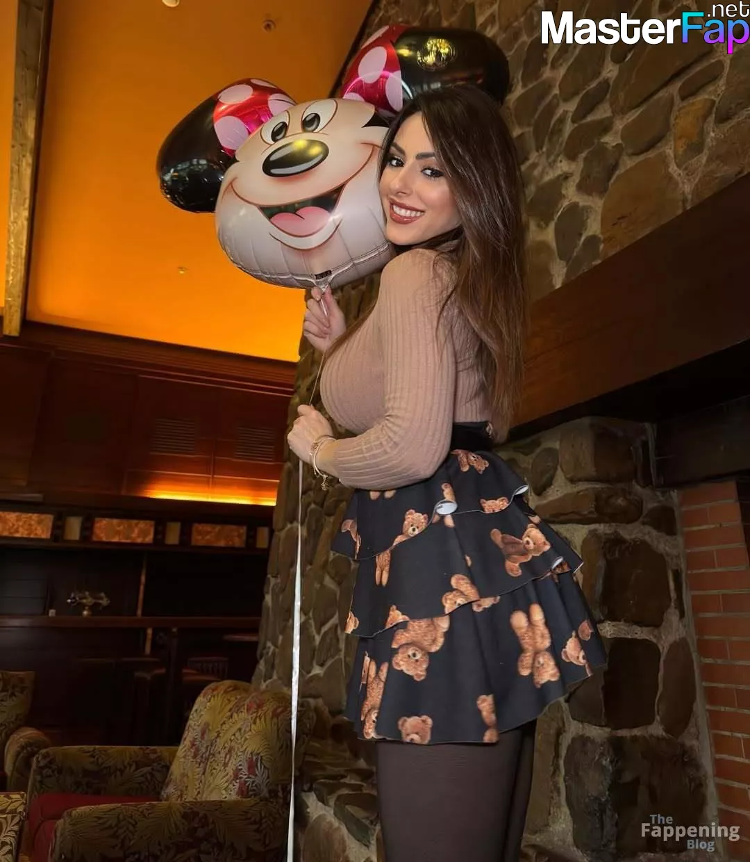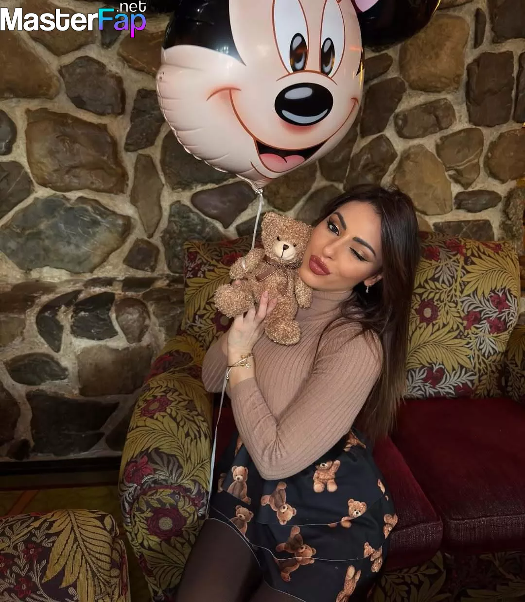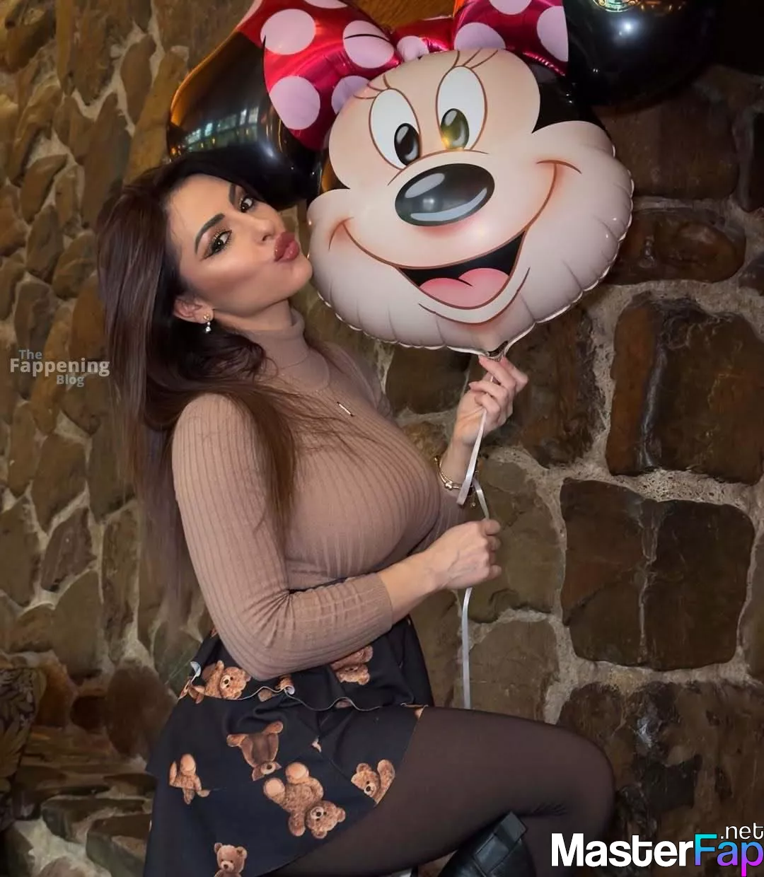 Brunette bombshell Maddalena Cabizzosu shows off her big breasts, wearin’ a tight turtleneck and teddy bear skirt.
