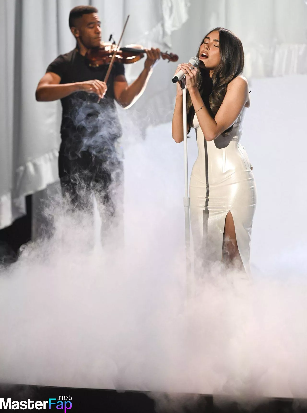 Check out Madison Beer’s hottest look as she poses in a white corset dress on The Tonight Show Starring Jimmy Fallon.