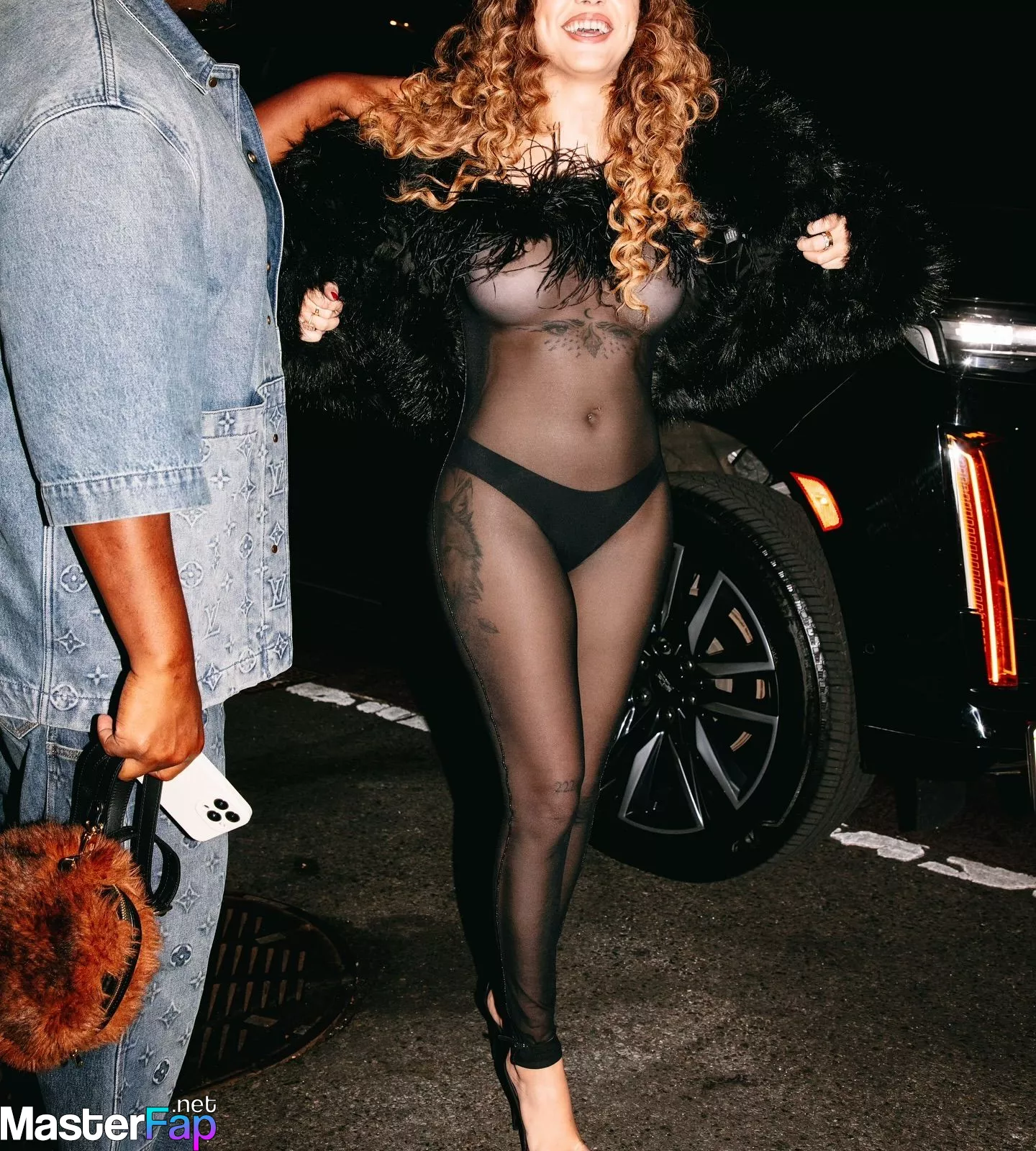 Social media star Malu Trevejo is flaunting her big nude boobs in a see-through bodysuit in New York.