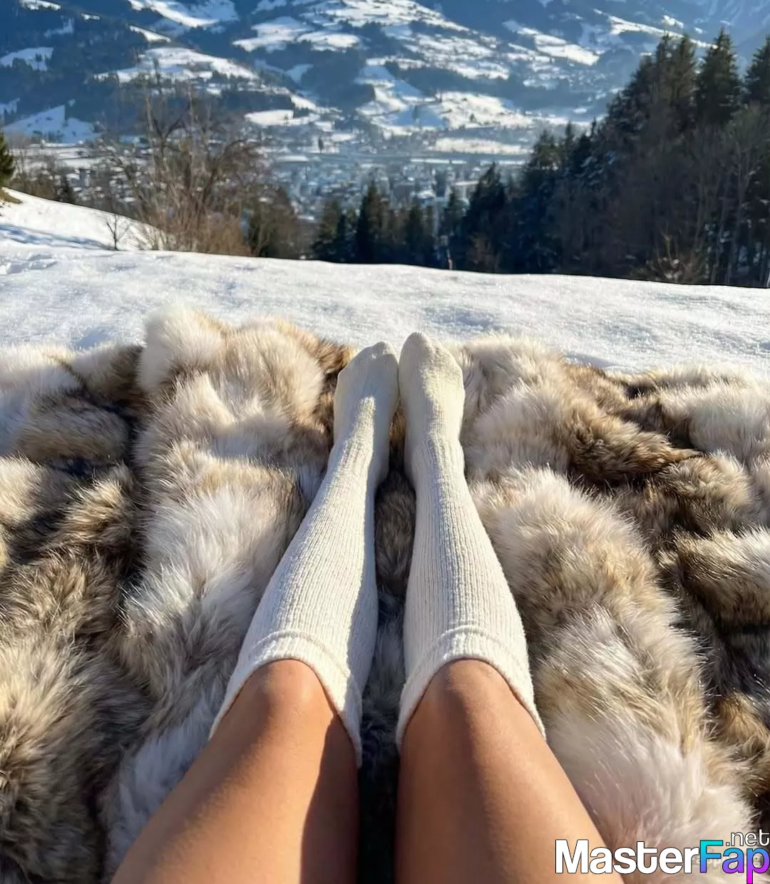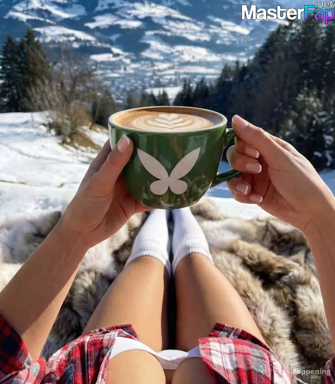 Russian model Nata Lee poses in a white bra and flannel in the snow. Check out her alpine photoshoot.