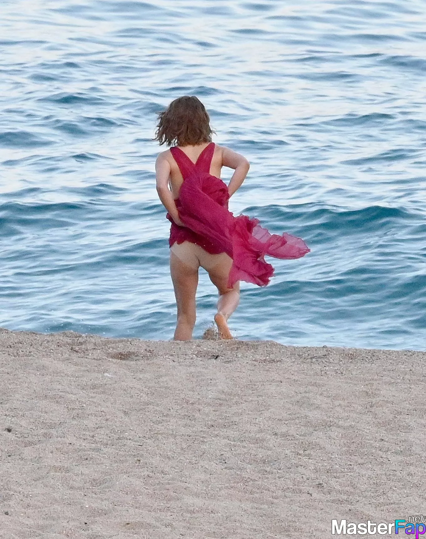 Despite the difficulties she is having with her marriage, Natalie Portman seems like she is having the time of her life as she poses in a flowing red dress for a romantic beach shoot for Dior in Spain.