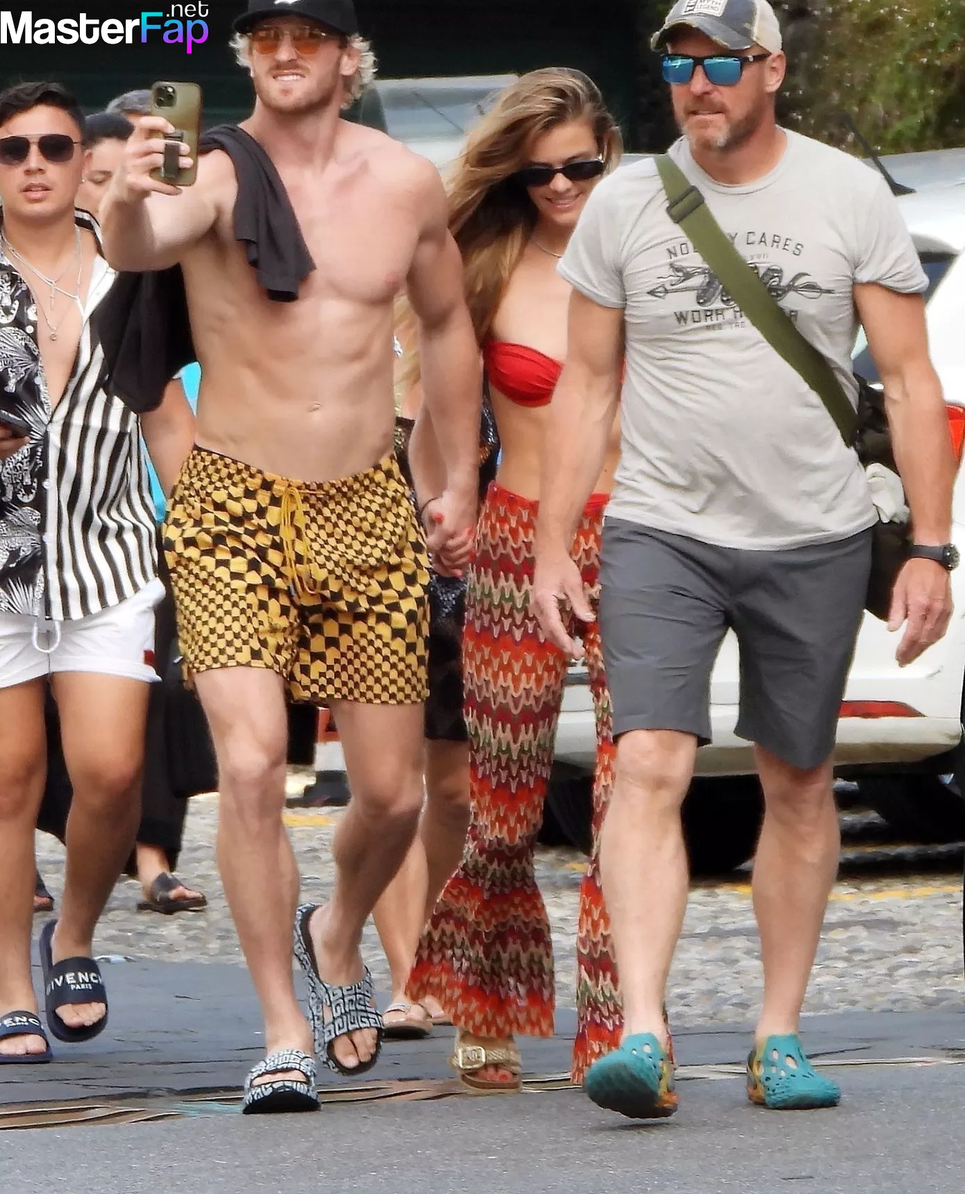 We captured Logan Paul, an American social media celebrity, actor, and professional wrestler, living it up on his yacht in Portofino, Italy, with the Danish stunner Nina Agdal. They were having a great time under the Italian sun. During their holiday together, these couple could not keep their hands off of each other. They are clearly head over heels in love. Logan, who was showing off his shirtless physique and stylin' jazzy shorts, had some assistance from his girlfriend Nina as she applied suncream to her face.