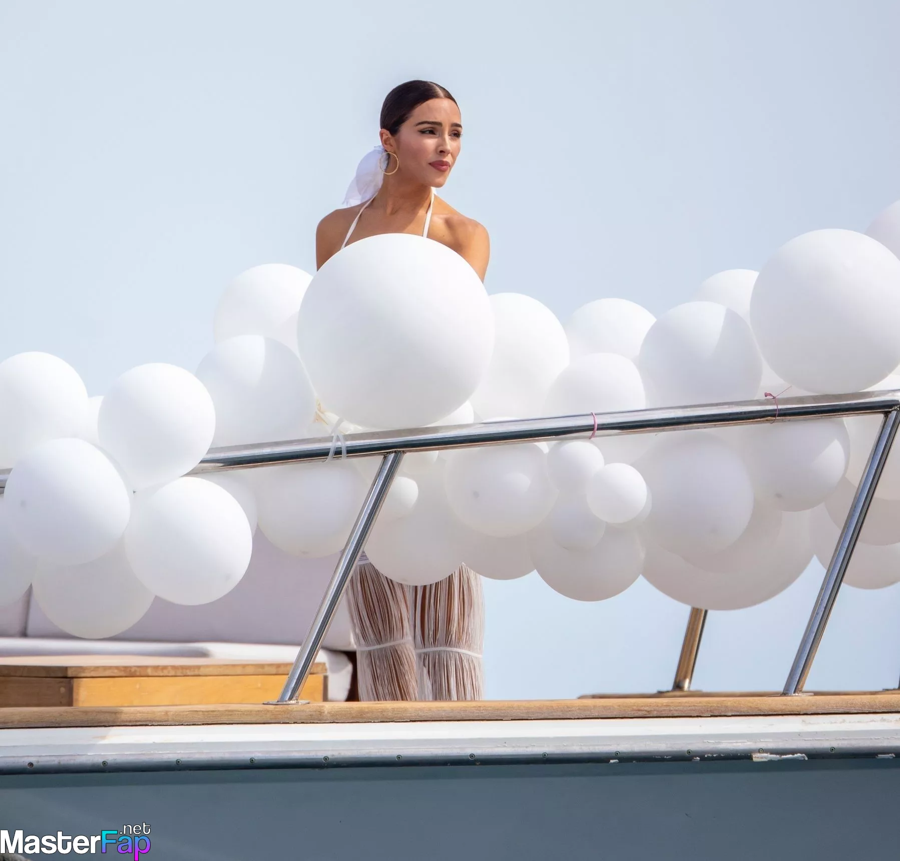 On November 4, 2023, Olivia Culpo is seen having a great time at her bachelorette party on a boat with her friends while looking very stunning in a white bikini.