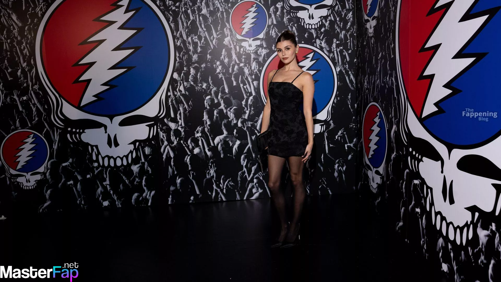 Olivia Jade Giannulli shows off her sexy legs in a black mini dress and sheer tights at the Alice + Olivia x Grateful Dead launch party in NYC.Guests packed into New York for the bash celebrating their fresh Grateful Dead collab, soaking up a fun night of fashion, tunes, and art.