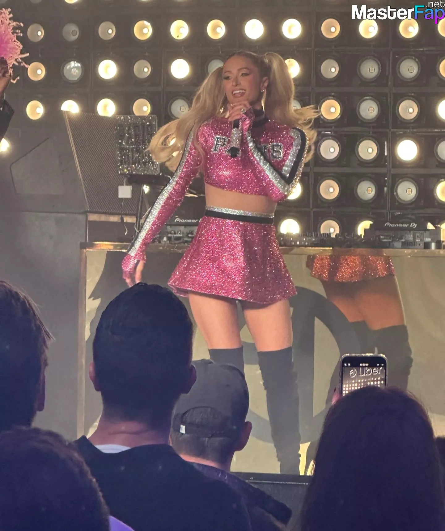 On February 10, 2023, Paris Hilton captivates the crowd as a DJ at the Uber One event in Phoenix, drawing attention to herself with her seductive tiny skirt and boots. The fashionable shoes and outfit that she is wearing draw attention to her toned legs.